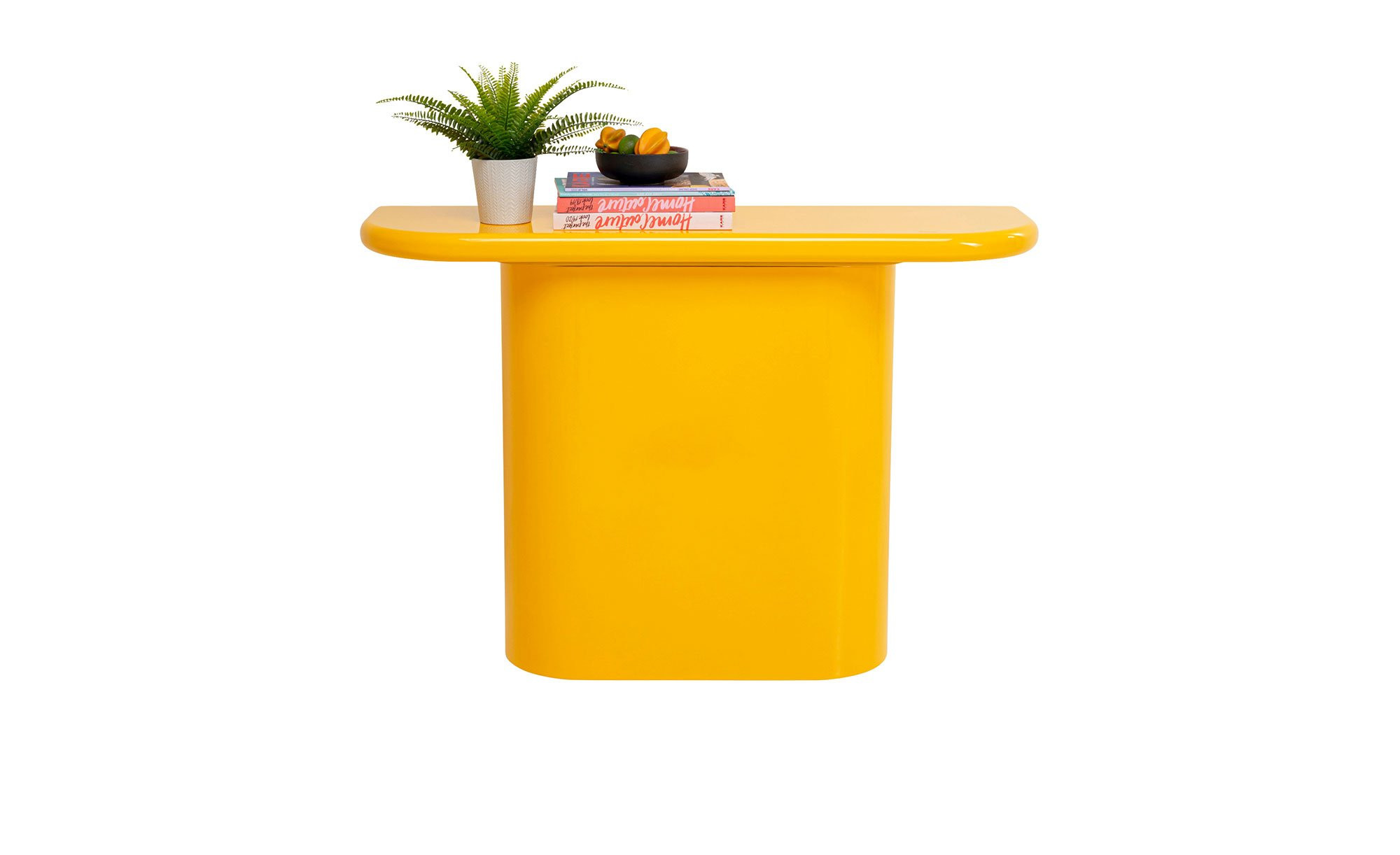 Mit der vielseitig einsetzbaren Konsole Eliano Gelb erschaffen Sie auf platzsparende Weise eine praktische zusätzliche Ablagefläche.