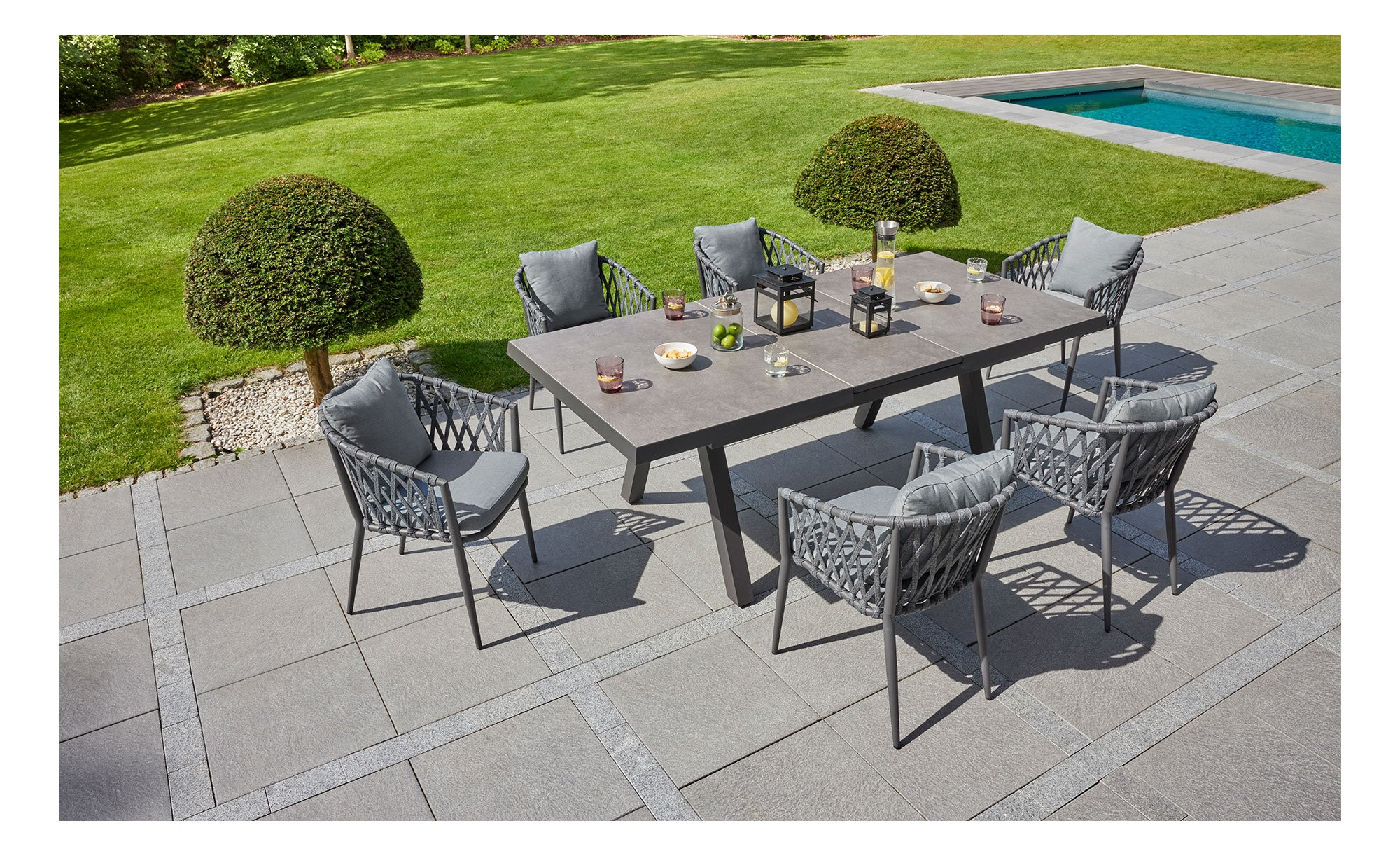 - Aluminiumgestell des Gartenstuhls ist stabil, rostbeständig und leicht