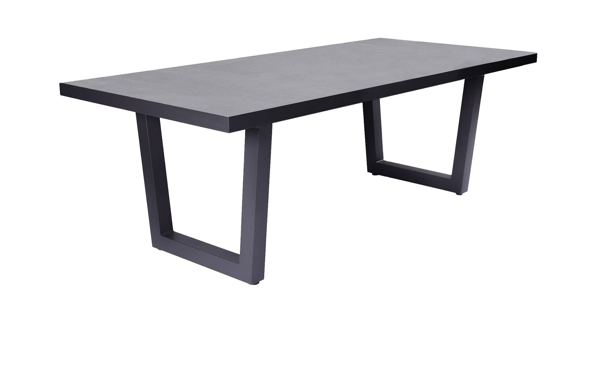 Das ca. 200 x 76 x 100 cm große Möbelstück eignet sich für den Garten, die Terrasse oder einen geräumigen Balkon. Es verfügt über ein stabiles Aluminium-Gestell mit Kufen, das in einem edlen Anthrazit gehalten ist. Darauf befindet sich die Sinterstein-Tischplatte in Beton-Grau.