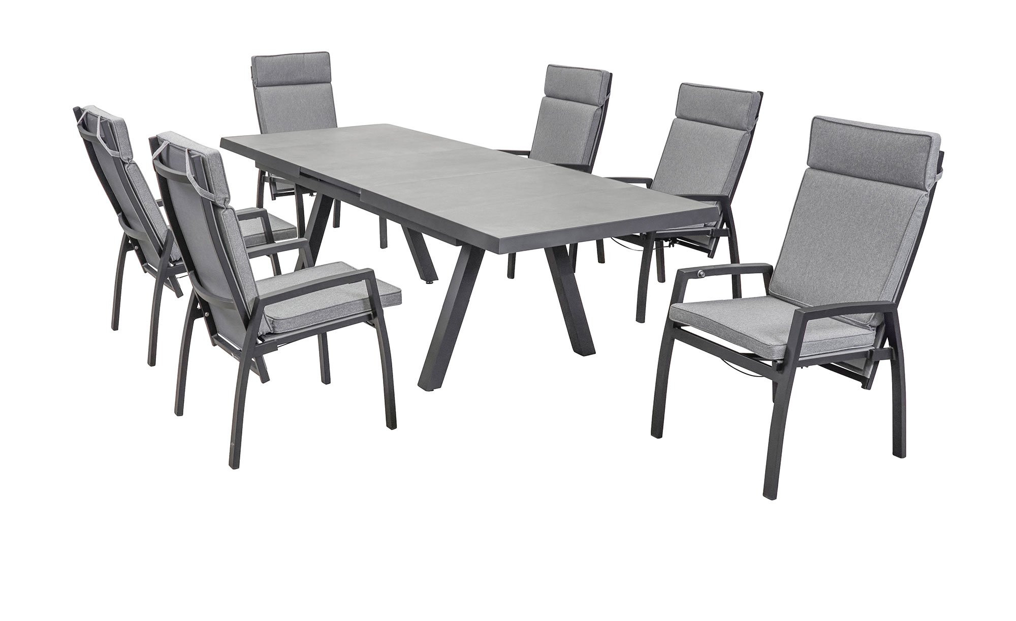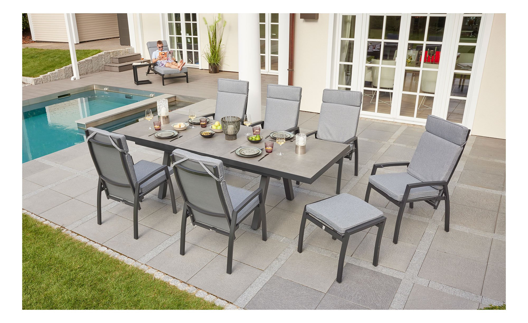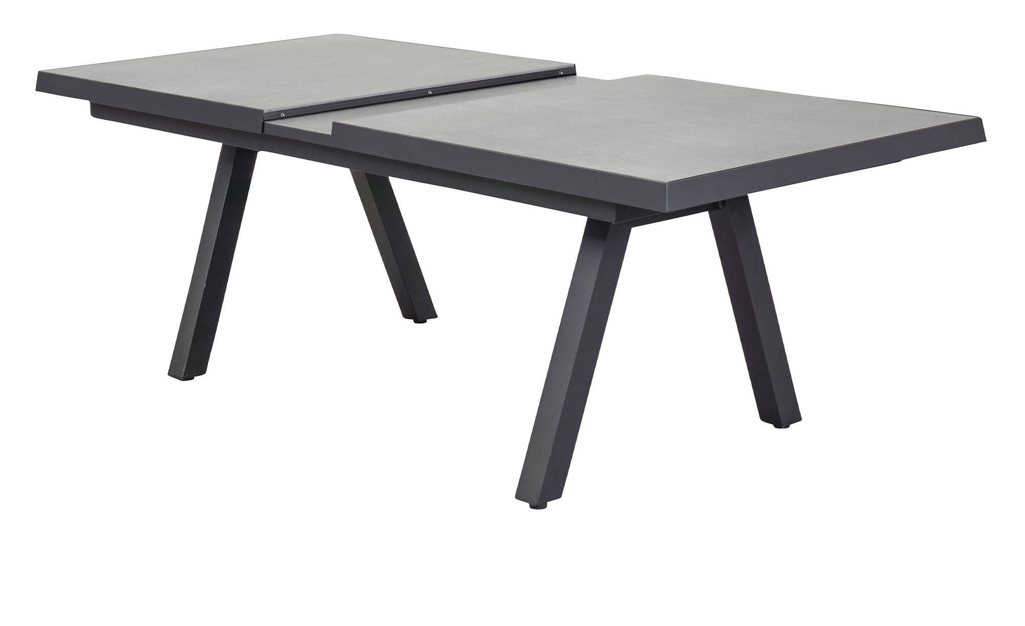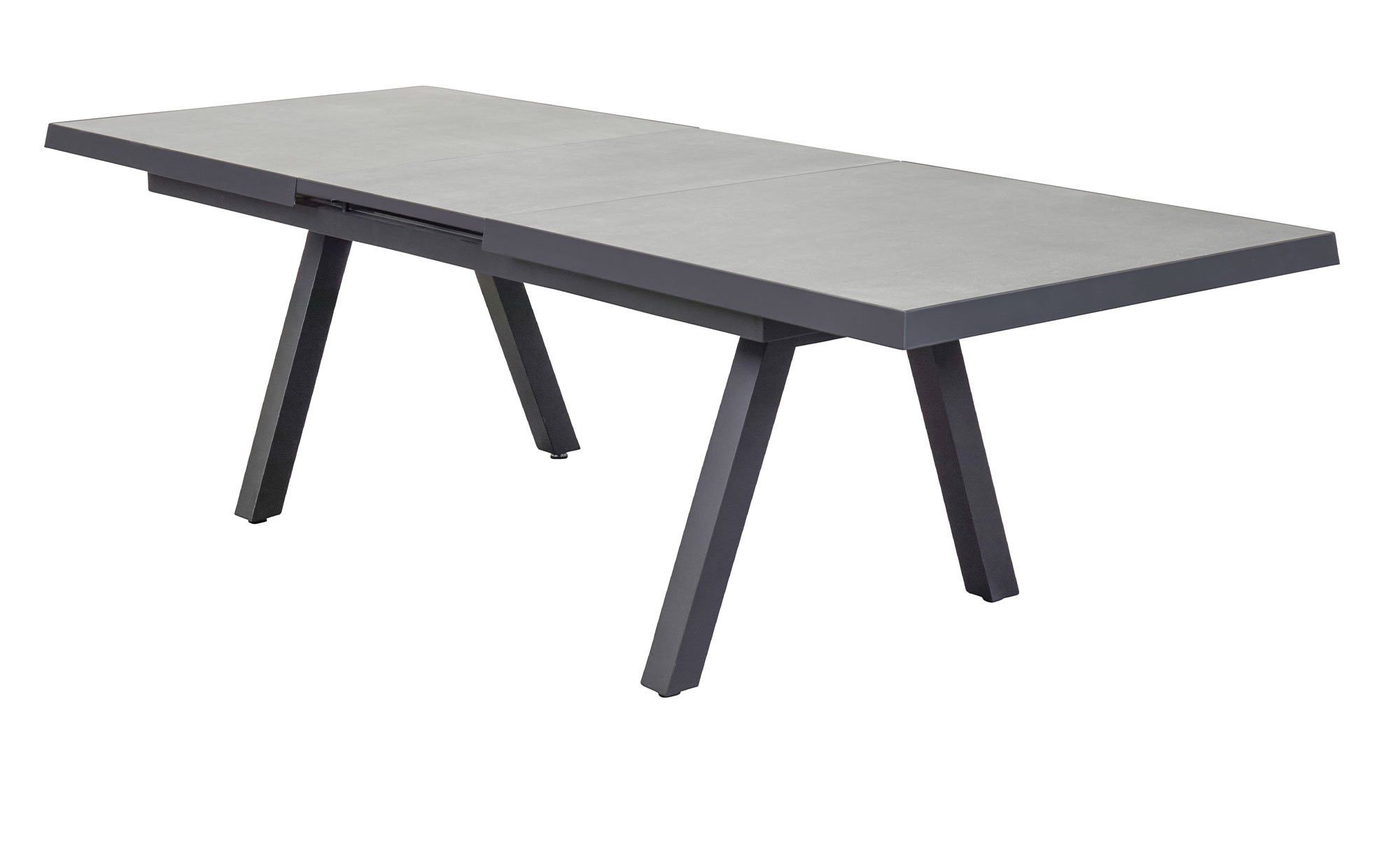 Das stabile A-Gestell des LC Garden Gartentischs Sondrino ist in einem stilvollen Anthrazit gehalten. Es besteht aus zugleich leichtem und widerstandsfähigem Aluminium und passt perfekt zur Platte.