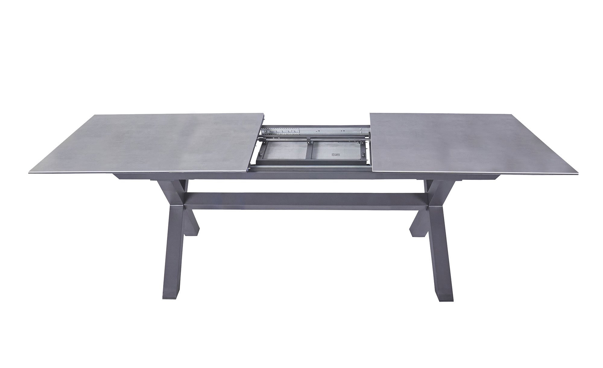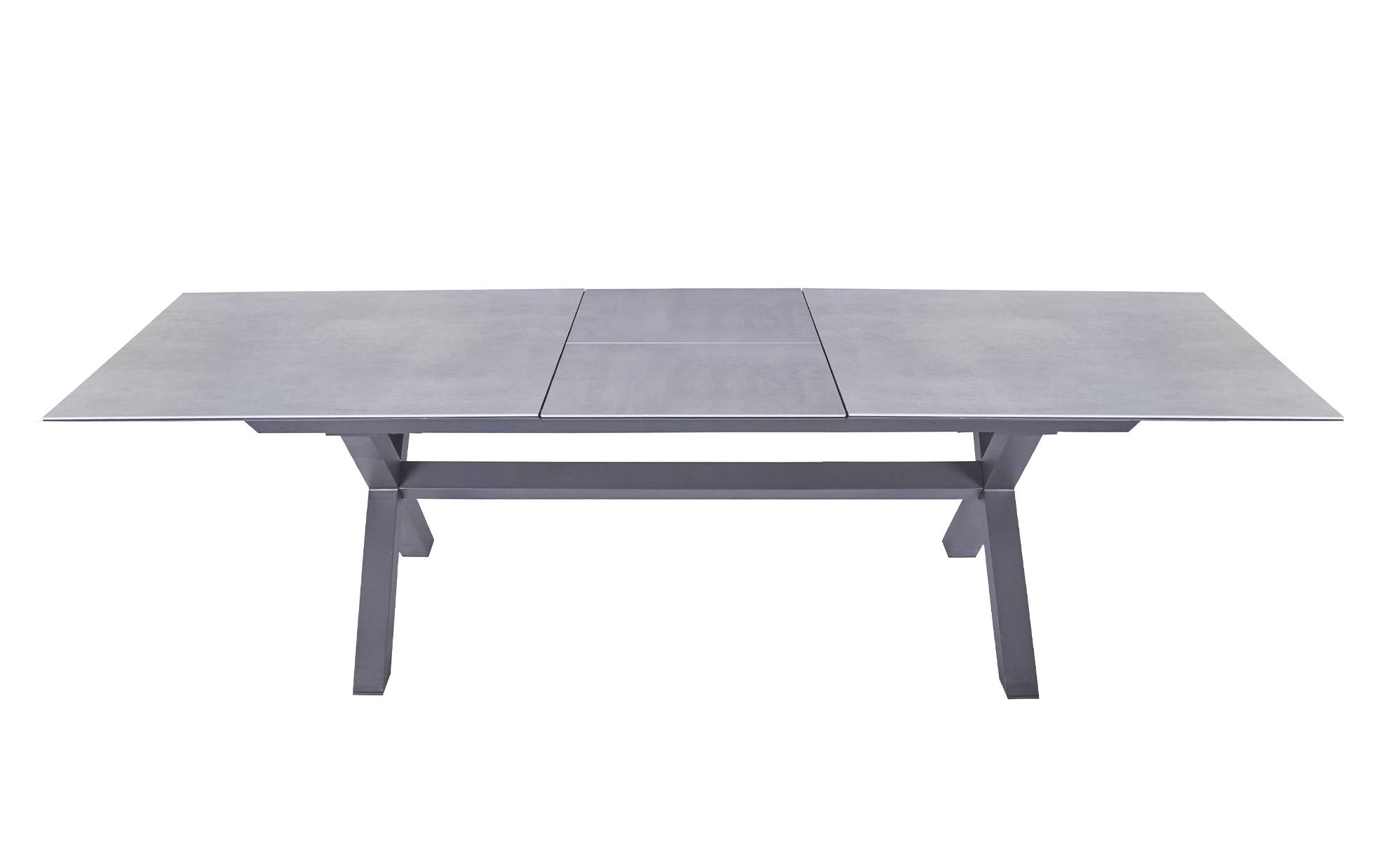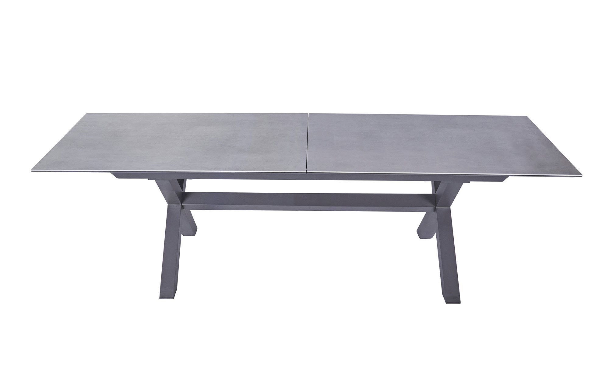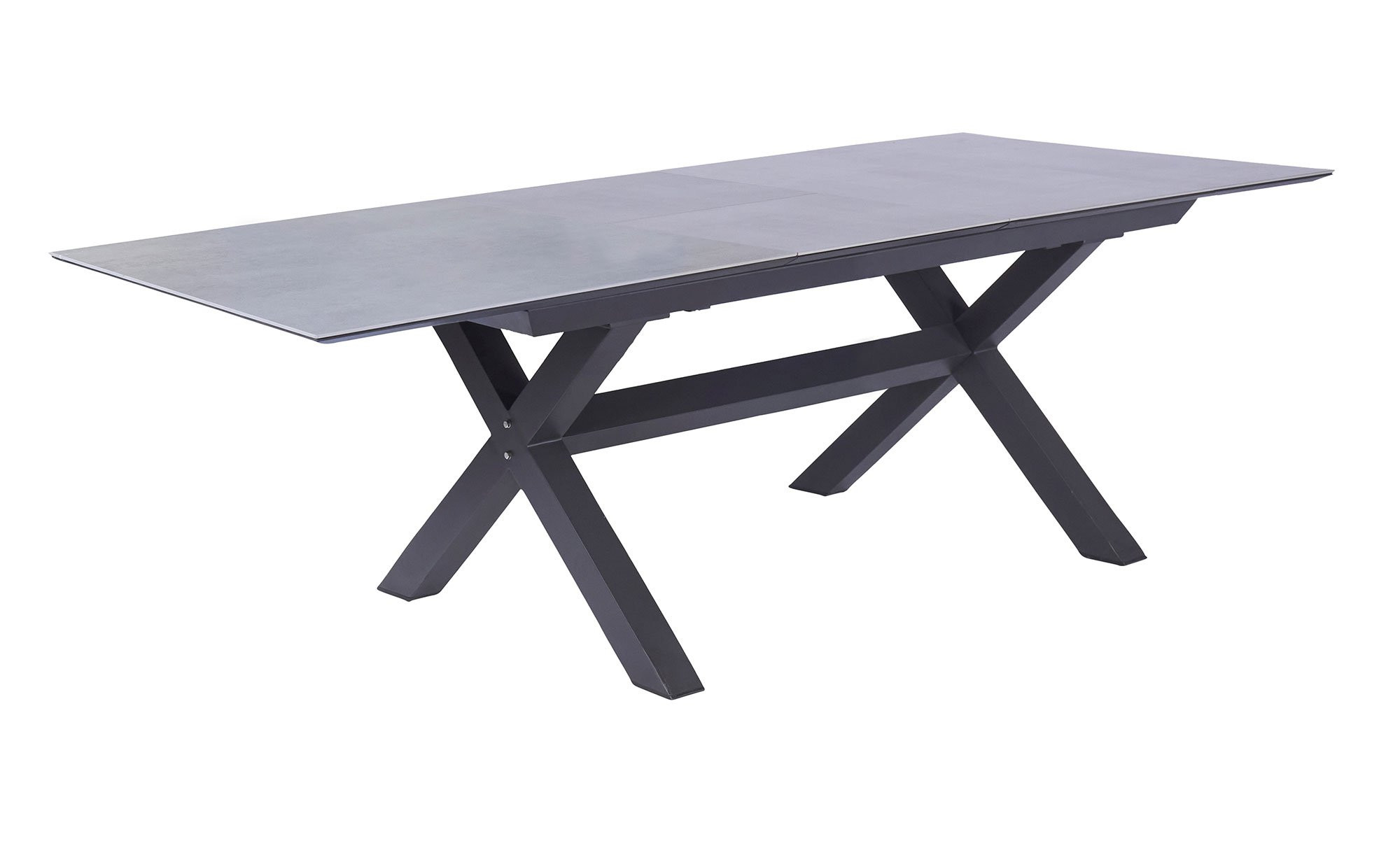 In Form der Tischplatte in Beton-Optik erwartet Sie ein weiterer Blickfang. Sie besteht aus kratzfester Glas-Keramik und lässt sich dank eines Butterfly-Auszugs individuell anpassen. Die Ausziehfunktion ermöglicht es Ihnen, den ca. 200 x 76 x 100 cm großen LC Garden Gartentisch Vancouver auf ca. 260 cm zu verlängern.
