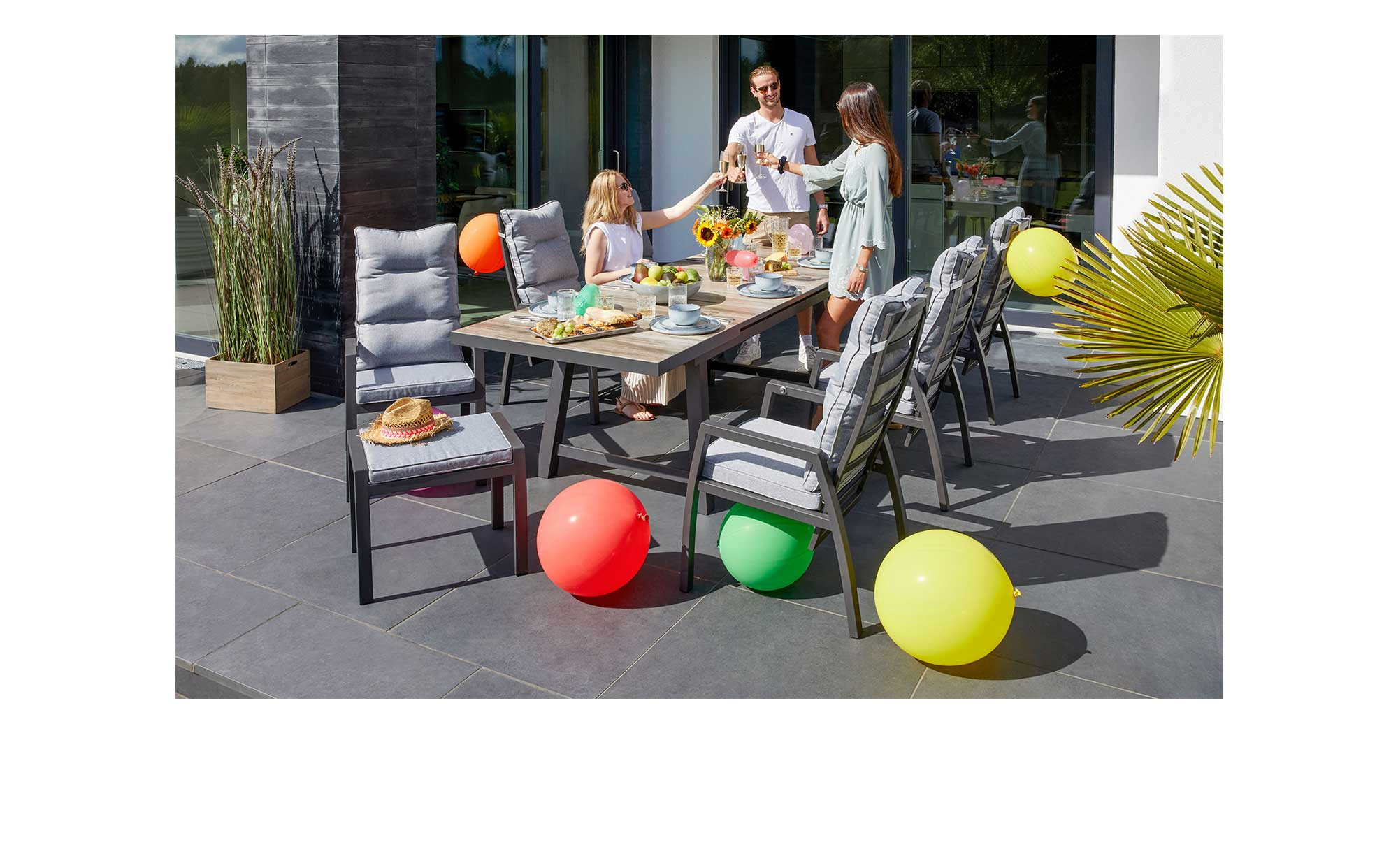 Das stabile Aluminiumgestell in Anthrazit ist bei Kauf bereits montiert, Sie können es sich also ohne Umschweife im Garten, auf dem Balkon oder der Terrasse gemütlich machen. Mit einer Größe von 60 x 47 x 45 cm präsentiert sich der Gartenhocker gleichermaßen handlich und platzsparend. Dank seiner Wetter- und UV-Beständigkeit sind weder sonnige noch verregnete Sommer ein Problem für ihn.