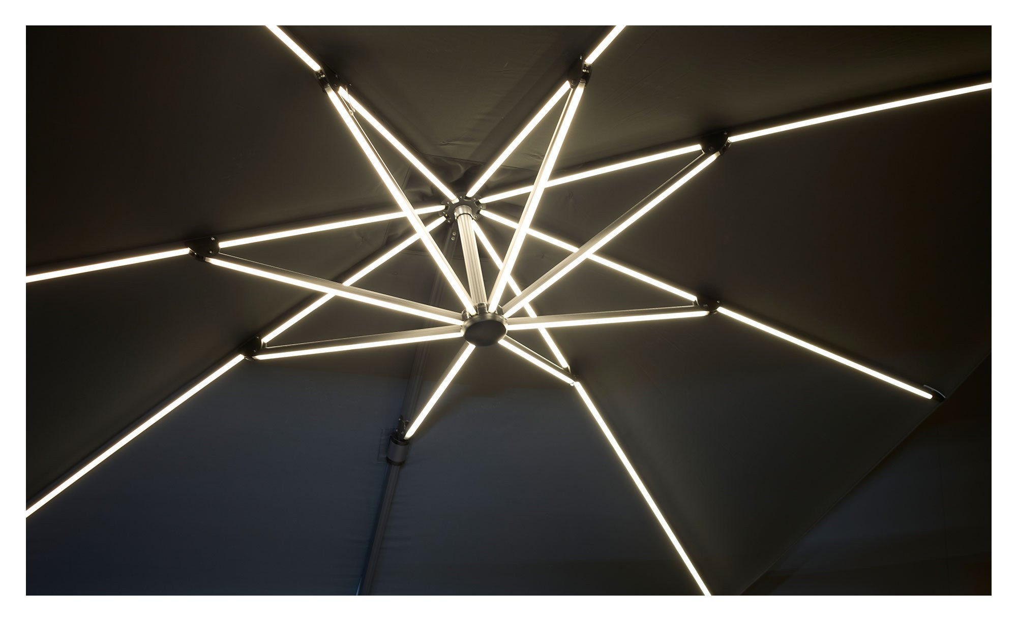 Stilvoll und wetterbeständig: Der Sonnenschirm inkl. LED Solar von LC Garden