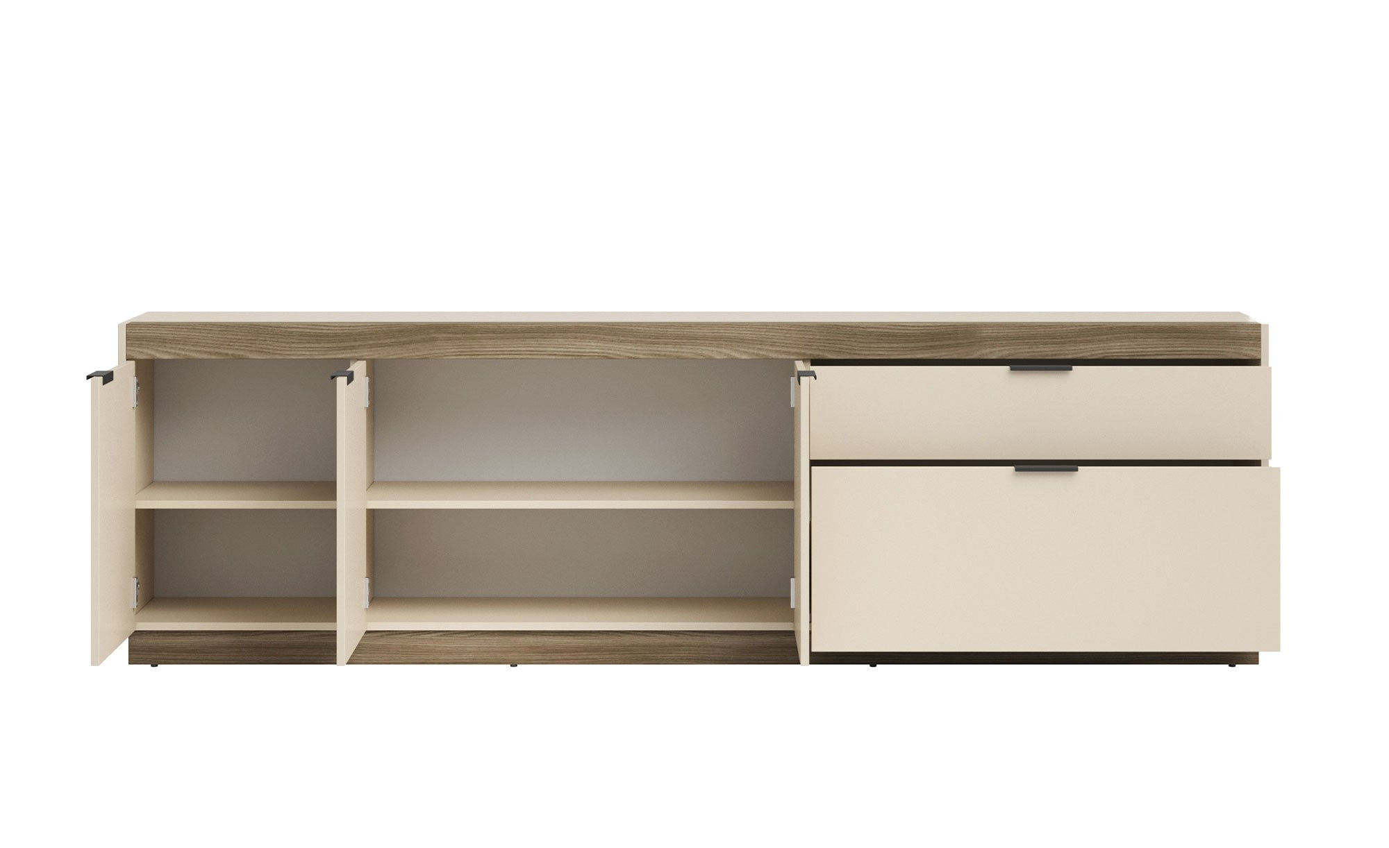 Das Lowboard self Jana ist mit drei gedämpften Türen und zwei Schubkästen inkl. Soft-Close ausgestattet. Außerdem wurden im Innern drei Böden integriert.