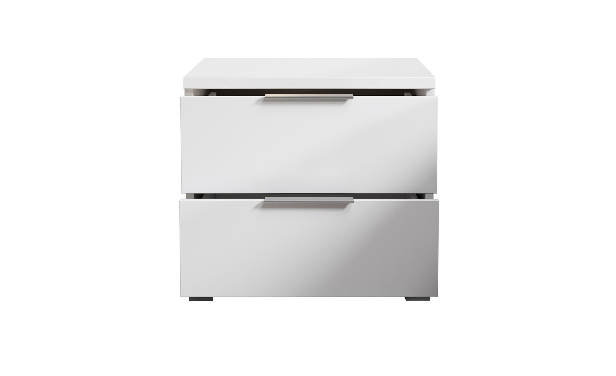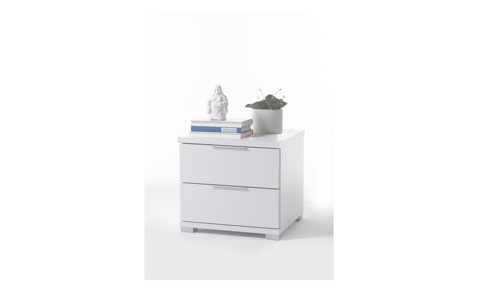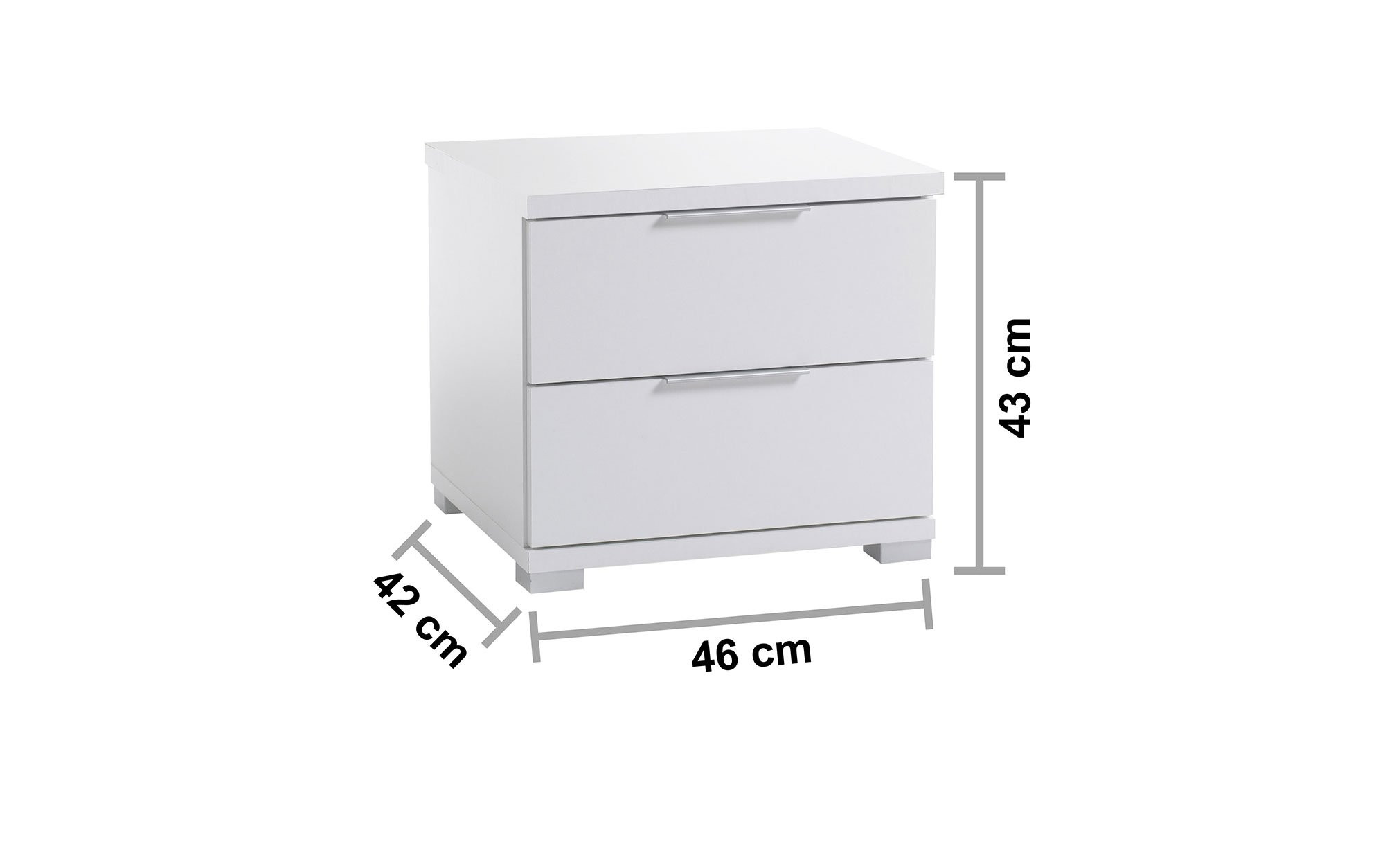 Das Möbelstück misst ca. 46 x 43 x 42 cm und überzeugt durch ein schlichtes Design. Front und Korpus bestehen aus Holzwerkstoff und sind in Weiß gehalten – genau wie das Innendekor. Vor Verschleiß und Abnutzung schützt eine Oberflächenbeschichtung aus Melaminharz.