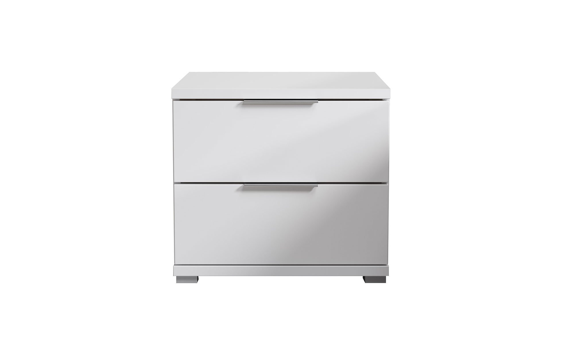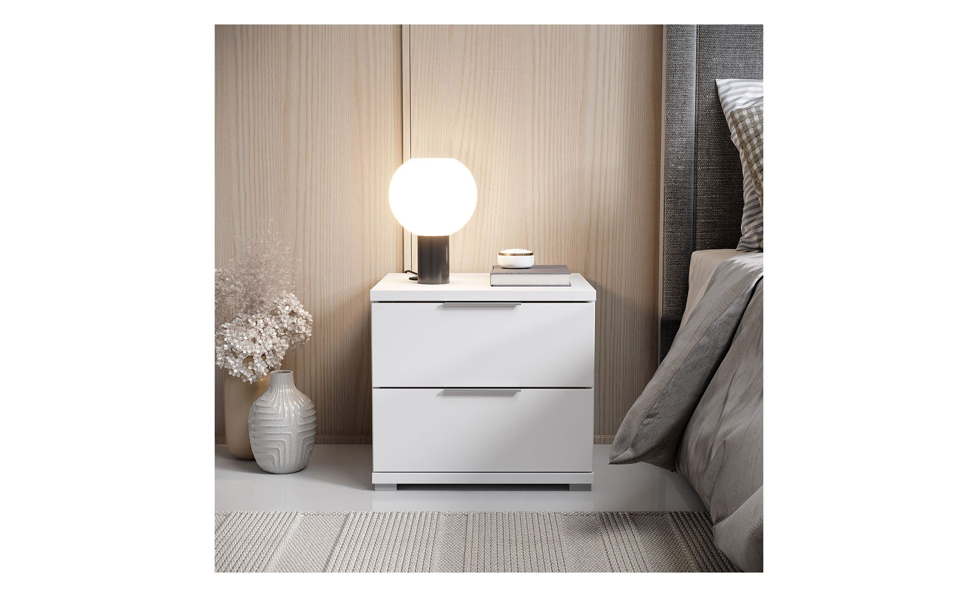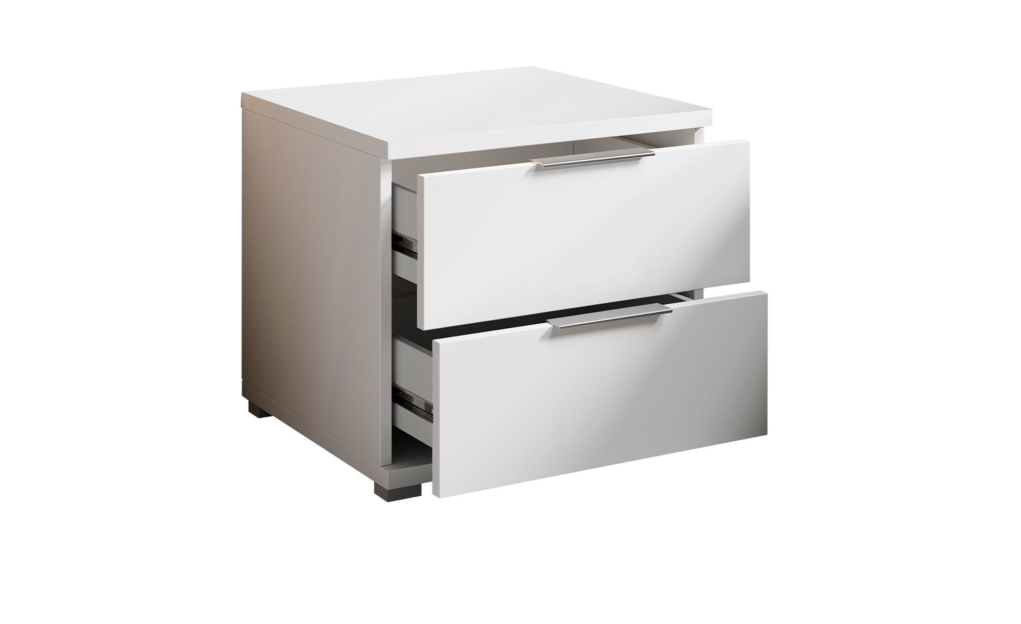 Das Möbelstück misst ca. 46 x 43 x 42 cm und überzeugt durch ein schlichtes Design. Front und Korpus bestehen aus Holzwerkstoff und sind in Weiß gehalten – genau wie das Innendekor. Vor Verschleiß und Abnutzung schützt eine Oberflächenbeschichtung aus Melaminharz.