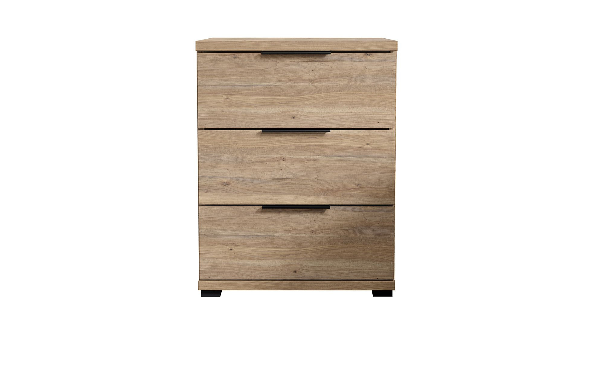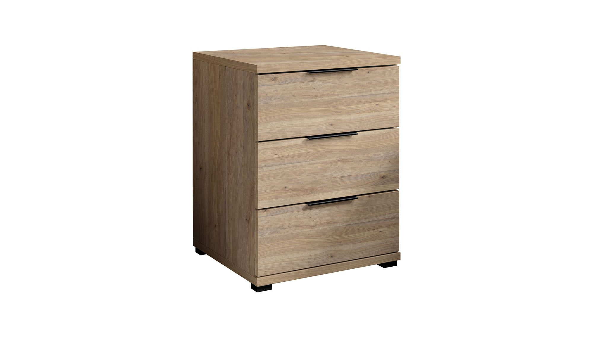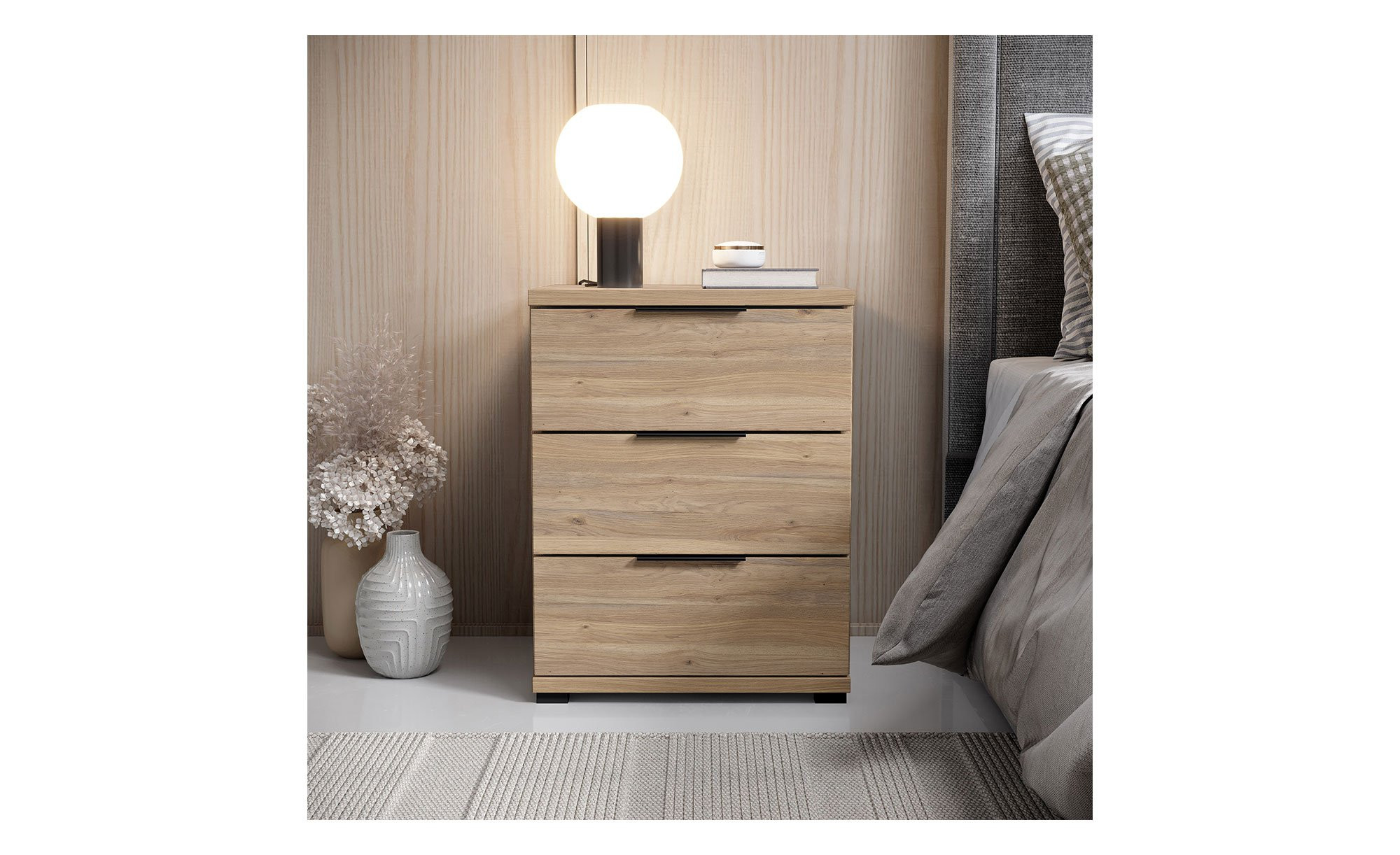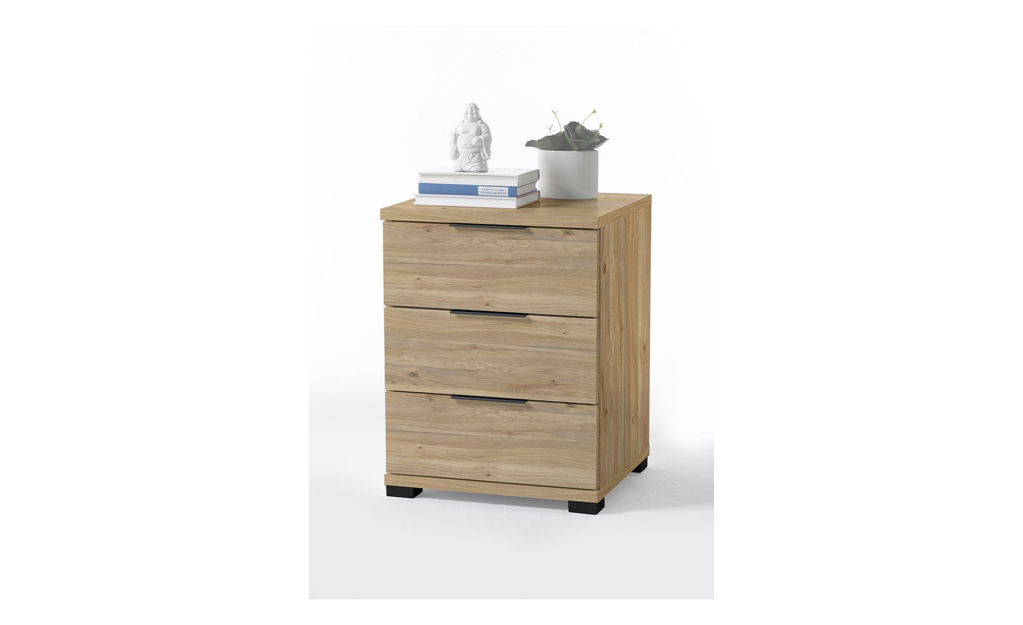 Mit seinen Maßen von ca. 46 x 53 x 40 cm bietet das Möbelstück ausreichend Platz – nicht nur oben, sondern auch in seinen drei geräumigen Schubkästen. Diese lassen sich bequem über schwarze Kunststoffgriffe öffnen.