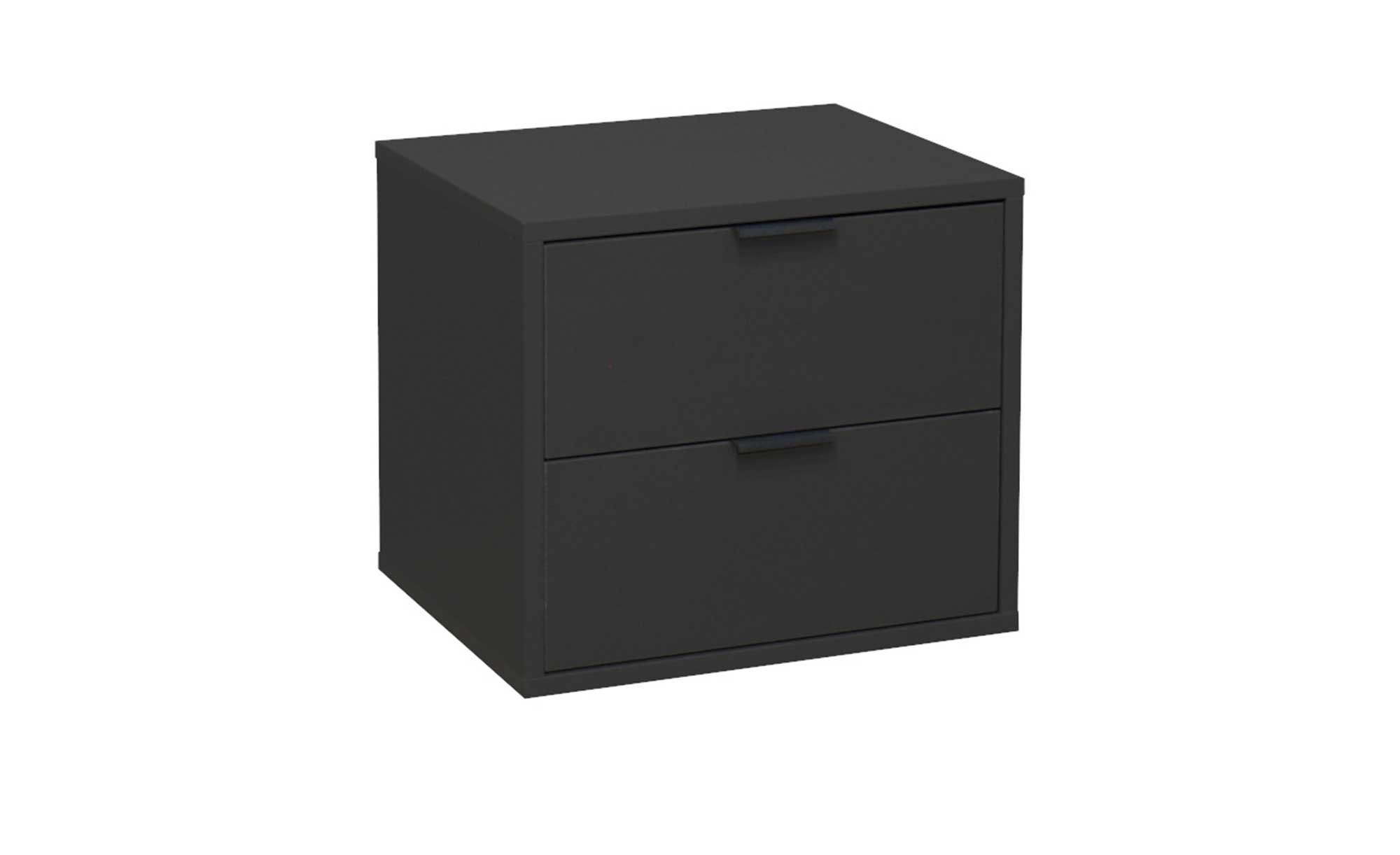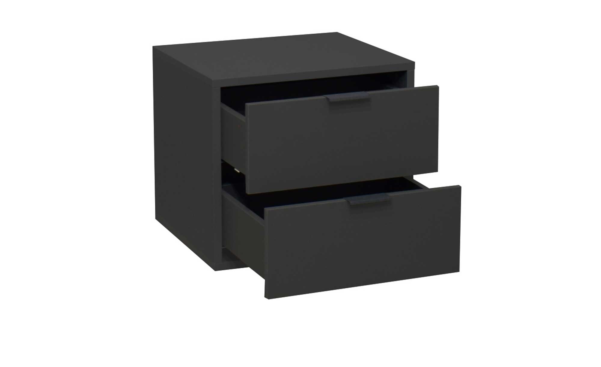 Das schlichte Anthrazit von Korpus und Front verleiht dem ca. 51 x 47 x 45 cm großen Nachttisch ein ausgesprochen wertiges Flair. Die Oberflächen wurden in einer matten Lack-Optik gestaltet und zum Schutz vor Kratzern mit Melaminharz beschichtet.