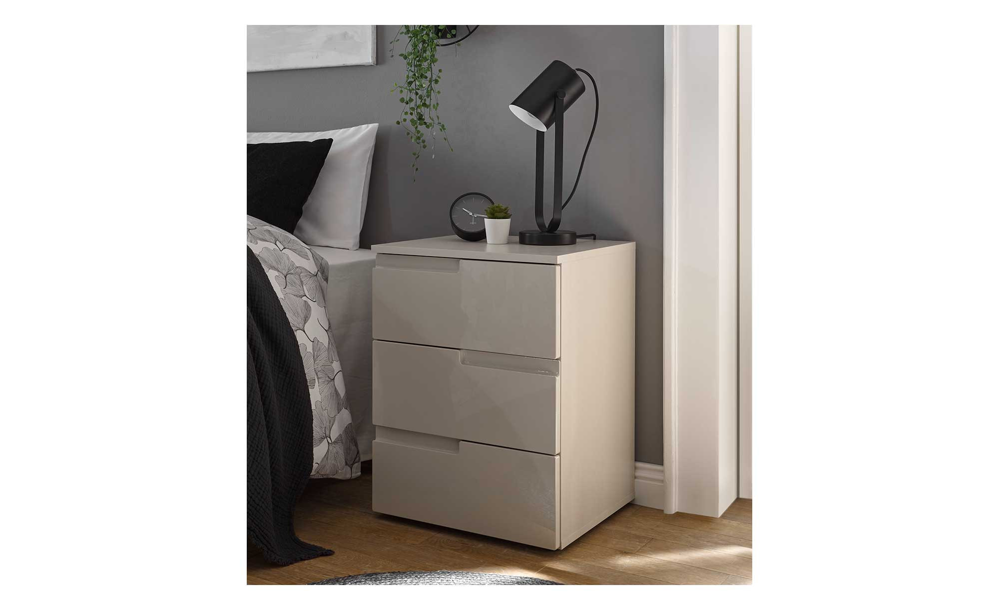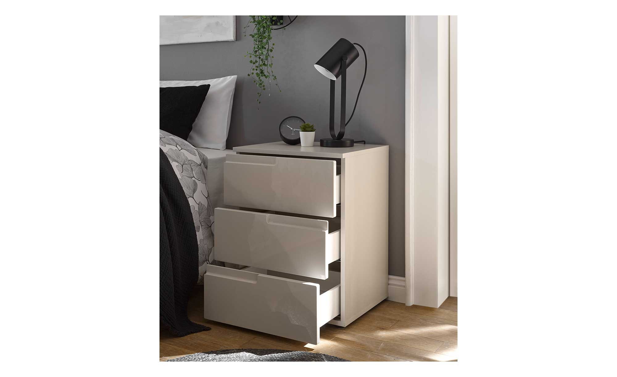 Drei Schubkästen überzeugen nicht nur durch viel Platz für kleine und größere Gegenstände, ihr modernes, griffloses Design zieht außerdem die Blicke auf sich. Freuen Sie sich mit dem Nachttisch self Jenna auf einen funktionalen Eyecatcher!