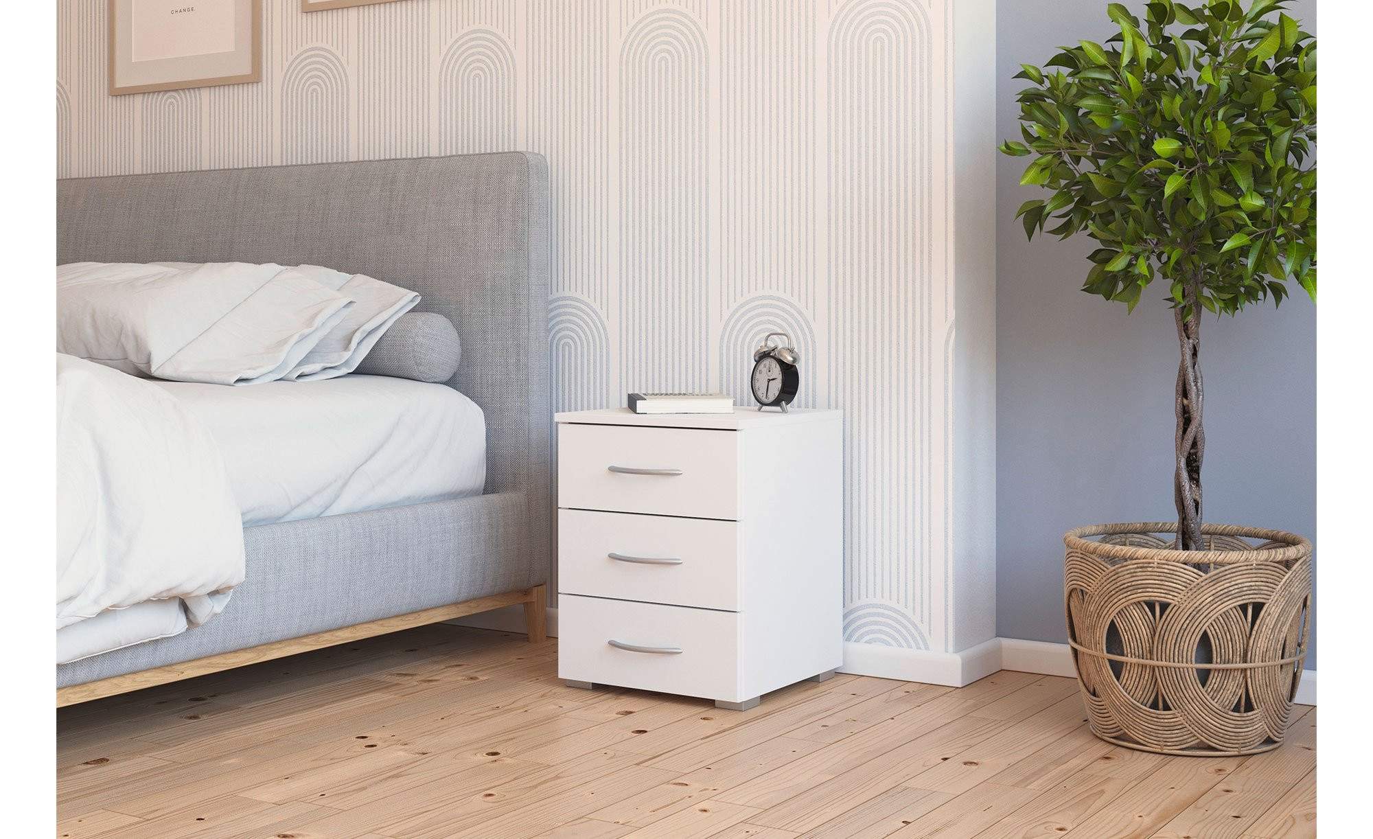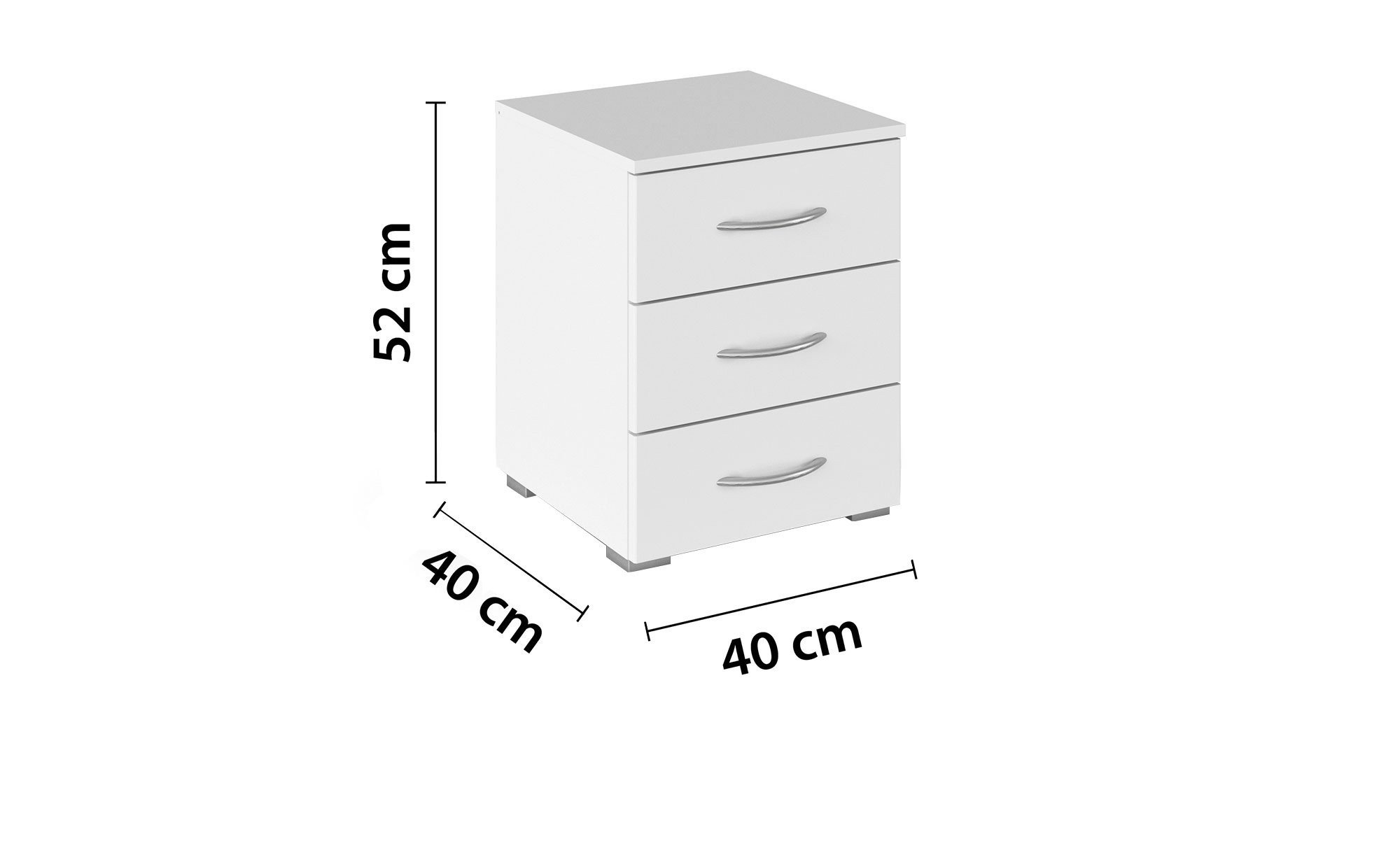 Der ca. 40 x 52 x 40 cm große Nachttisch Taurus ist mit drei Schubkästen ausgestattet, in denen sich verschieden große Gegenstände unterbringen lassen.