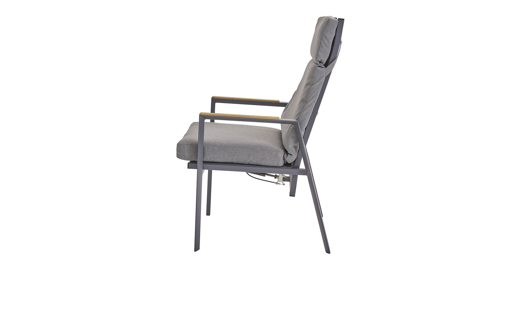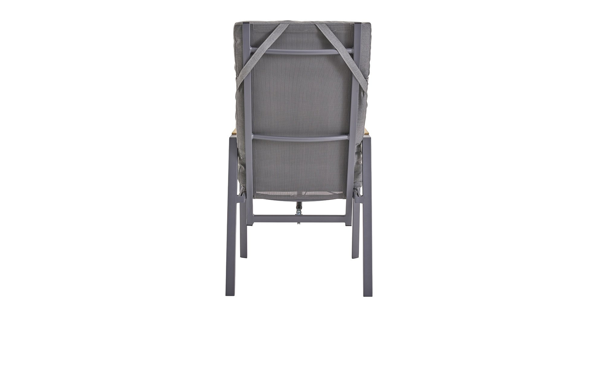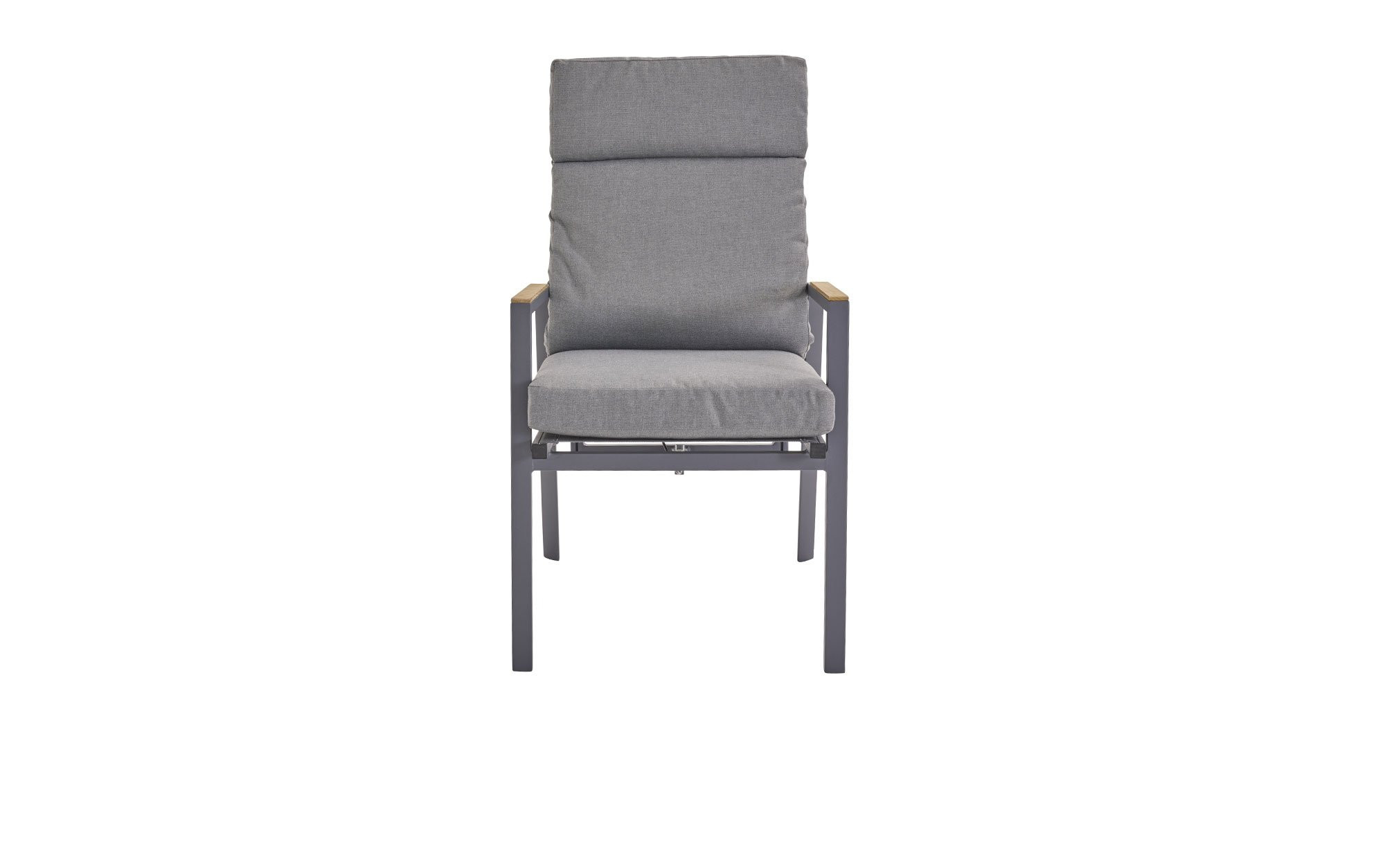Die ca. 56 x 106 x 69 cm umfassenden Stühle hingegen sind mit max. 120 kg belastbar. Sie begeistern mit Armlehnenauflagen aus holzfarbenem Teak-Holz und werden inklusive Auflagen geliefert. Diese sind mit einem grauen Textilene-Bezug aus Polyester versehen und ca. 6 cm stark. Die Sitzhöhe ohne Kissen beträgt also ca. 41 cm.