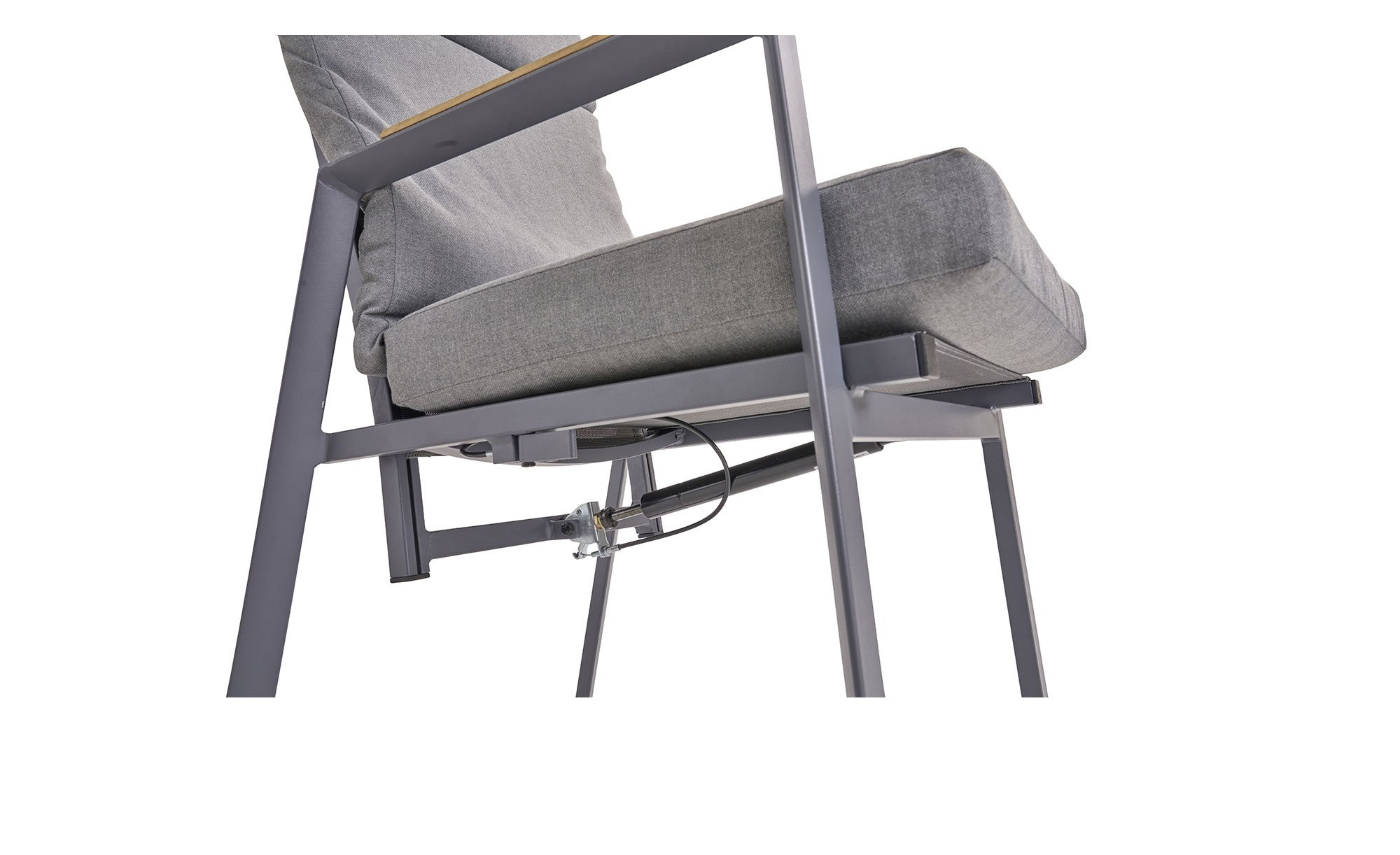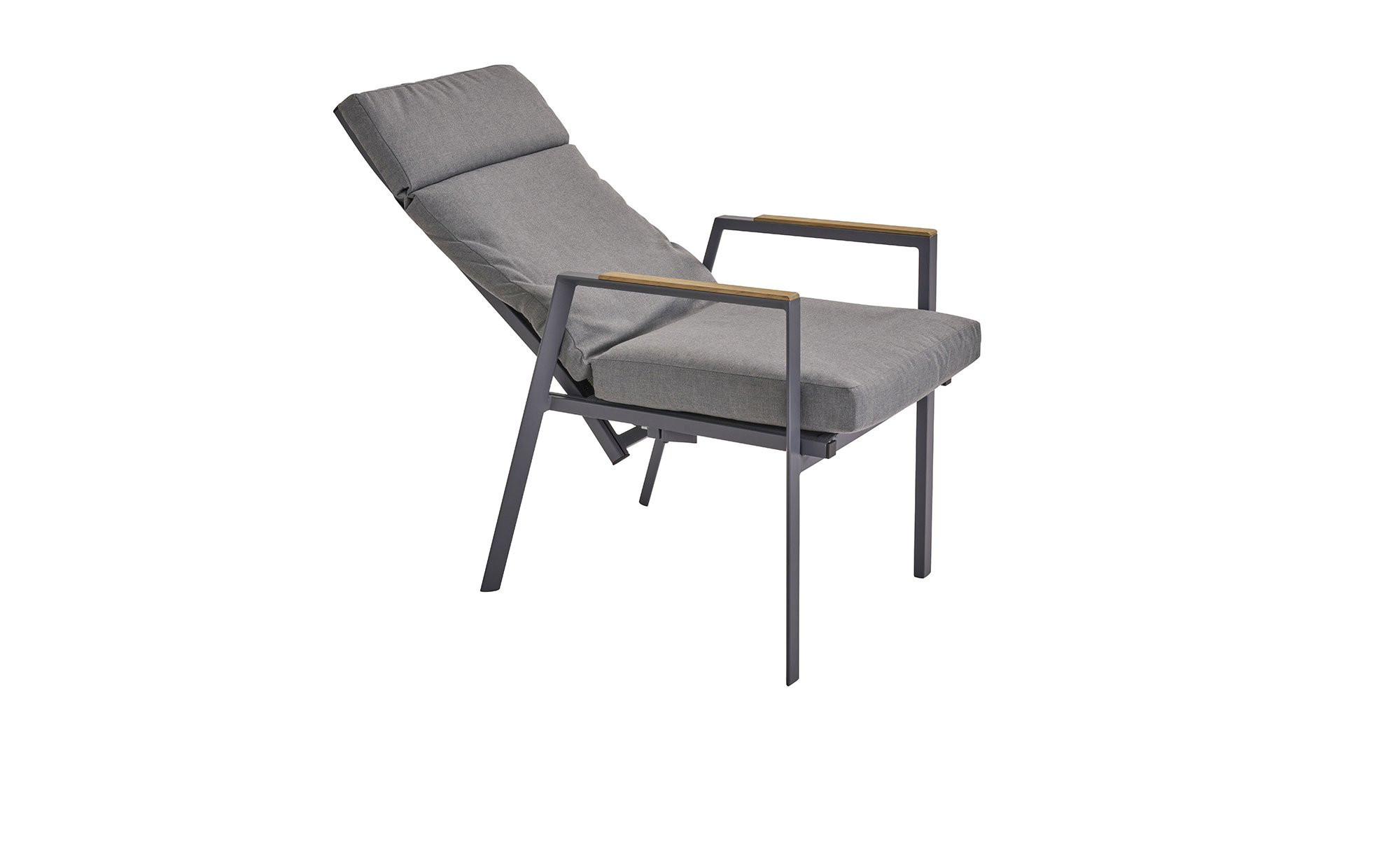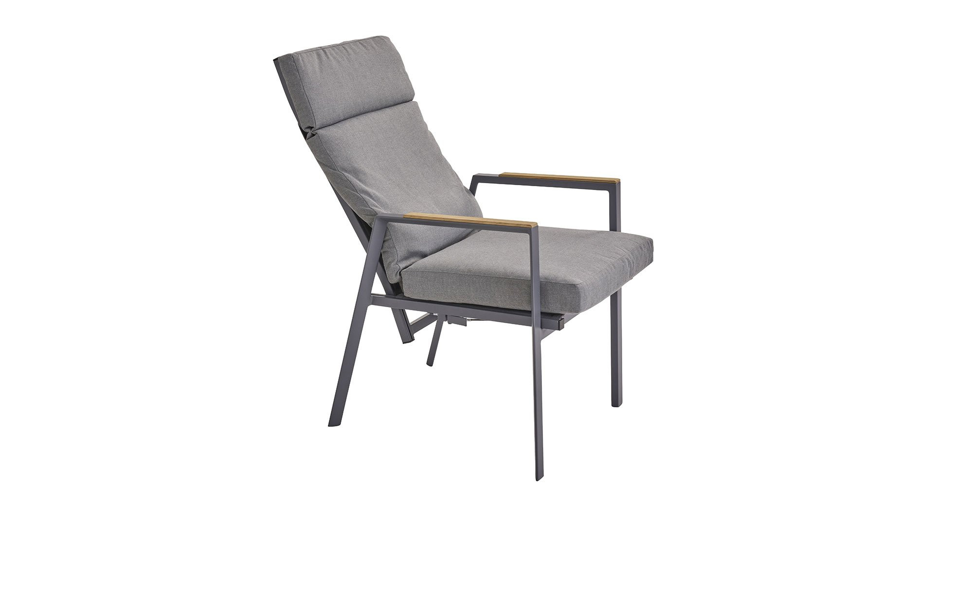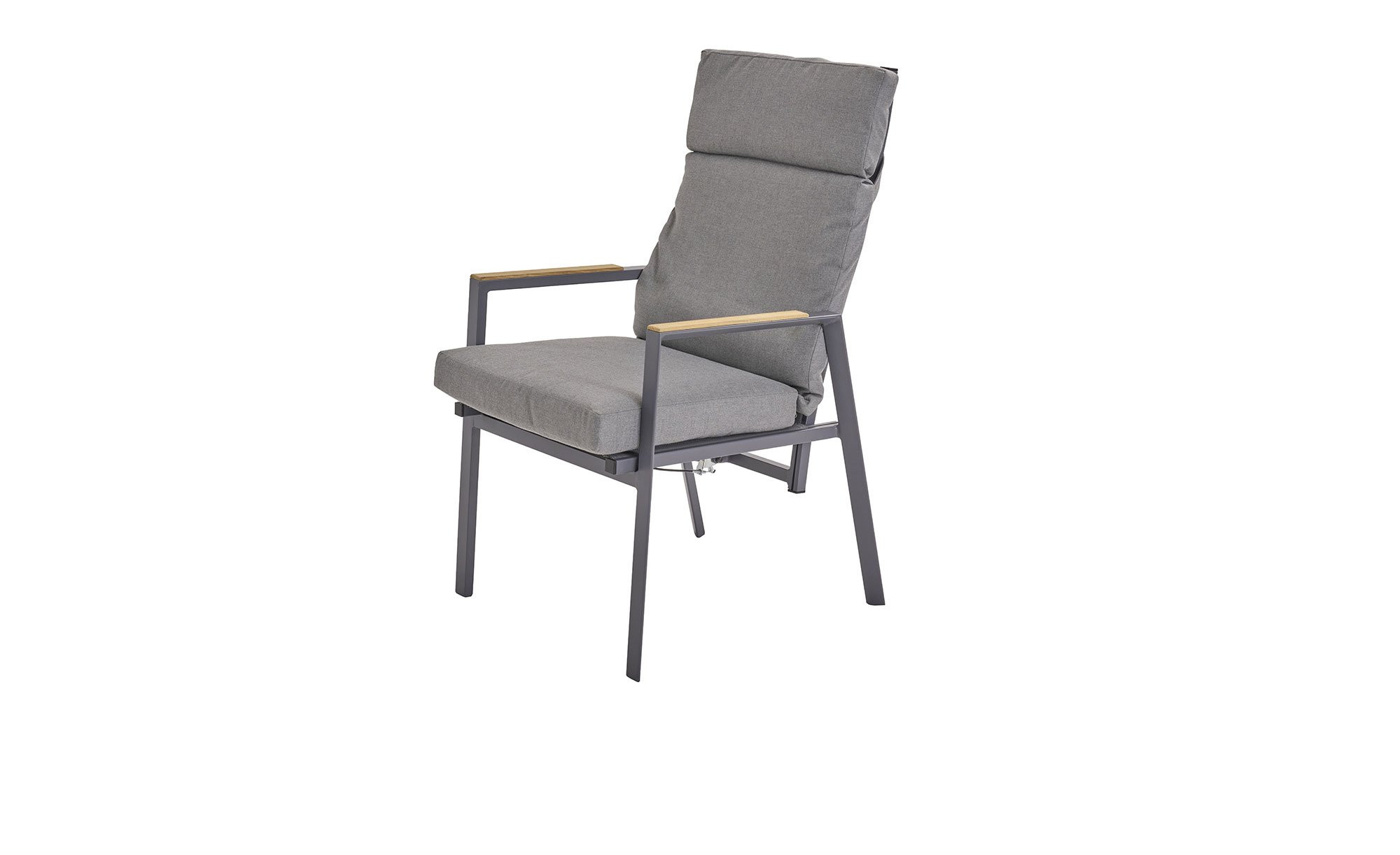 Die ca. 56 x 106 x 69 cm umfassenden Stühle hingegen sind mit max. 120 kg belastbar. Sie begeistern mit Armlehnenauflagen aus holzfarbenem Teak-Holz und werden inklusive Auflagen geliefert. Diese sind mit einem grauen Textilene-Bezug aus Polyester versehen und ca. 6 cm stark. Die Sitzhöhe ohne Kissen beträgt also ca. 41 cm.
