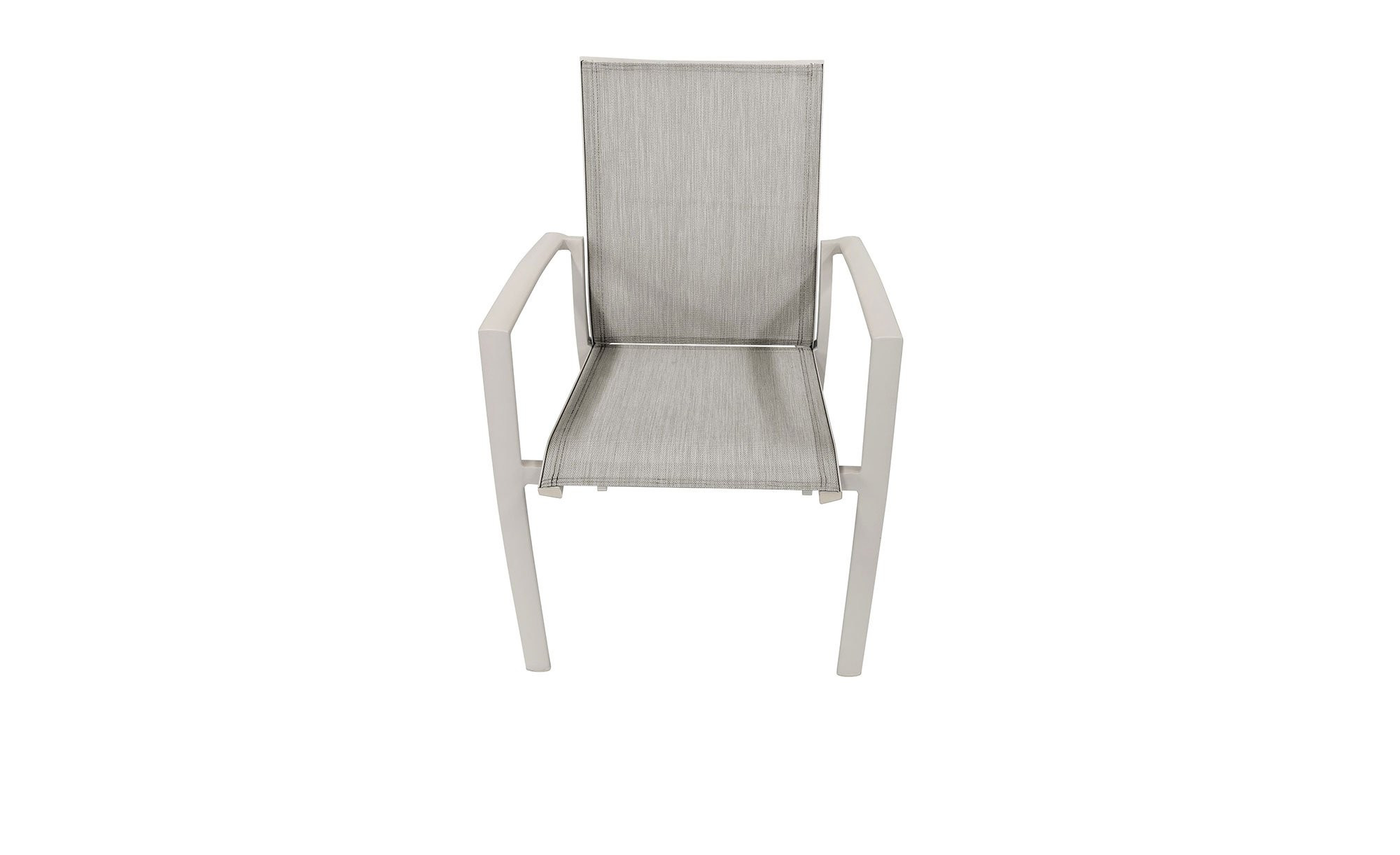 Die stabile Basis des ca. 55 x 88 x 63 cm großen outdoor Gartenstuhls Savona bildet ein vierfüßiges Gestell aus Aluminium mit 3D-Rohr. Es ist pulverbeschichtet und in einem hellen Taupe-Ton gehalten. Sitzfläche und Rückenlehne sind mit einem 1x1 verstärkten Sling- bzw. Gurtmaterial im selben Ton ausgestattet, das angenehmen Halt und ein komfortables Sitzgefühl bietet.