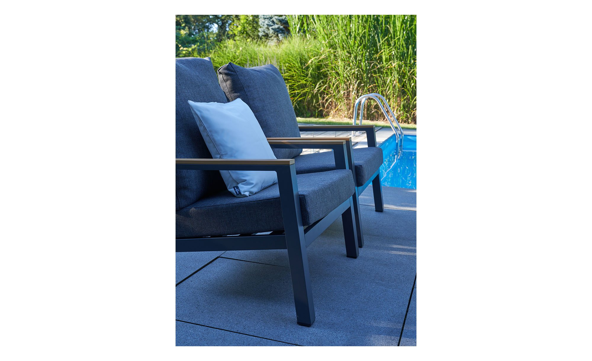 - Tischplatte und Armlehnen aus wetterfestem Polywood