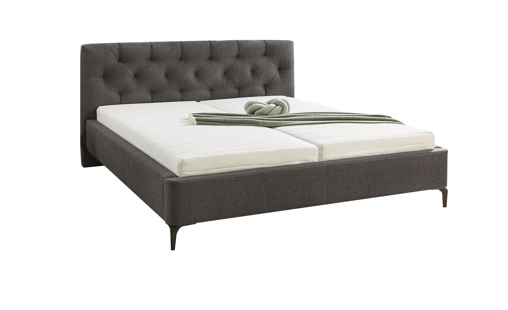 Das Polsterbett Lucy fügt sich stilvoll in Ihr Schlafzimmer ein und präsentiert sich als anpassbare Komfortlösung.