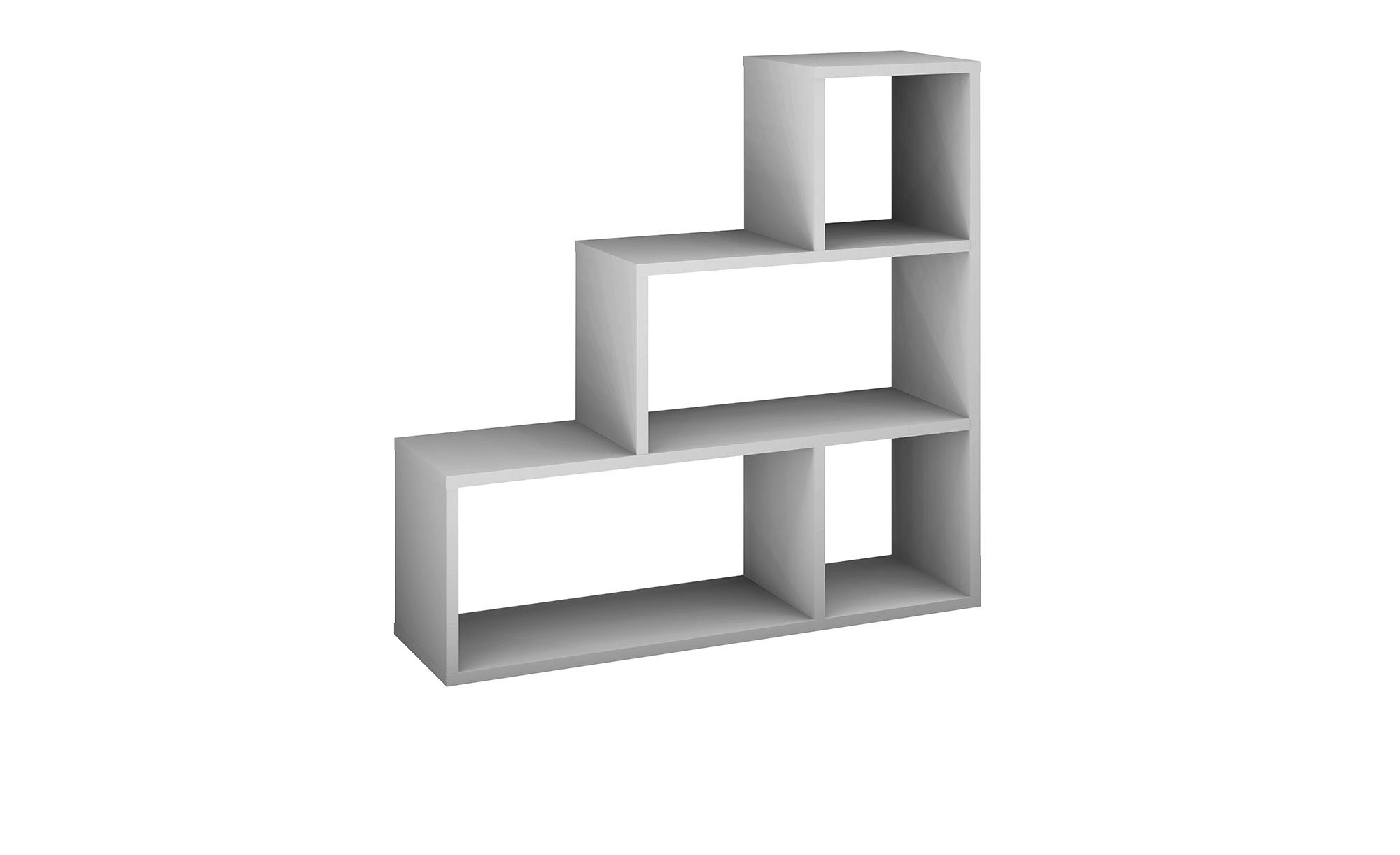Ob als eleganter Trenner zwischen Wohnbereichen oder geschickt unter einer Treppe platziert, der Raumteiler Steps überzeugt durch modernes Design und praktische Eigenschaften. Das ca. 120 x 122 x 40 cm große Möbelstück aus Holzwerkstoff ist in mattem Kreidegrau lackiert und durch eine Melaminharzbeschichtung besonders widerstandsfähig. Eine hochwertige Dickkante sorgt zusätzlich für ein ansprechendes Finish.