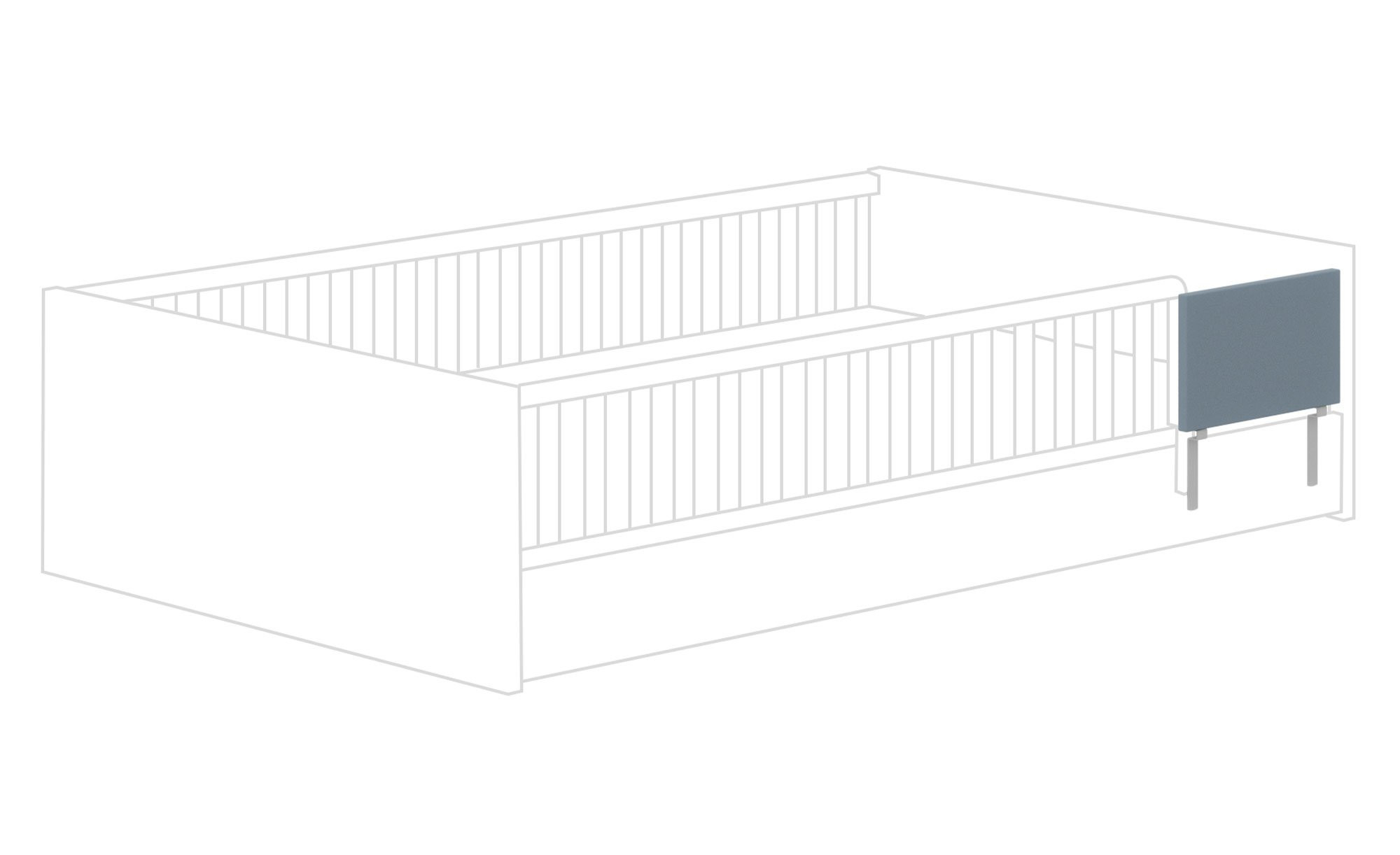 Der Schutz misst ca. 41 x 25 x 2 cm und besteht aus Holzwerkstoff in einem schönen Mattblau. Somit passt er perfekt zum Bett und komplettiert dieses.