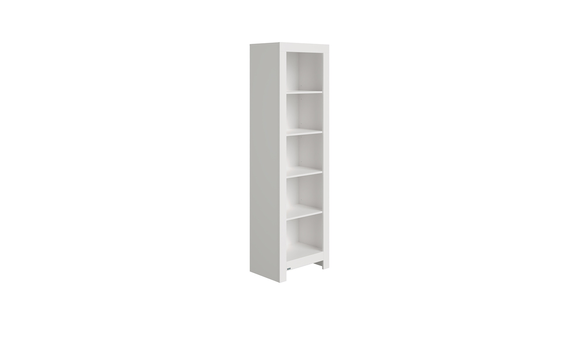 Das ca. 63 x 205 x 39 cm große Regal passt mit seinem Dekor Kreideweiß perfekt in beinahe jeden Raum. Es verfügt über vier Böden und somit fünf offene Fächer. Eine passende Tür ist optional bestellbar.