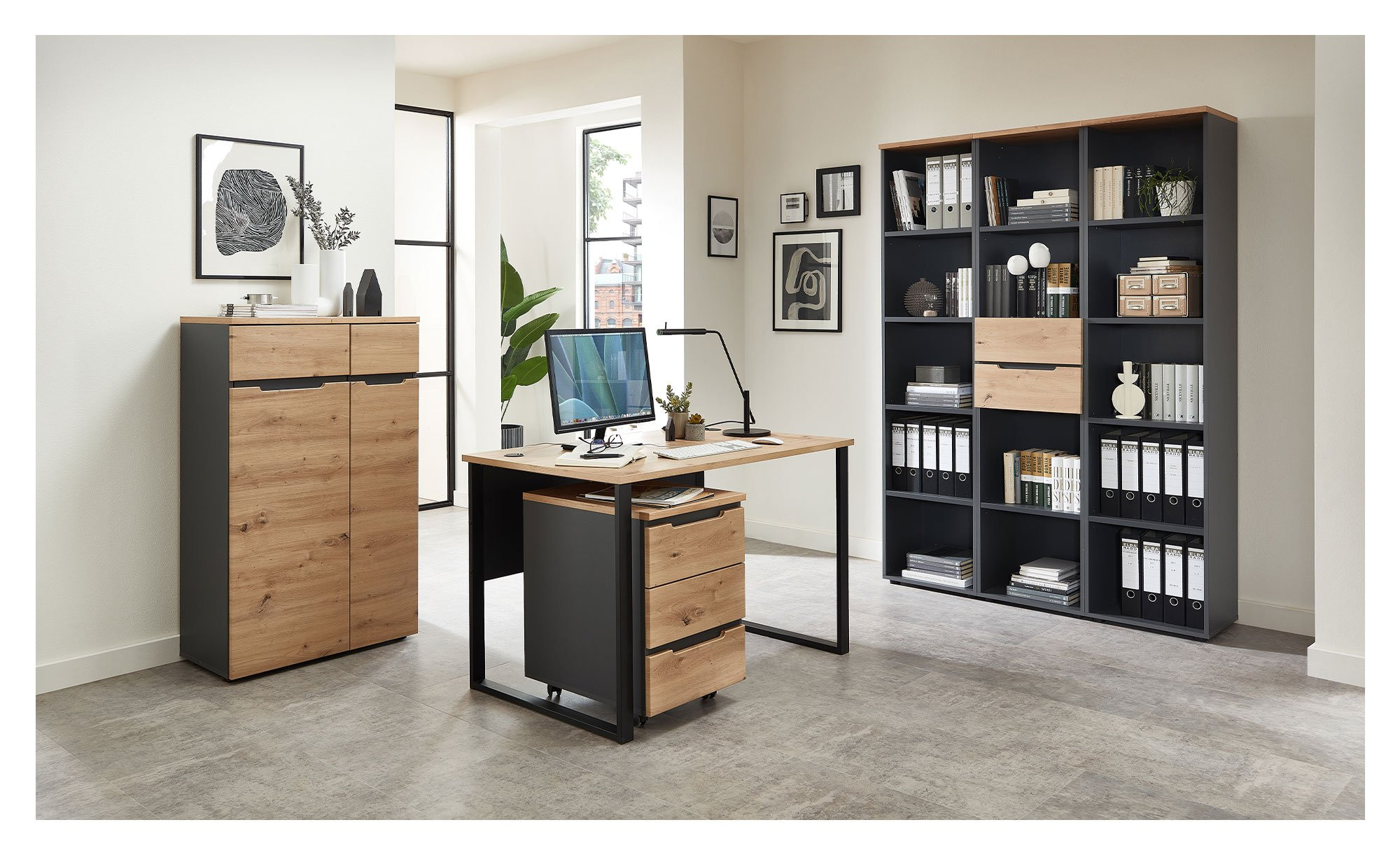Mit seiner Optik und viel Platz zur Unterbringung von Ordnern oder anderen Arbeitsutensilien weiß das Regal Melanie zu überzeugen.