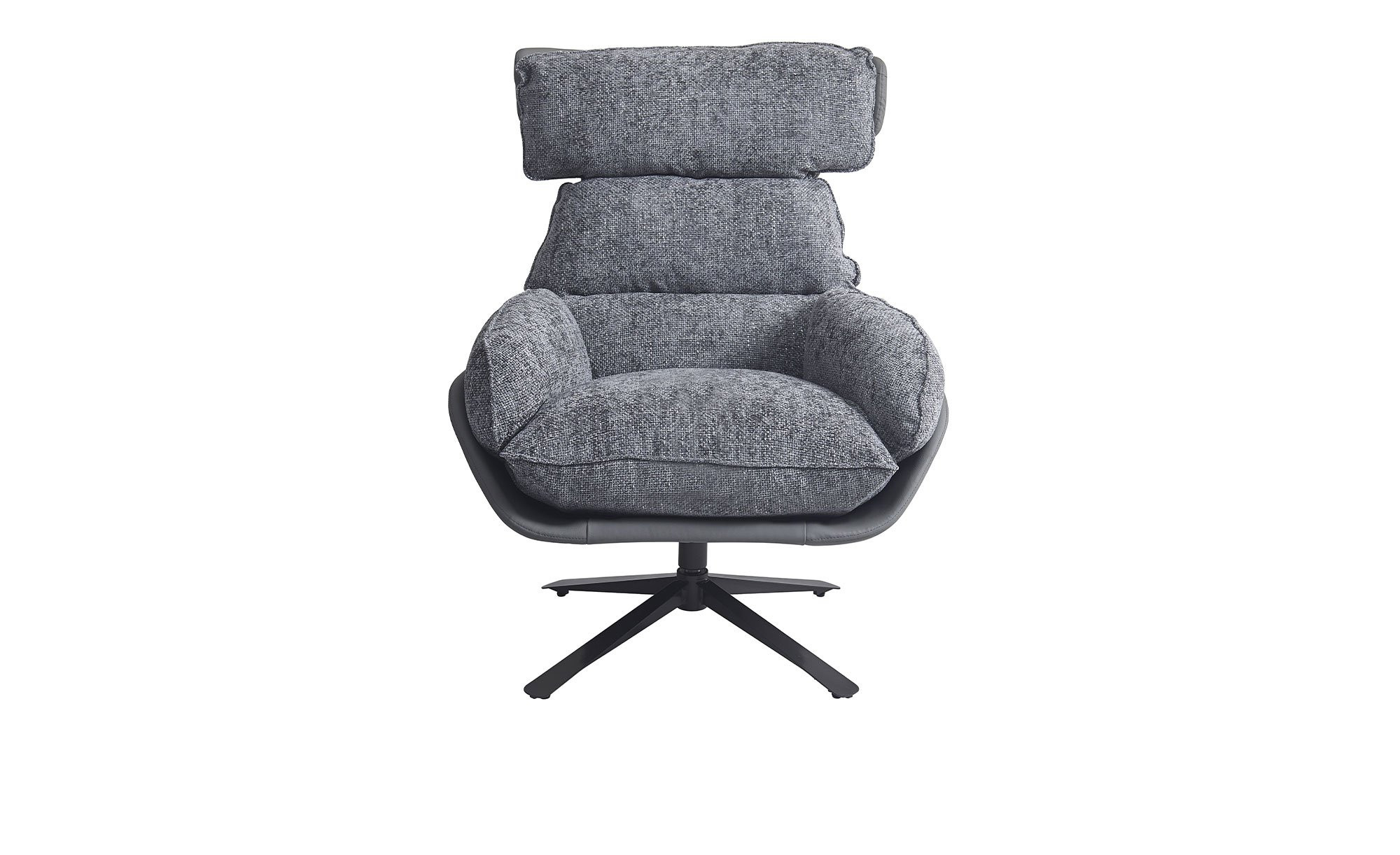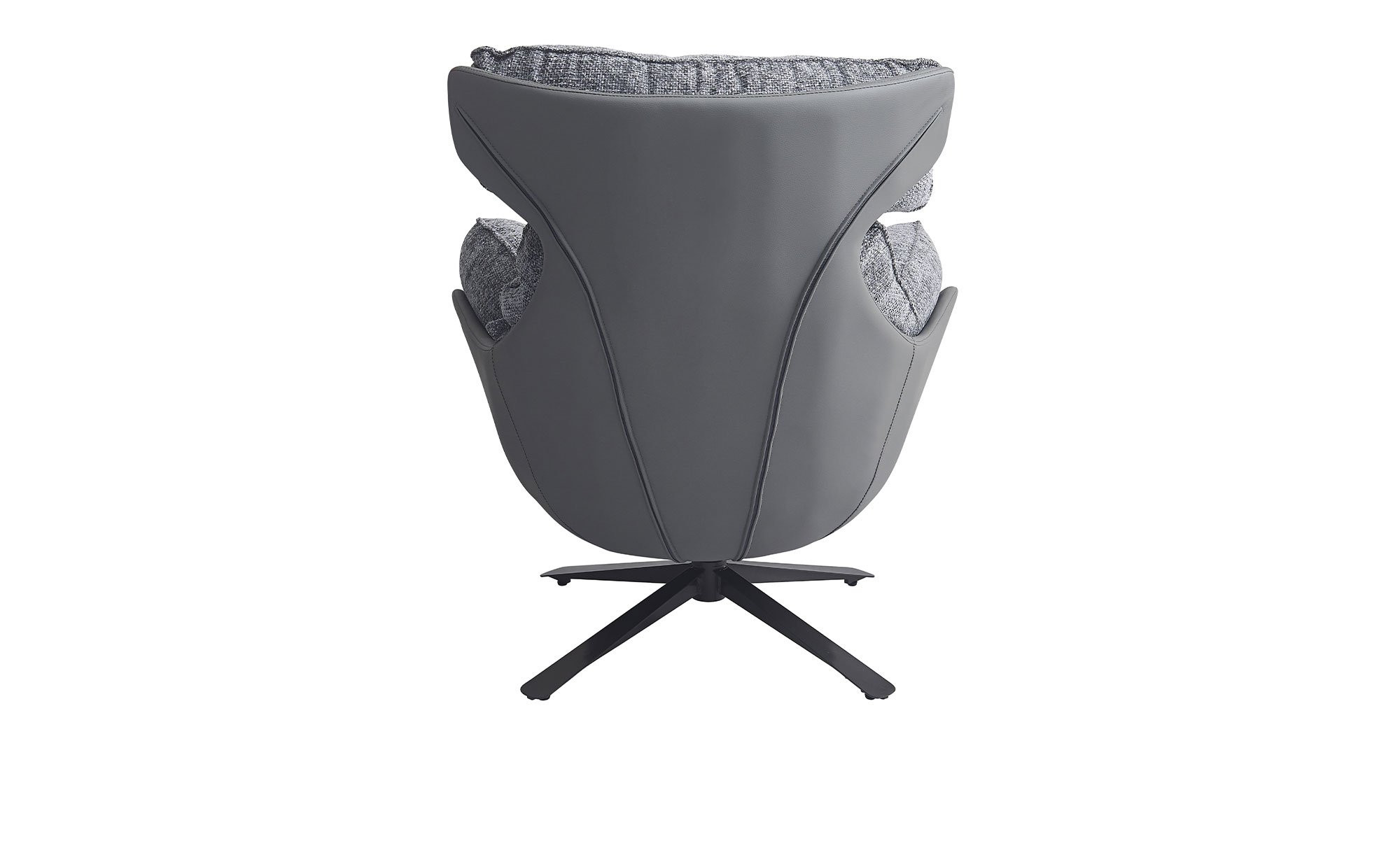 Während der Sitzbereich mit einem grauen Webstoff bezogen ist, findet sich am Korpus ebenfalls graues Kunstleder aus Polyurethan. Der Rücken ist echt bezogen, sodass Sie flexibel bei der Platzierung des ca. 83 x 105 x 88 cm großen Möbelstücks sind. Sein schwarzer Fuß aus Metall verfügt über eine Pulverbeschichtung.