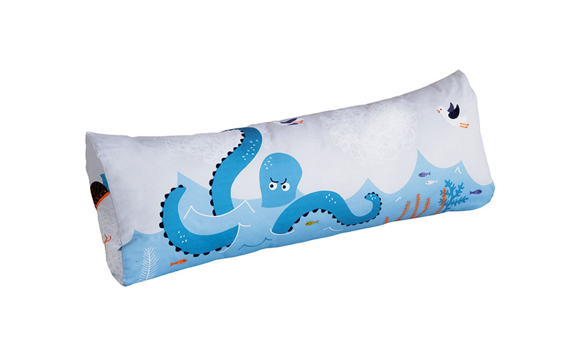 Bezogen ist das ca. 100 x 40 x 25 cm große Kissen mit einem aus 100 % Baumwolle bestehenden Stoff. Dank eines Reißverschlusses können Sie ihn abnehmen und bei 30 Grad waschen.