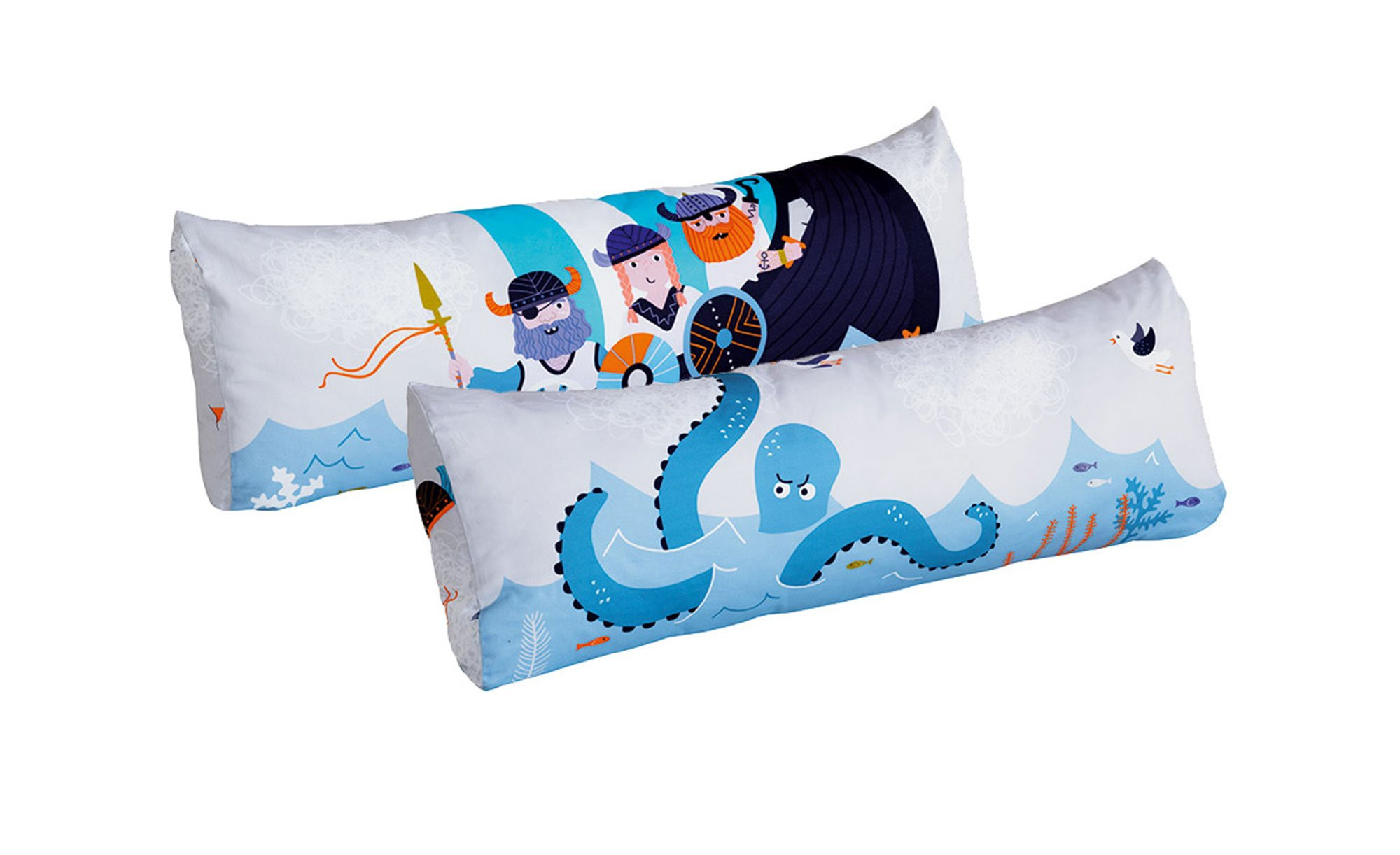 Das gemütliche Rückenkissen mit dem Motiv Wikinger bringt eine spannende Szene auf dem Meer mitten ins Kinderzimmer!