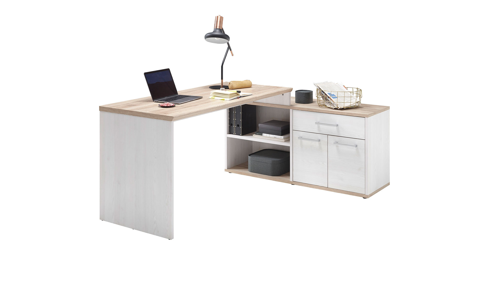 Mit der Schreibtisch-Kombination Romy sorgen Sie in Ihrem Arbeitszimmer für perfekte Büro-Bedingungen.