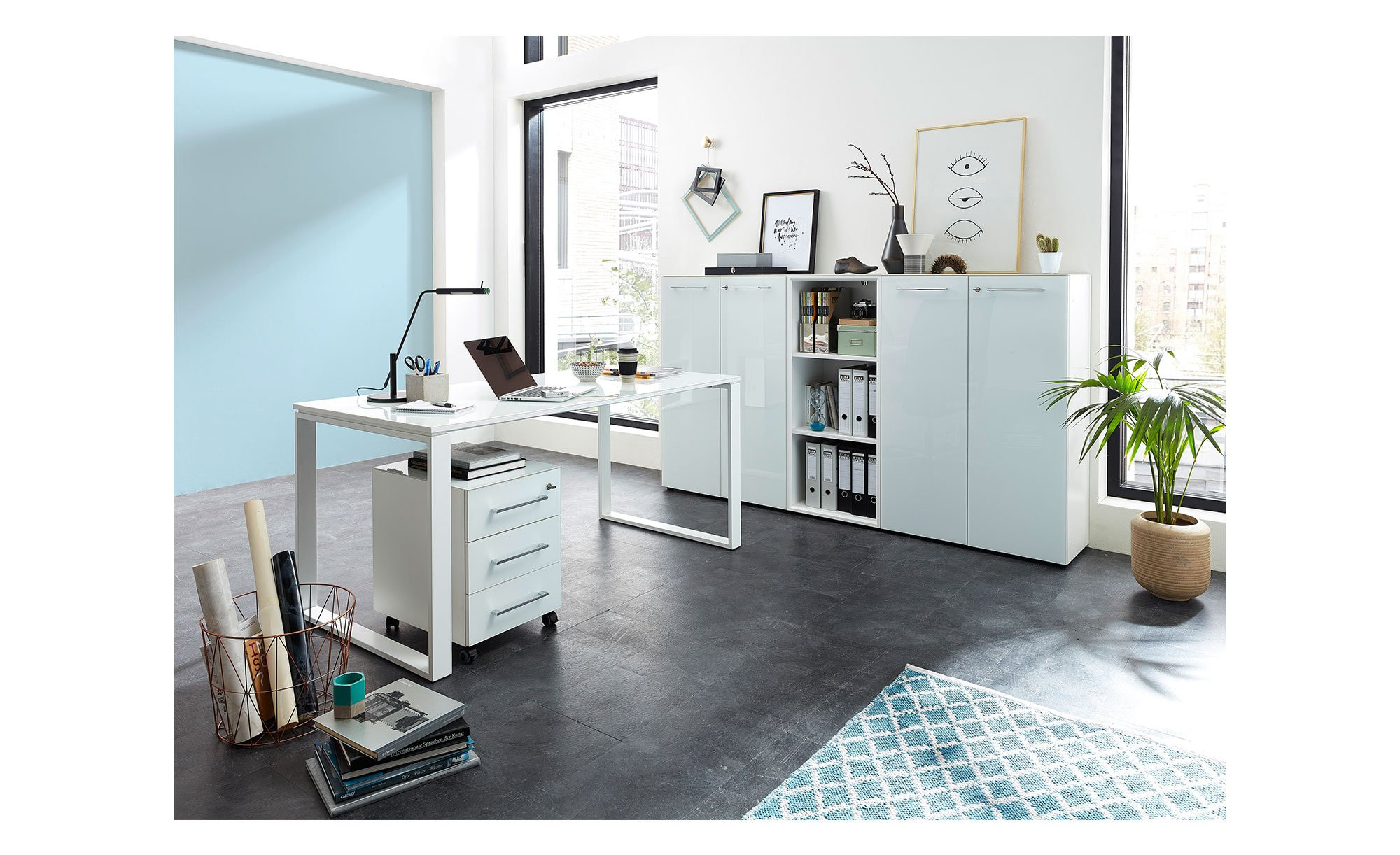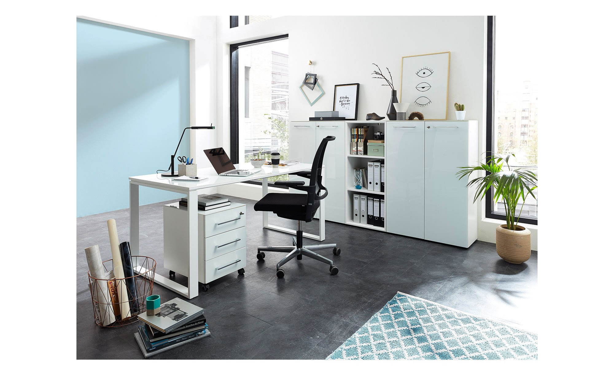 Zusätzlich dürfen Sie sich auf eine mit bis zu ca. 30 kg belastbare Glasauflage in Weiß freuen. Dabei handelt es sich um Einscheibensicherheitsglas mit hoher Widerstandskraft, das für ein wertiges Flair sorgt.