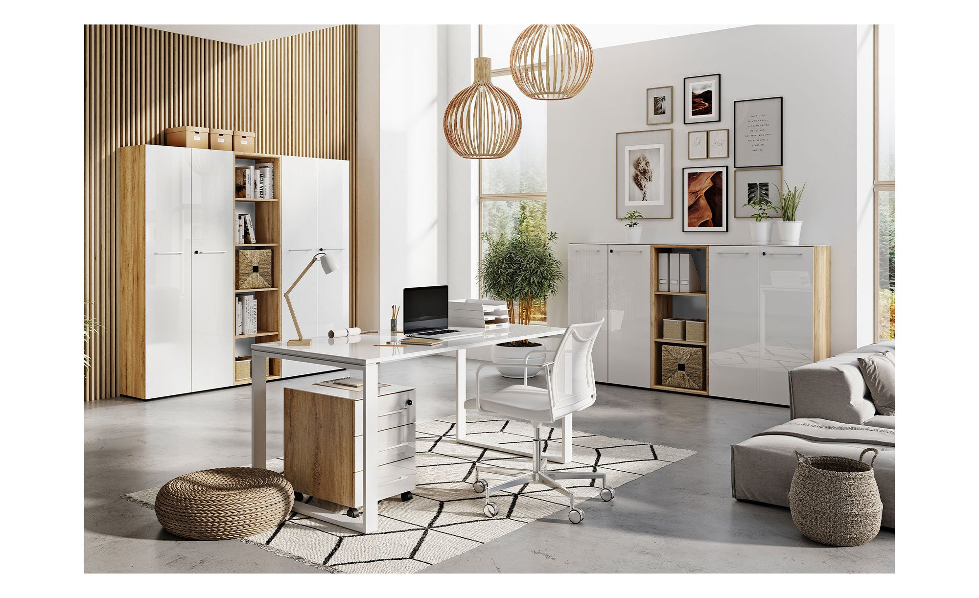 Der Schreibtisch Madera vereint ein durchdachtes Design mit Funktionalität und schafft somit eine inspirierende Umgebung für kreatives Schaffen.