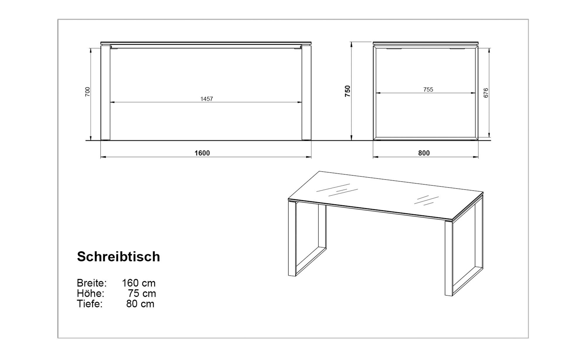 - Material Tischplatte: Einscheibensicherheitsglas, Holzwerkstoff