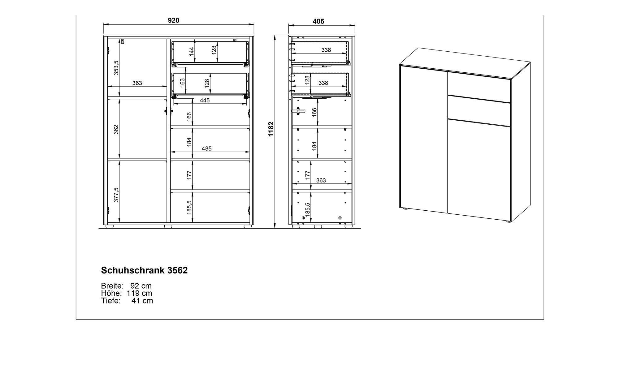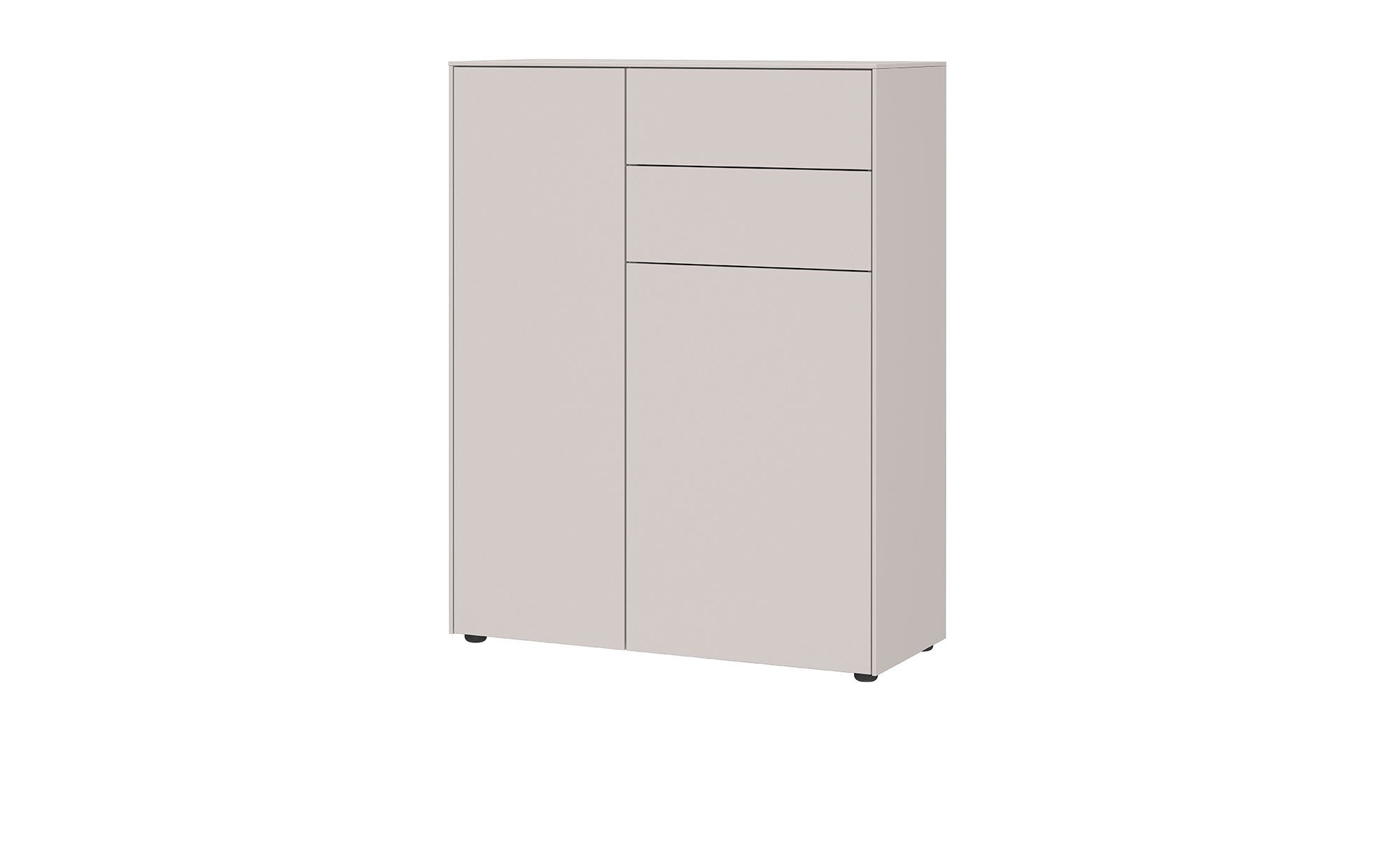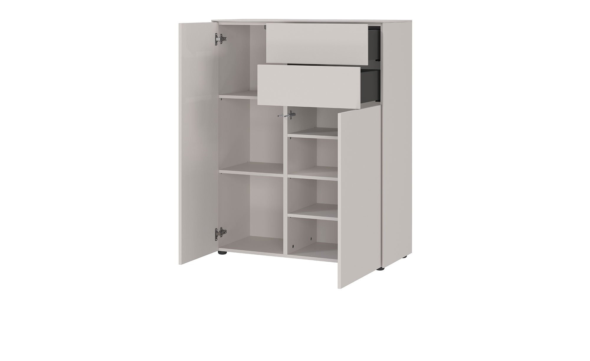 Zum ca. 92 x 119 x 41 cm großen Artikel gehören zwei Türen und zwei Schubladen. Die integrierte Push-to-open Technik garantiert ein sanftes Öffnen und Schließen bei leichtem Druck. Im Innenbereich erzeugen fünf verstellbare Böden jede Menge Stauraum.