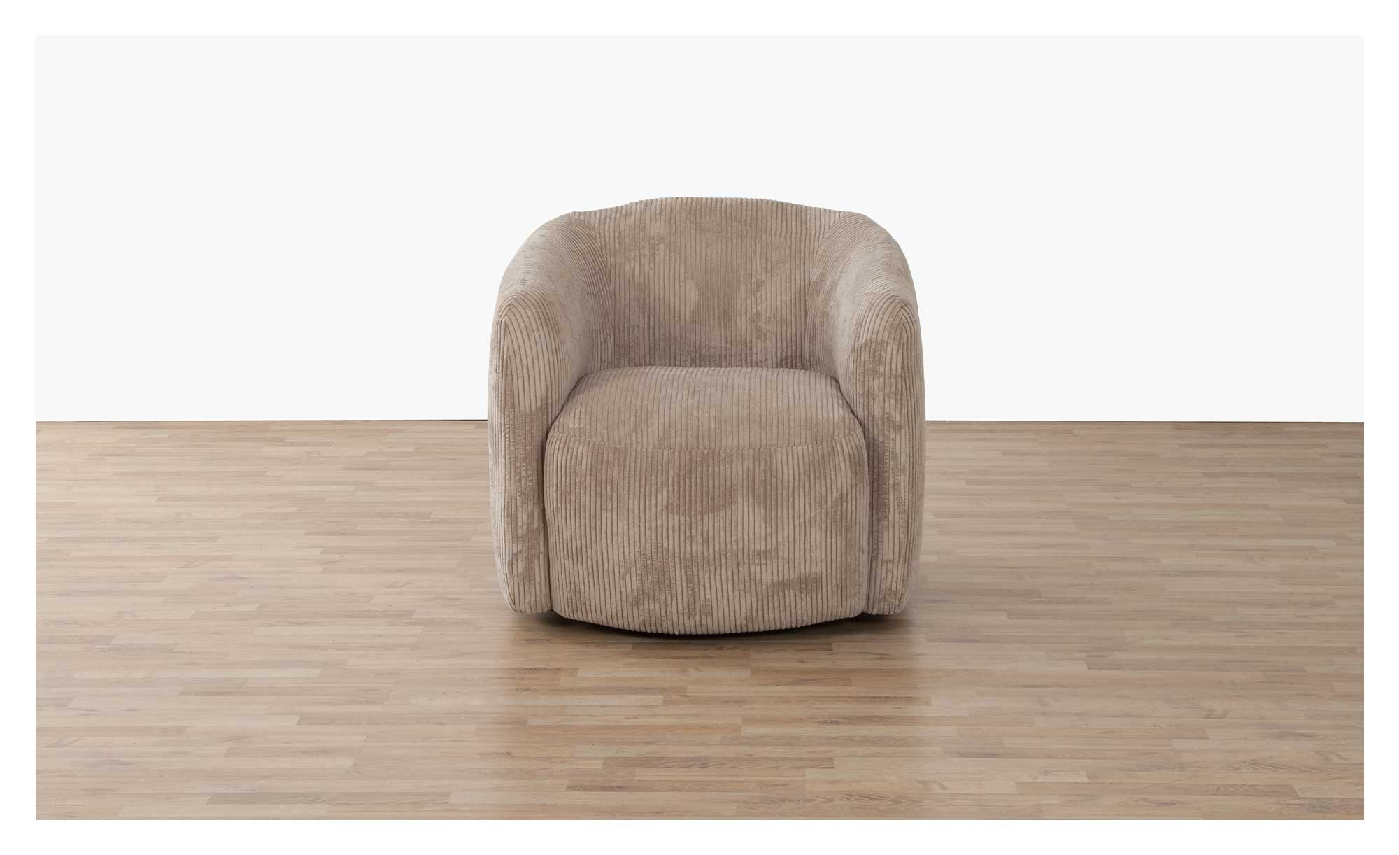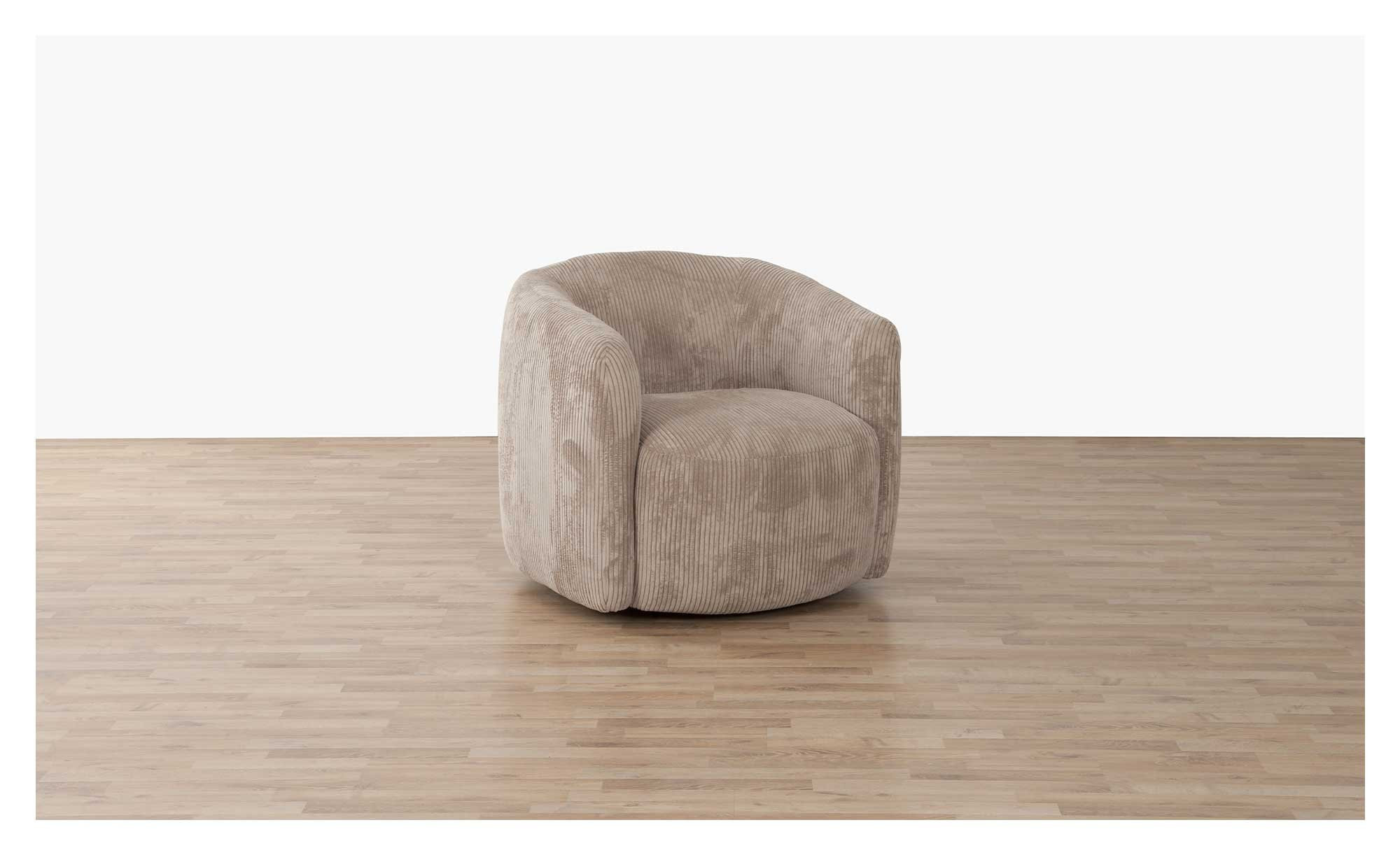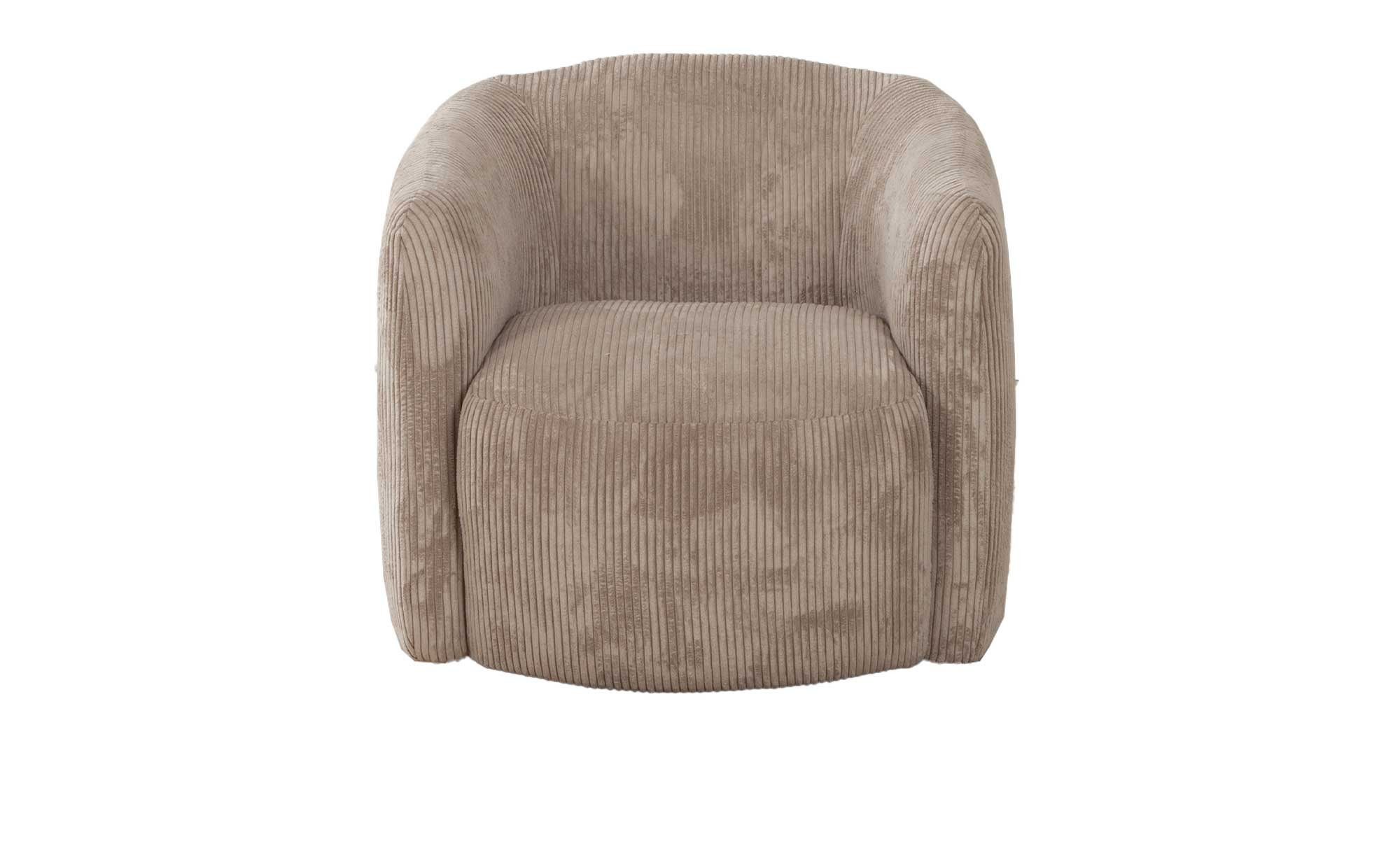 Ein aus 100 % Polyester bestehender Stoffbezug im Farbton Taupe sorgt dafür, dass sich der ca. 87 x 77 x 87 cm große Artikel auch in viele bereits bestehende Raumausstattungen bestens einfügt. Die ca. 4,5 cm hohen Metallfüße sind in Schwarz gehalten.