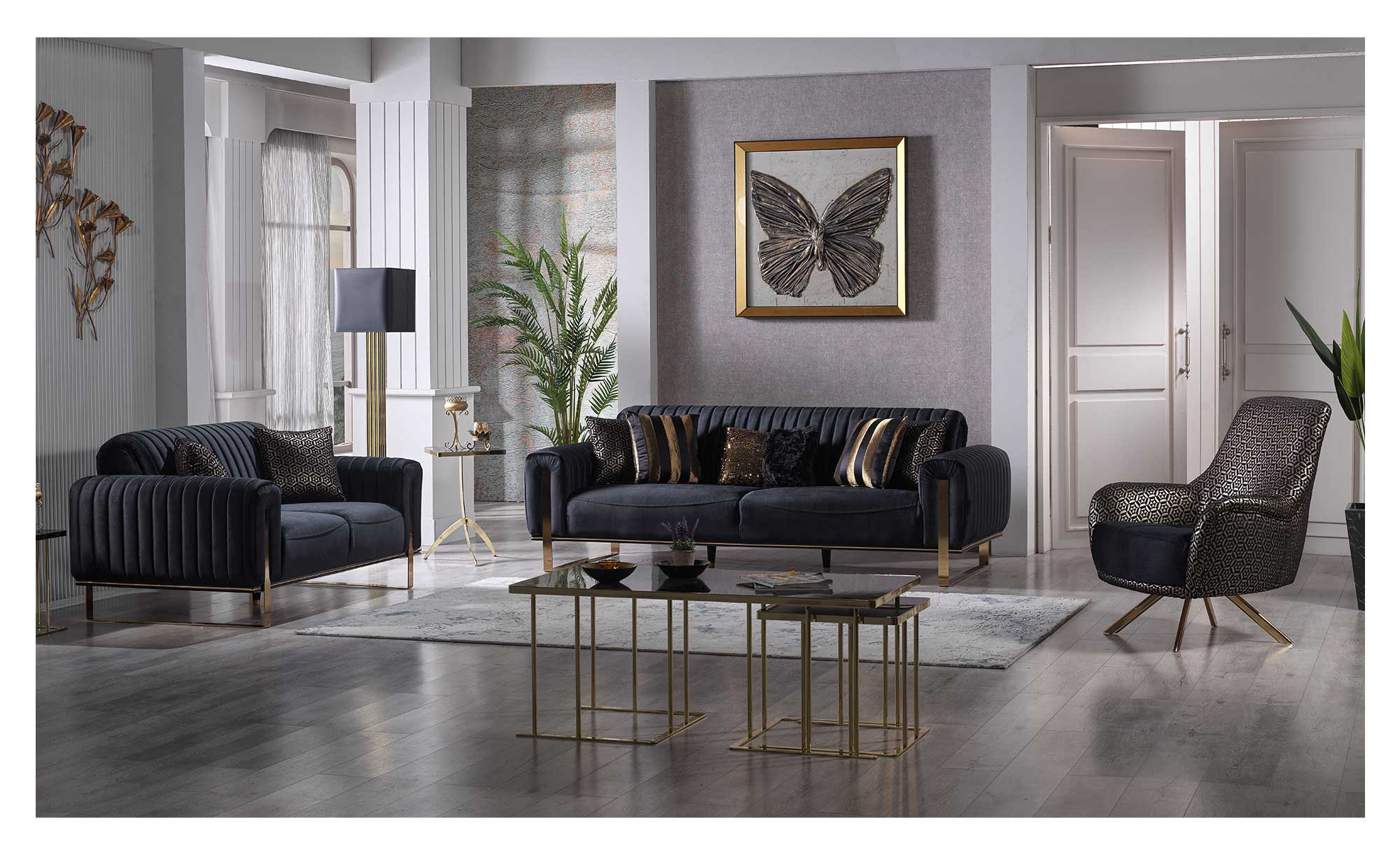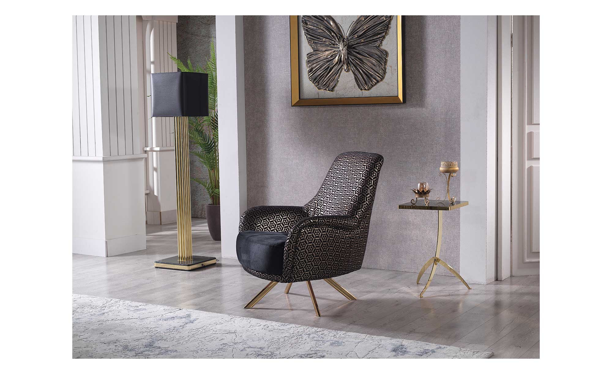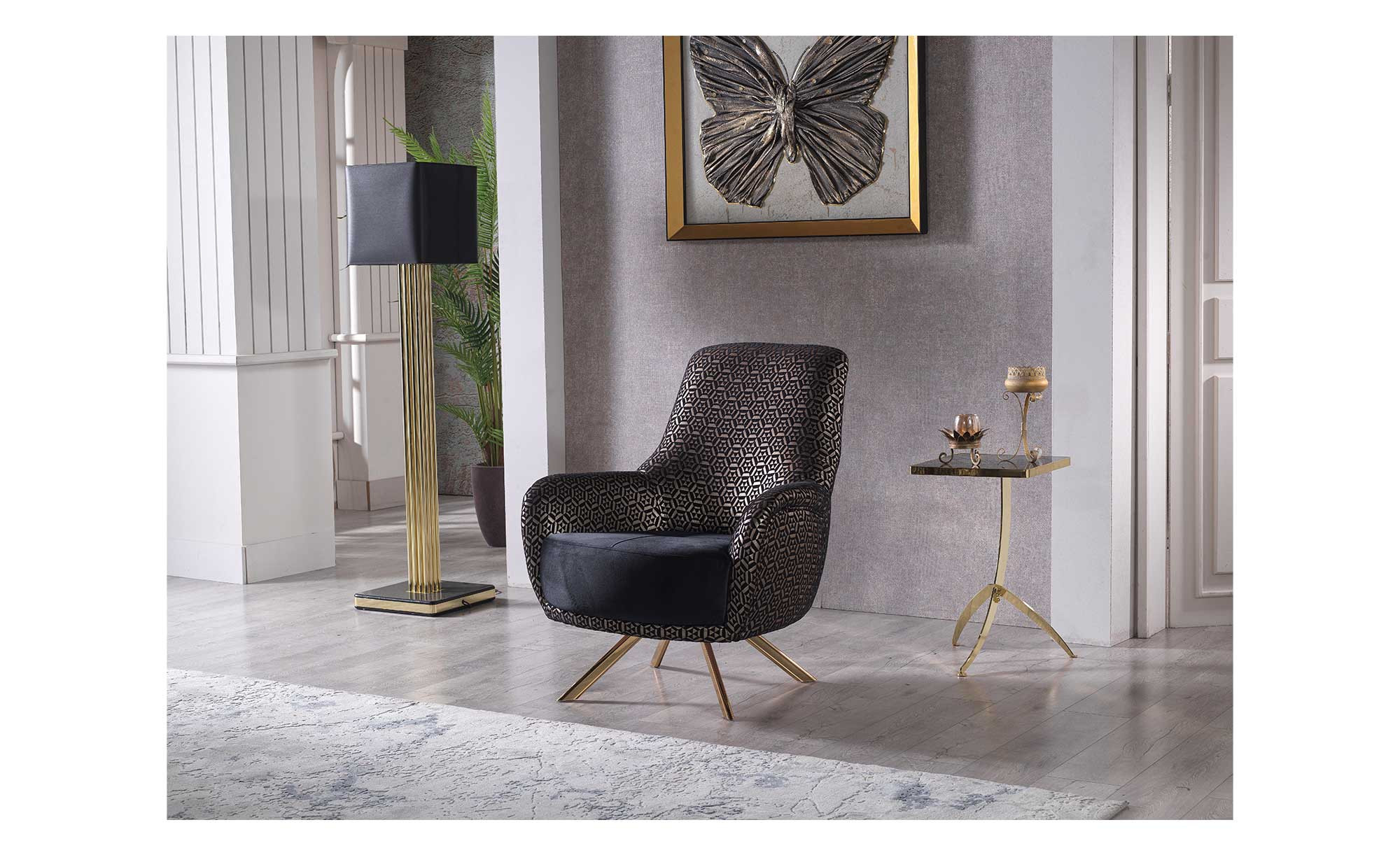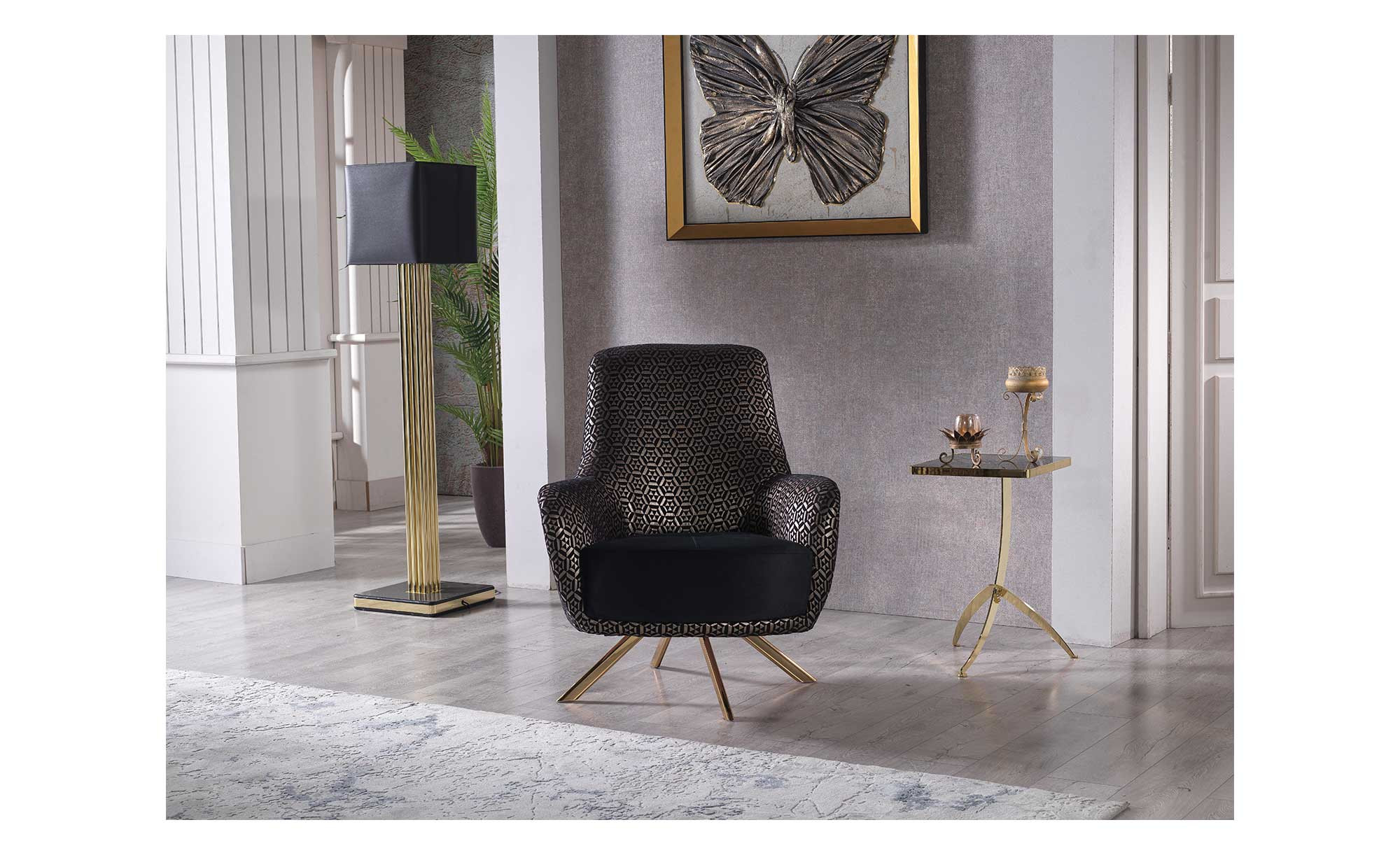 Es erwartet Sie beim Stoffbezug und den Metallfüßen ein gelungener Mix aus Schwarz und Gold – eine Kombination, die für ein wertiges Flair sorgt!