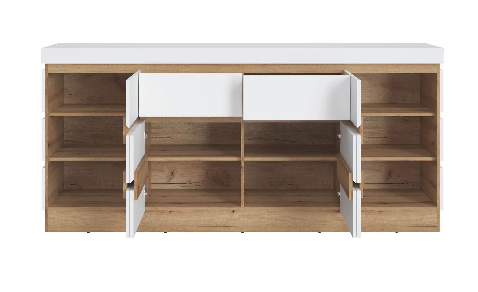 Das Sideboard Calvi ist nicht nur ein modern gestalteter Eyecatcher, sondern bietet Ihnen auch praktischen Stauraum.