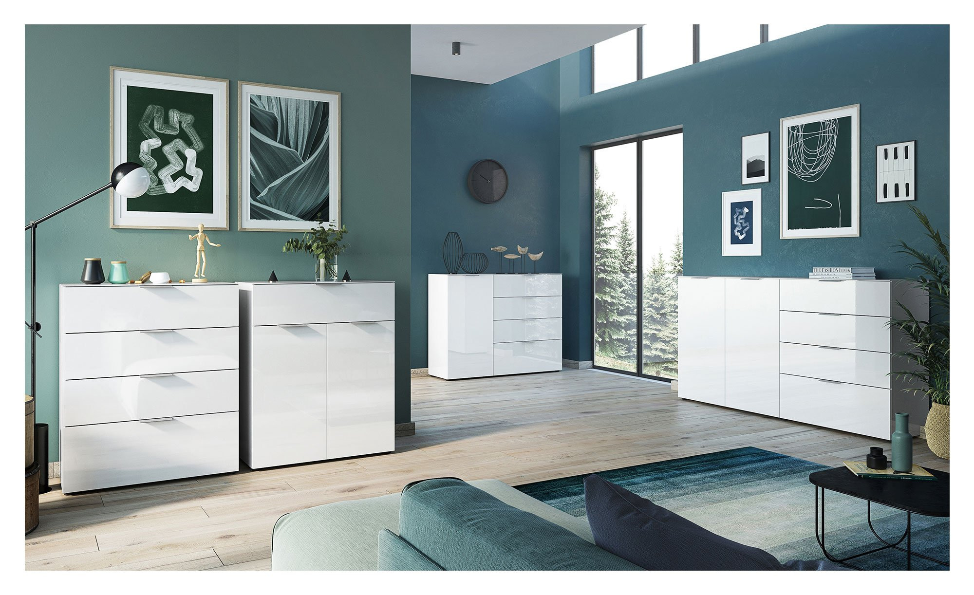 Das Sideboard Owingen besticht durch sein modernes, weißes Design und bietet gleichzeitig großzügigen Stauraum.