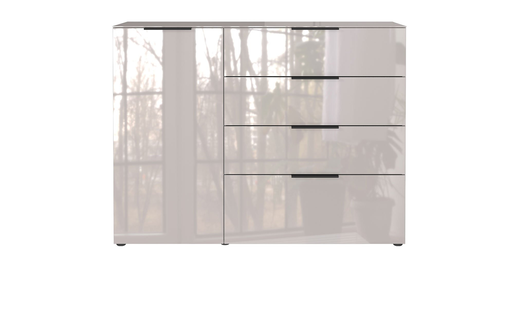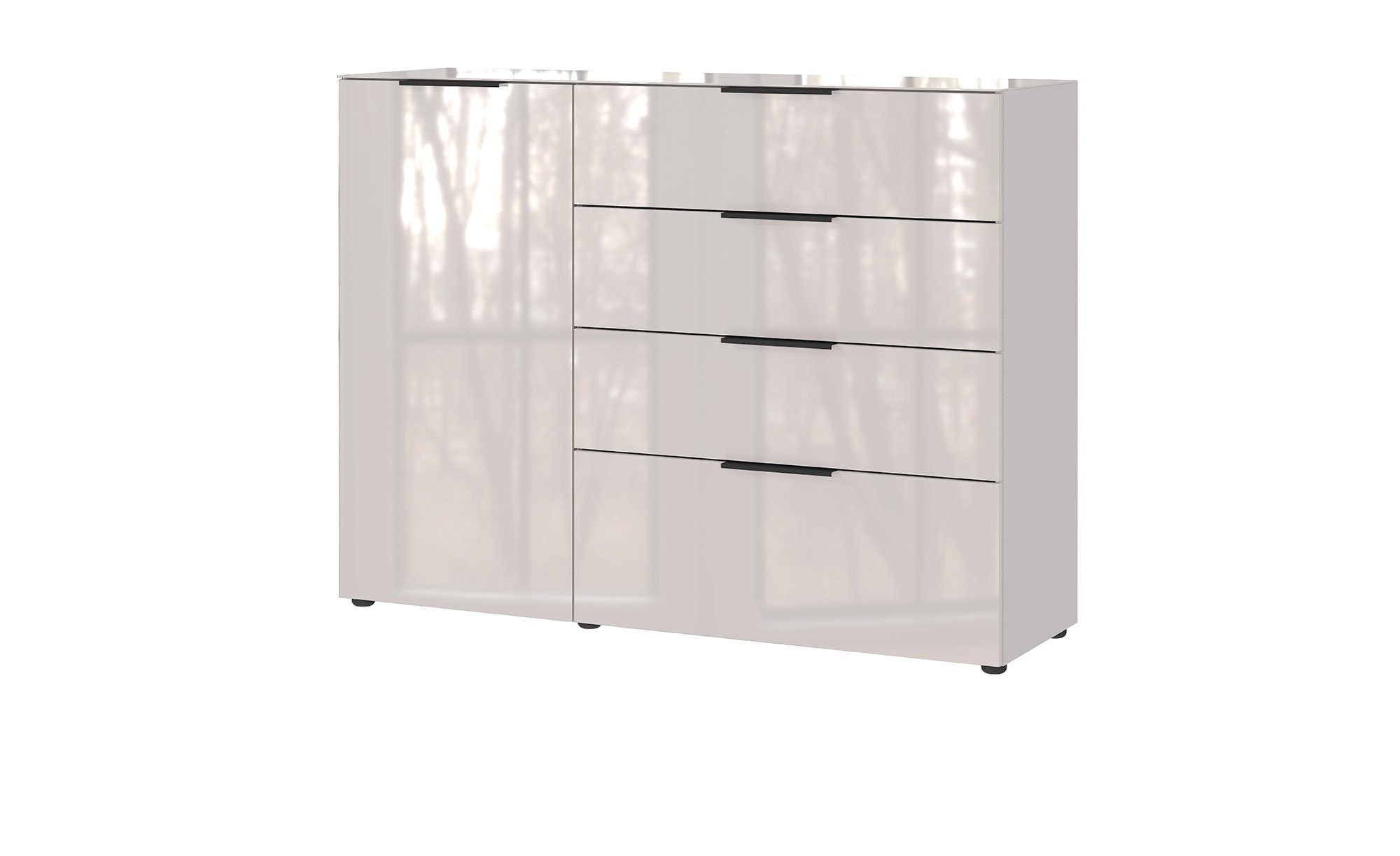 Das Sideboard Owingen überzeugt durch eine gelungene Kombination aus praktischem Stauraum und moderner, klarer Formensprache. Front und Korpus des ca. 134 x 102 x 42 cm großen Möbelstücks sind aus Holzwerkstoff im Farbton Kaschmir gefertigt. Eine Auflage aus robustem Einscheibensicherheitsglas verleiht der Vorderseite zusätzliche Eleganz, während der Korpus dank einer kratzfesten Melaminharzbeschichtung dauerhaft geschützt bleibt. ABS-Kanten und schwarze Kunststofffüße runden das harmonische Gesamtbild ab.