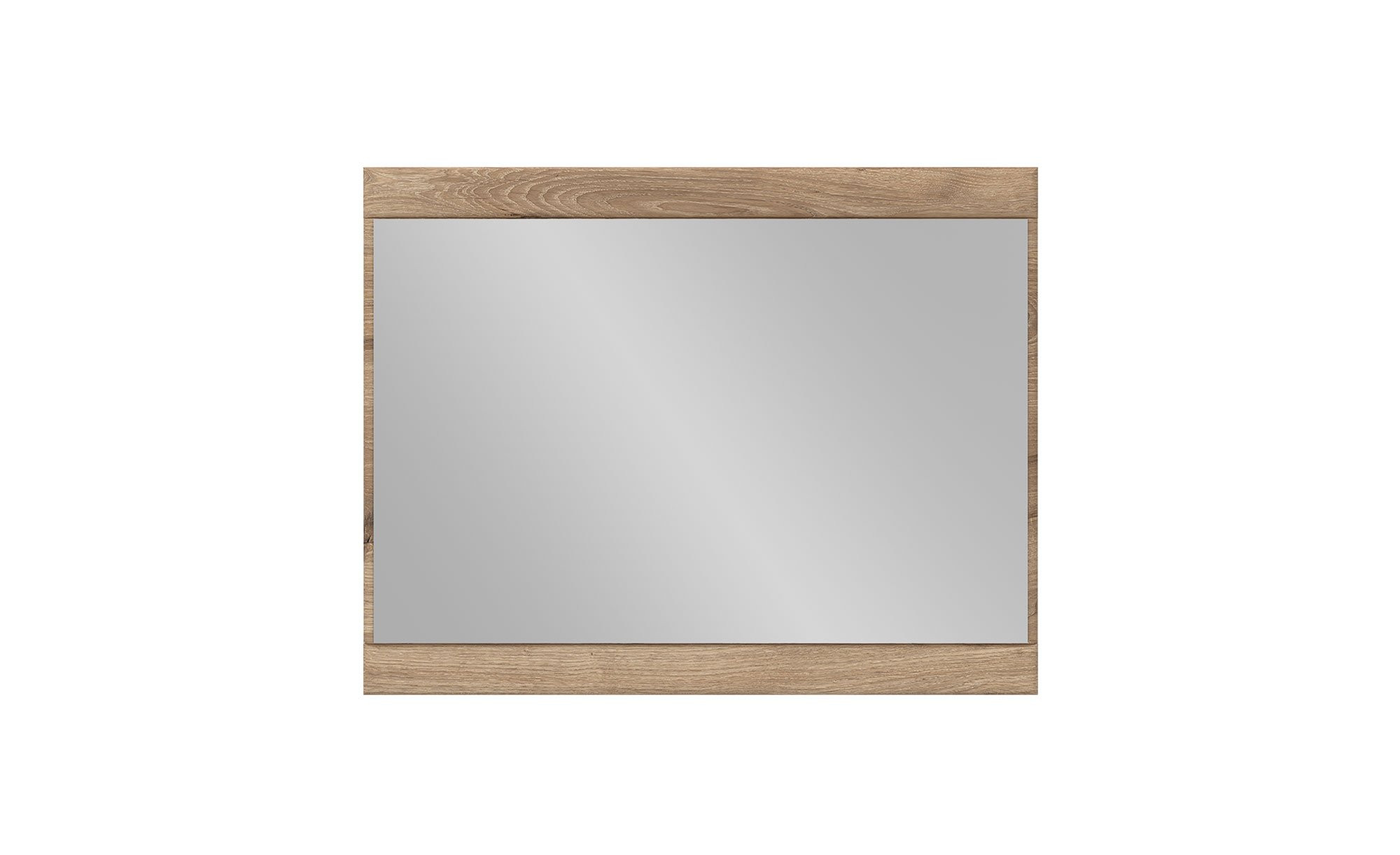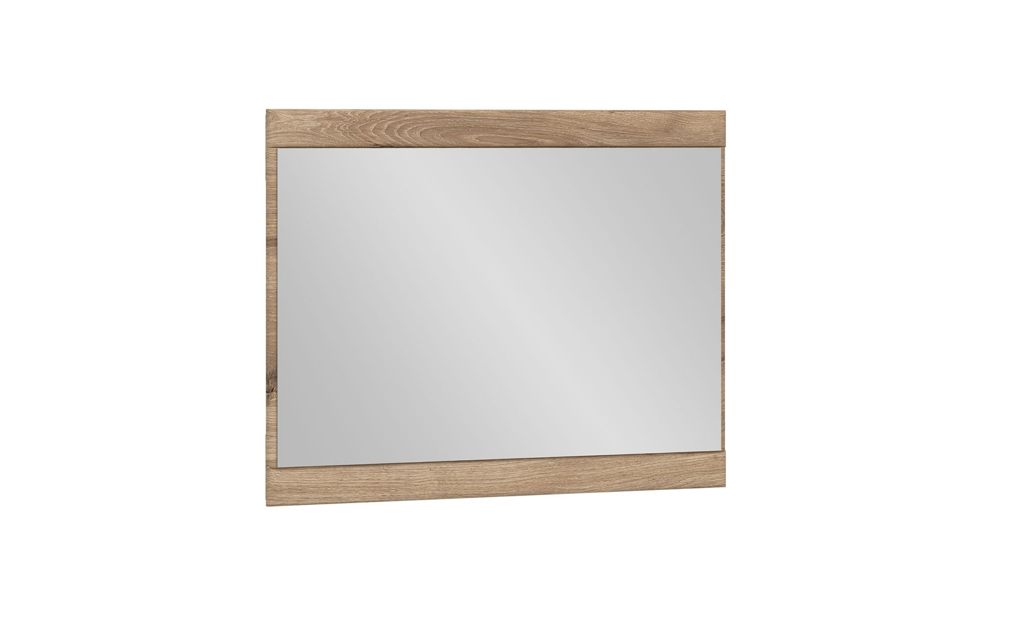 Die Front des ca. 93 x 73 x 4 cm großen Artikels besteht aus Holzwerkstoff in einem natürlichen Viking Eiche-Dekor. Mittig ist die großzügige Spiegelfläche angebracht.