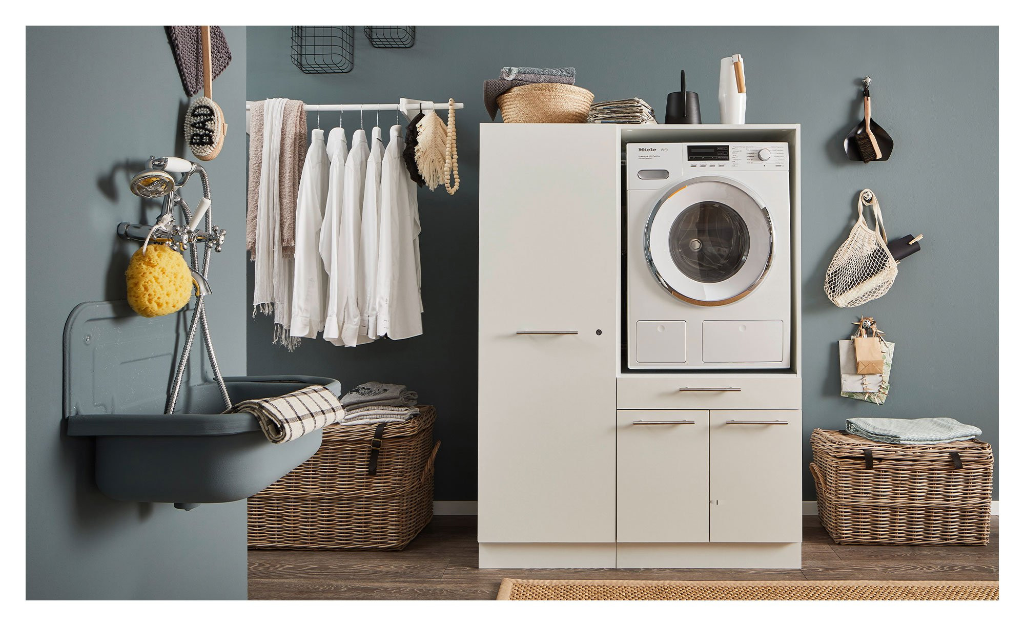 Mit dem Stauraumschrank Laundry sorgen Sie auf zugleich schlichte und stilvolle Weise für mehr Platz in Ihrem Badezimmer.
