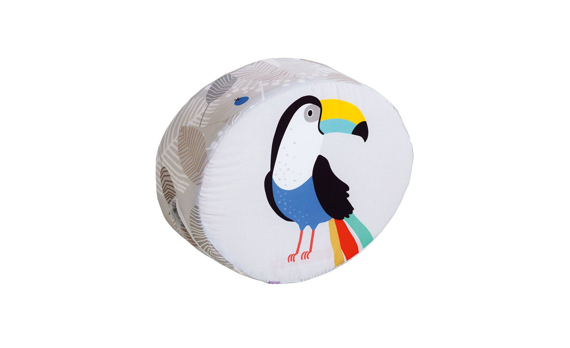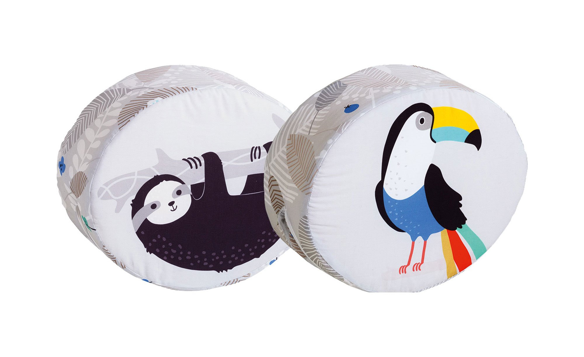 Das ca. 35 x 28 x 12 cm große Kissen begeistert mit einem süßen Faultier auf der Vorderseite. Auf der Rückseite hingegen erwartet Sie ein farbenfroher Tukan. Dank des Reißverschlusses lässt sich der aus 100 % Baumwolle bestehende Bezug bei Bedarf auch abnehmen. Sie können ihn bei 30 Grad waschen.
