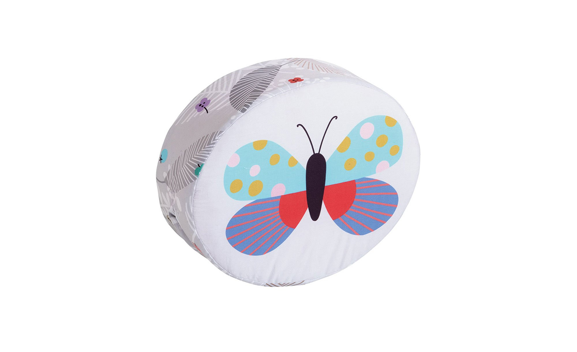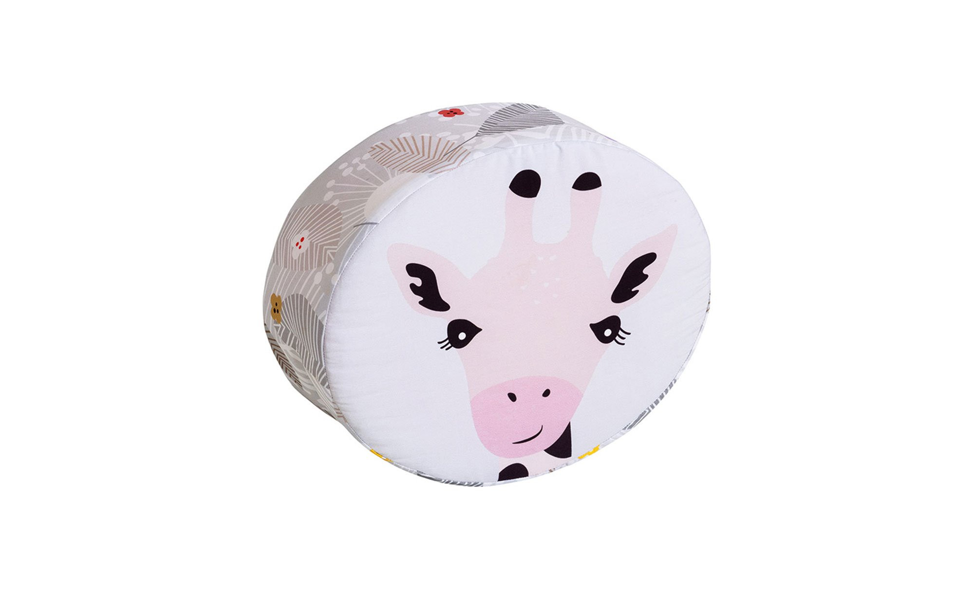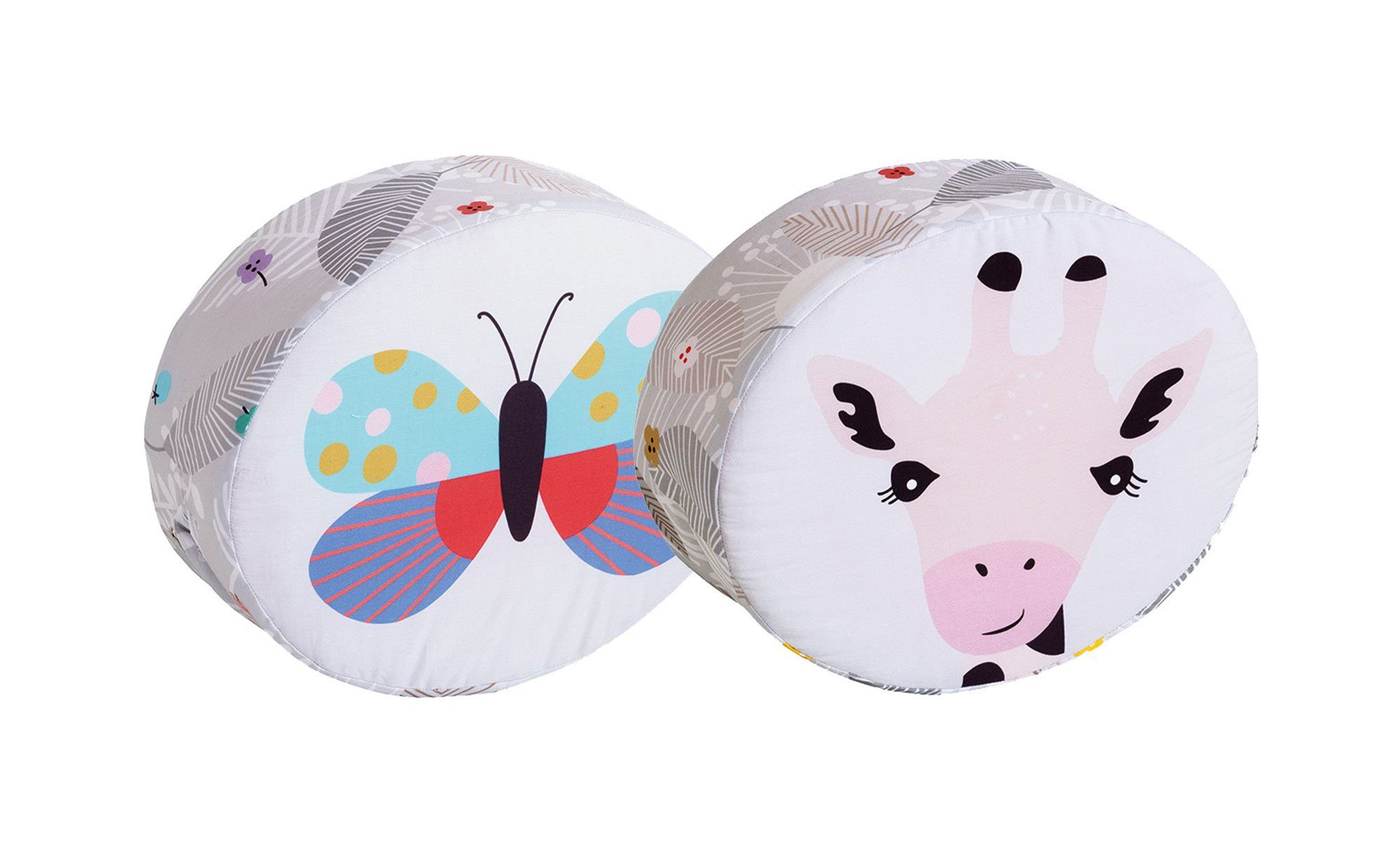 Während Ihnen auf der Vorderseite des ca. 35 x 28 x 12 cm großen Kissens eine fröhliche Giraffe entgegenlächelt, befindet sich auf der Rückseite das Motiv Schmetterling. Der aus 100 % Baumwolle gefertigte Bezug kann dank seines Reißverschlusses auch abgenommen und bei 30 Grad gewaschen werden.