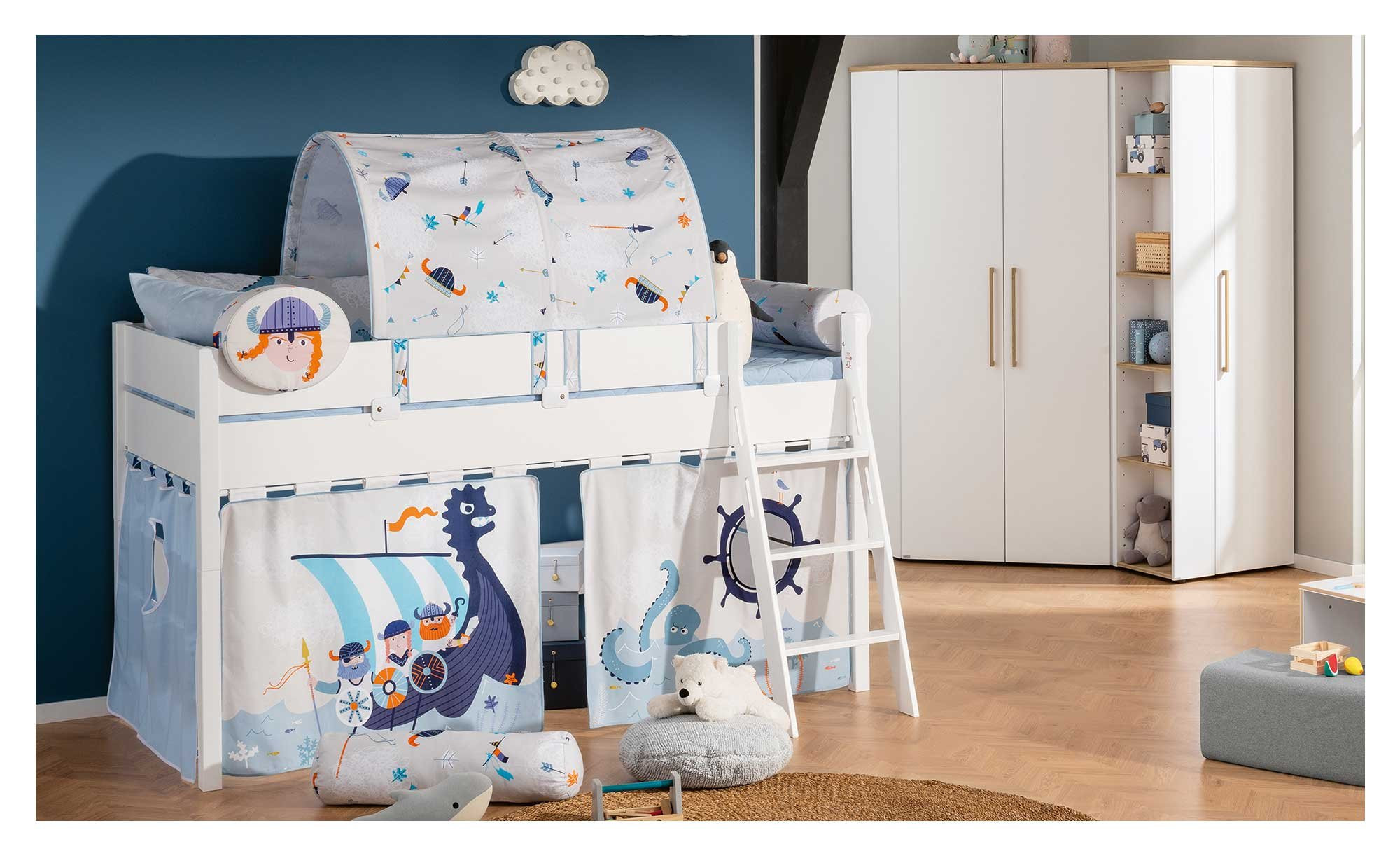 Mit dem Steckkissen Wikinger-Mädchen bringen Sie eine zugleich gemütliche und lustige Atmosphäre ins Kinderzimmer.