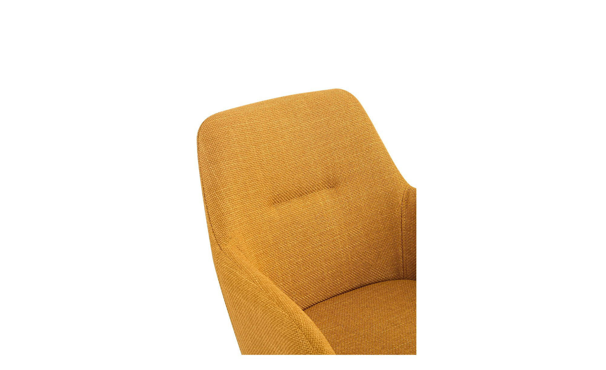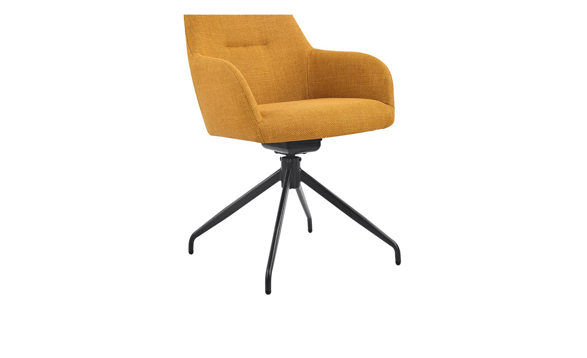 Der gelbe Mikrofaser-Webstoff aus 100 % Polyester verleiht dem Stuhl eine frische, einladende Optik. Das schwarze Metallgestell mit Pulverbeschichtung sorgt für Stabilität und setzt einen stilvollen Kontrast zum Bezug.