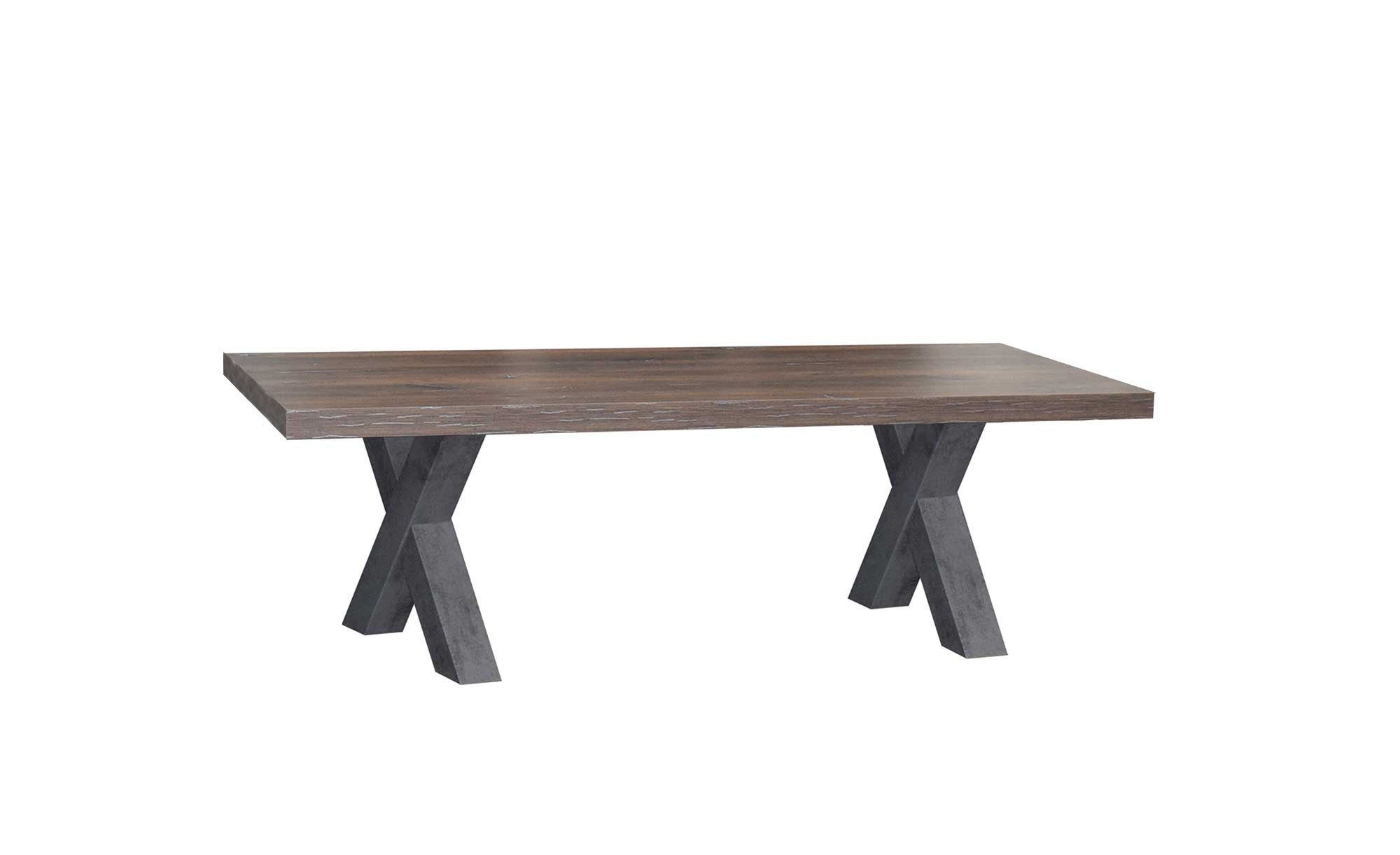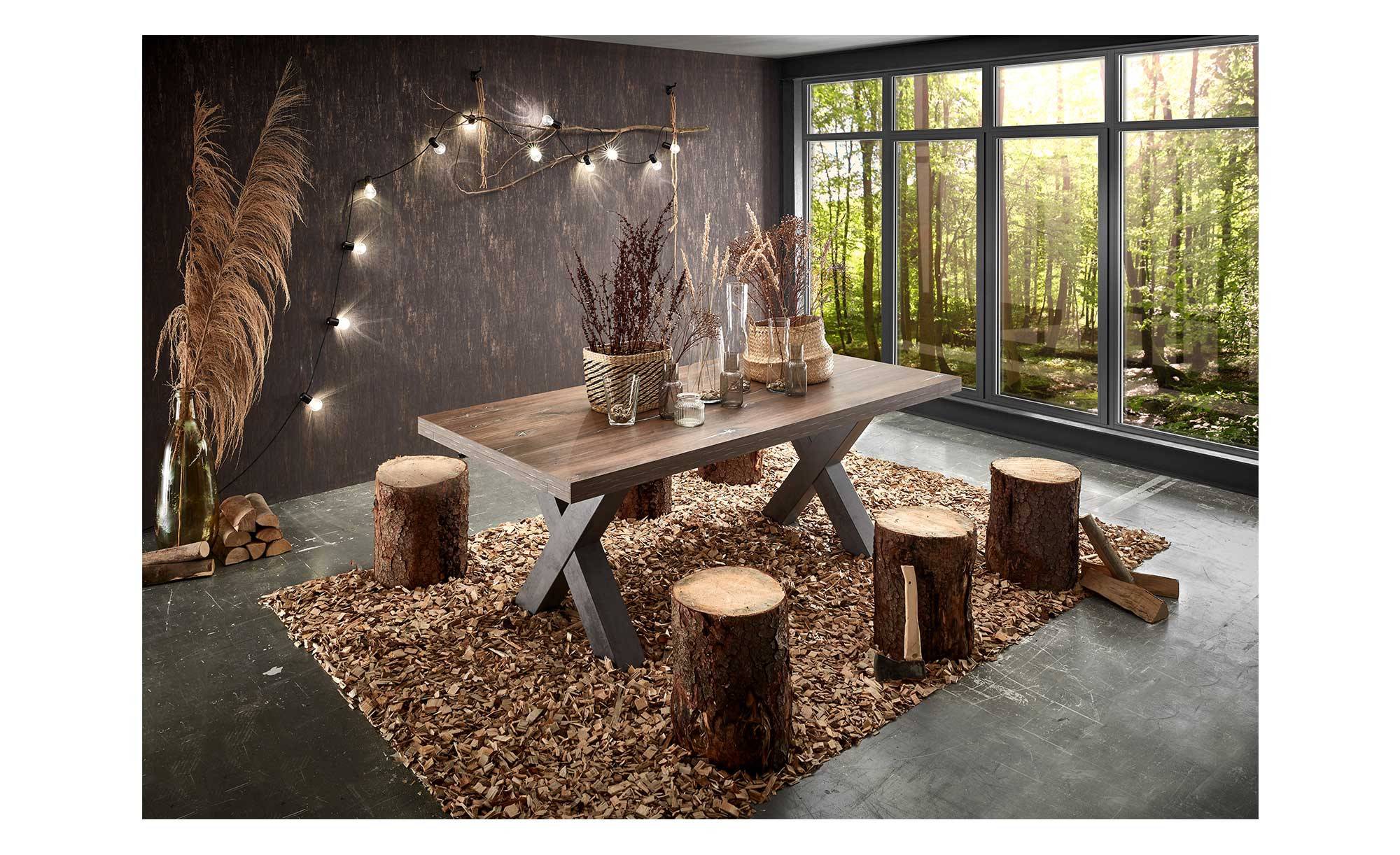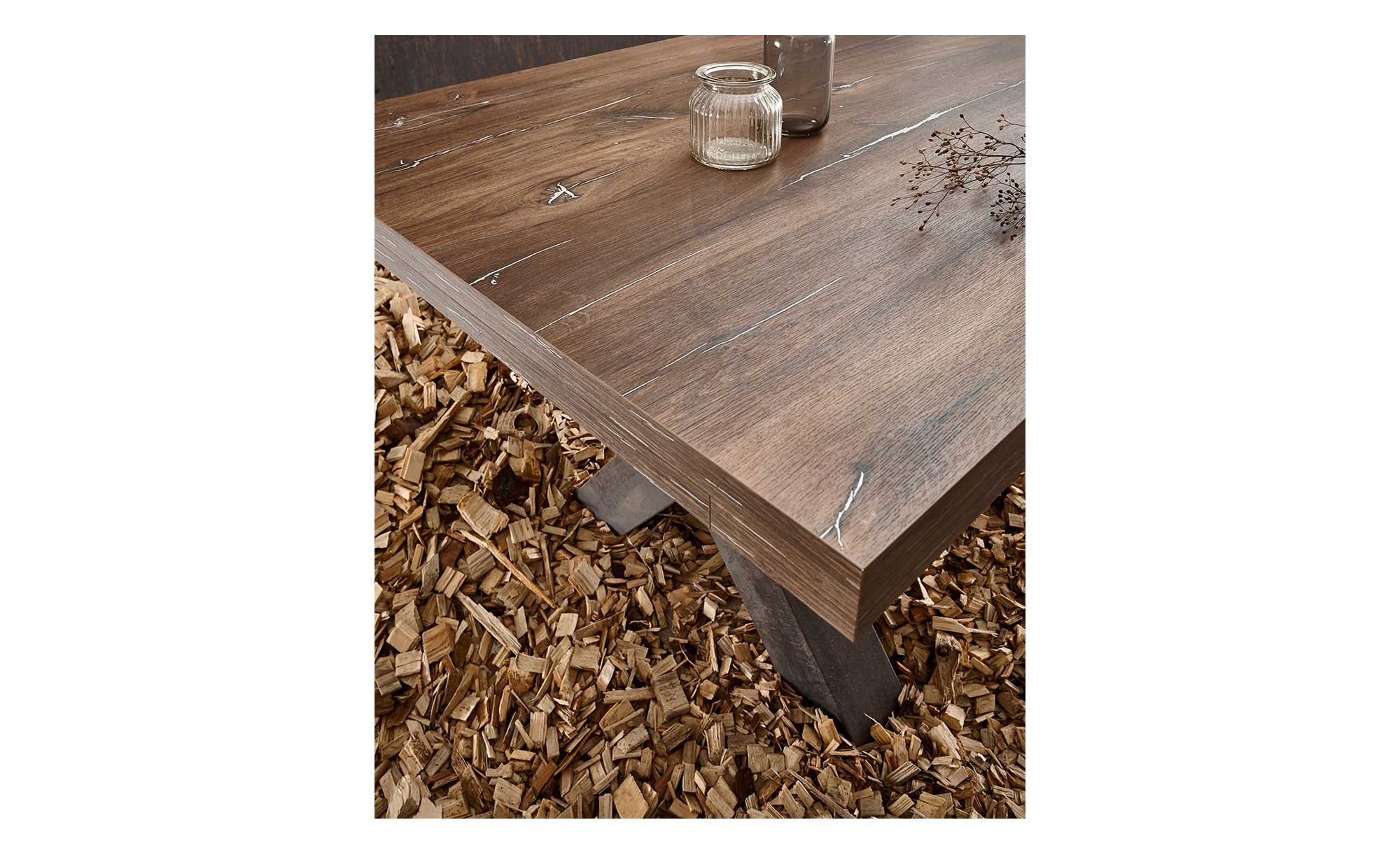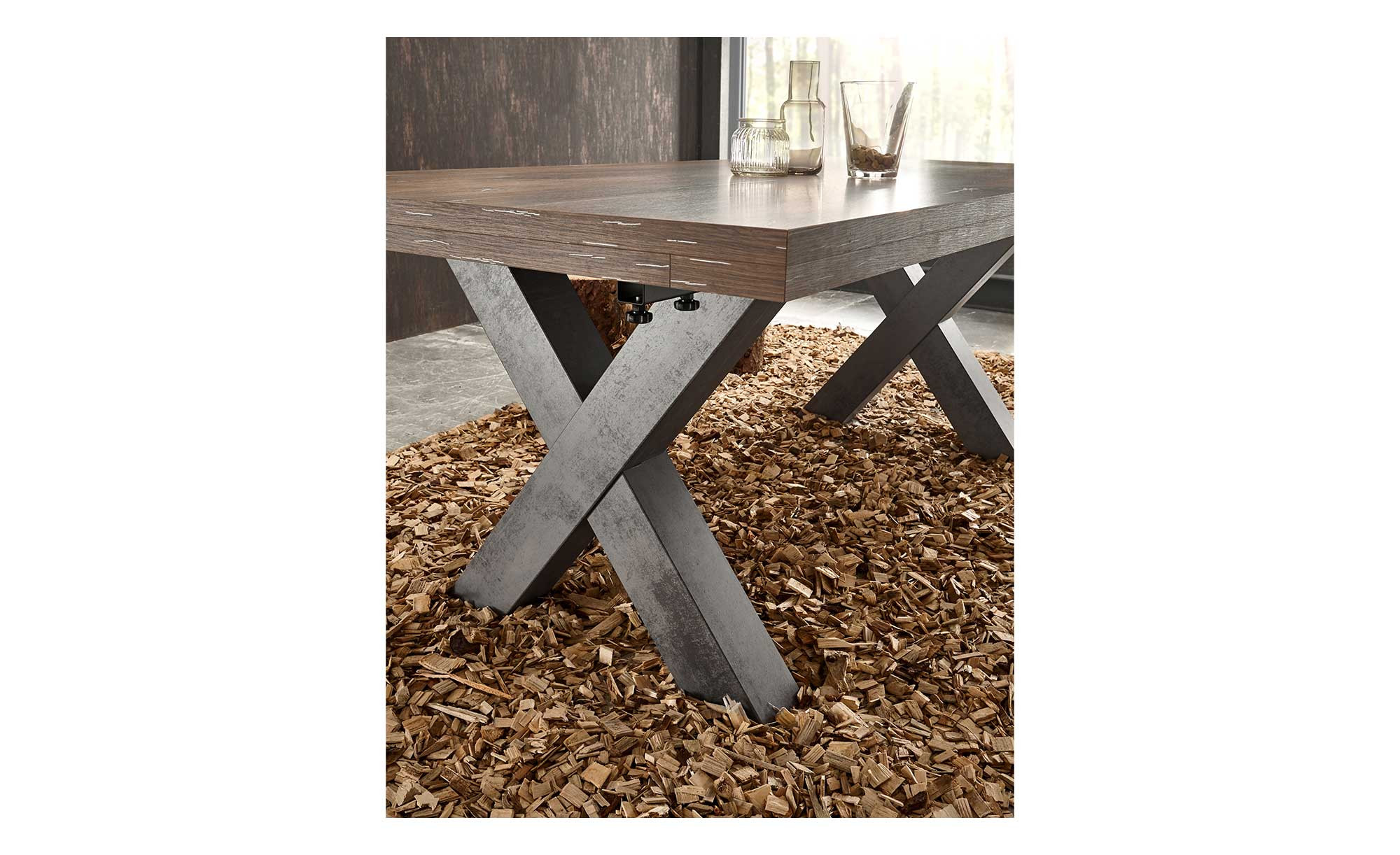 Mit seinem graphitfarbenen X-Gestell und der dicken, rechteckigen Platte macht der Tisch optisch einiges her. Das dunkle Dekor Zinneiche Bijoux der Platte wird durch eine widerstandsfähige Melaminbeschichtung geschützt. Sie haben also lange Freude am Artikel.