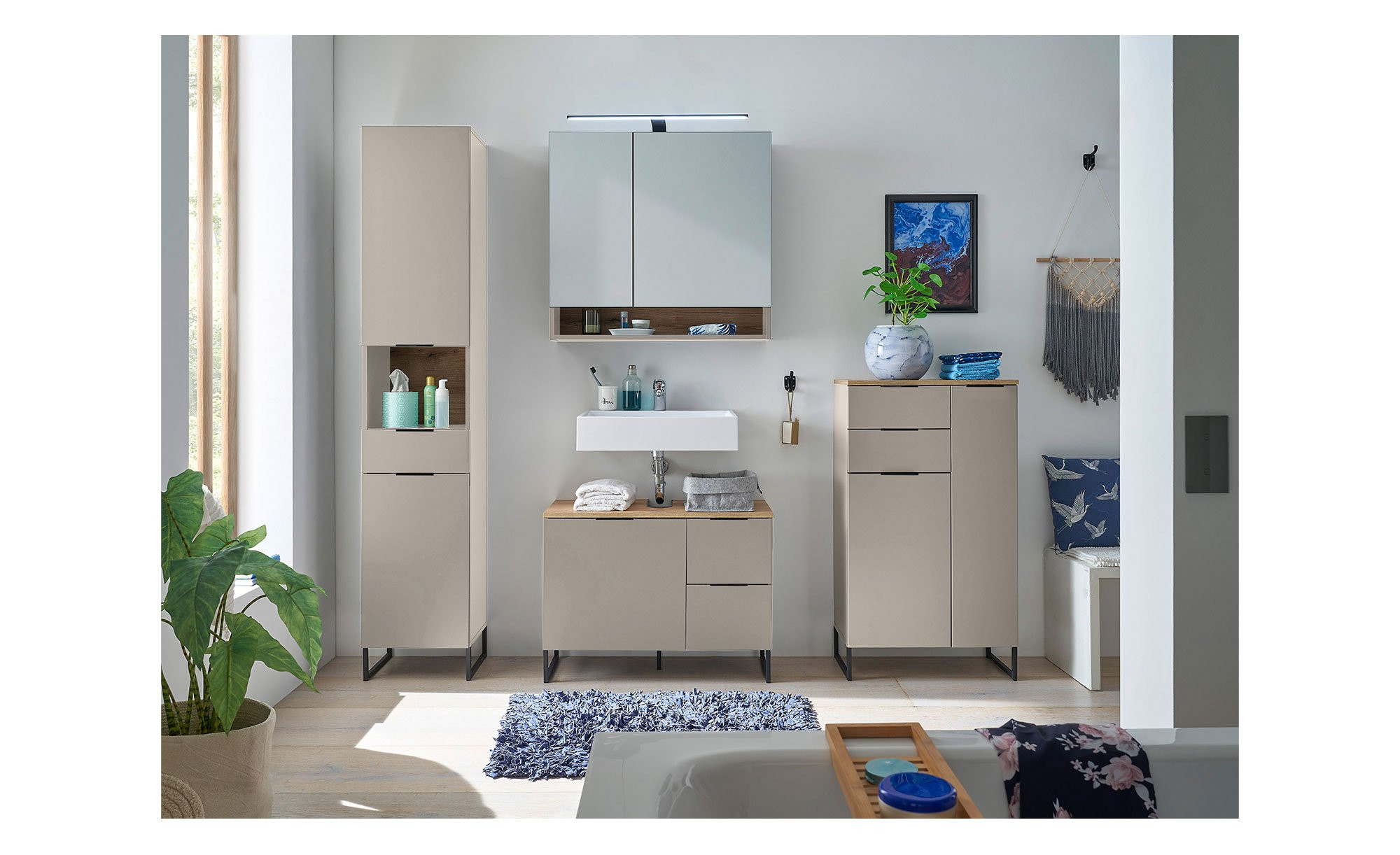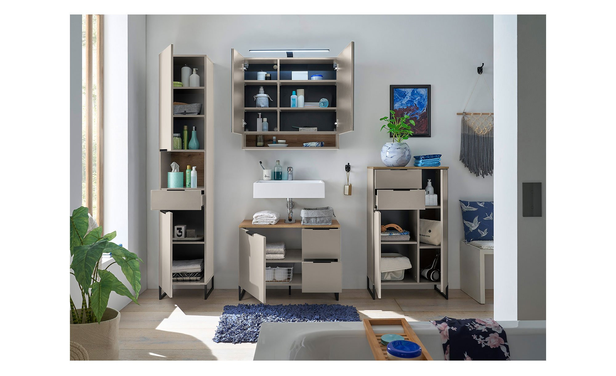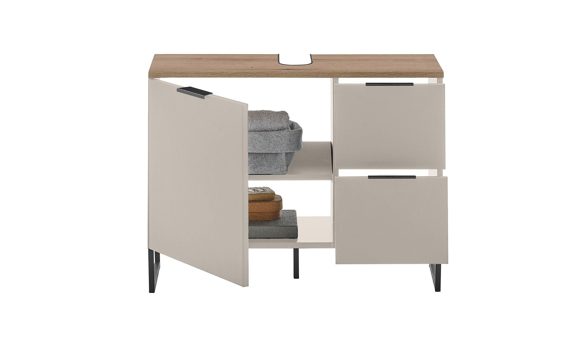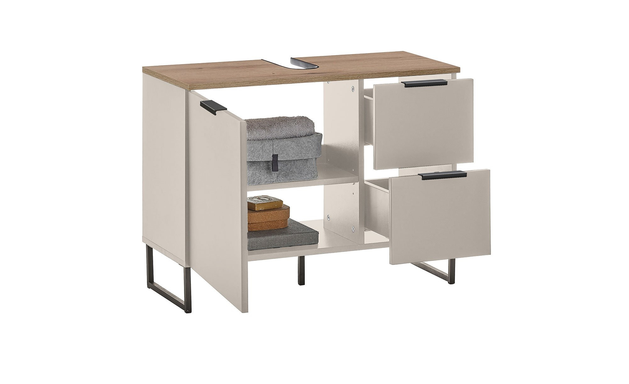Durchdachter Stauraum für Ihr Badezimmer – mit dem Waschbeckenunterschrank Djerba sind diverse Utensilien stets griffbereit.