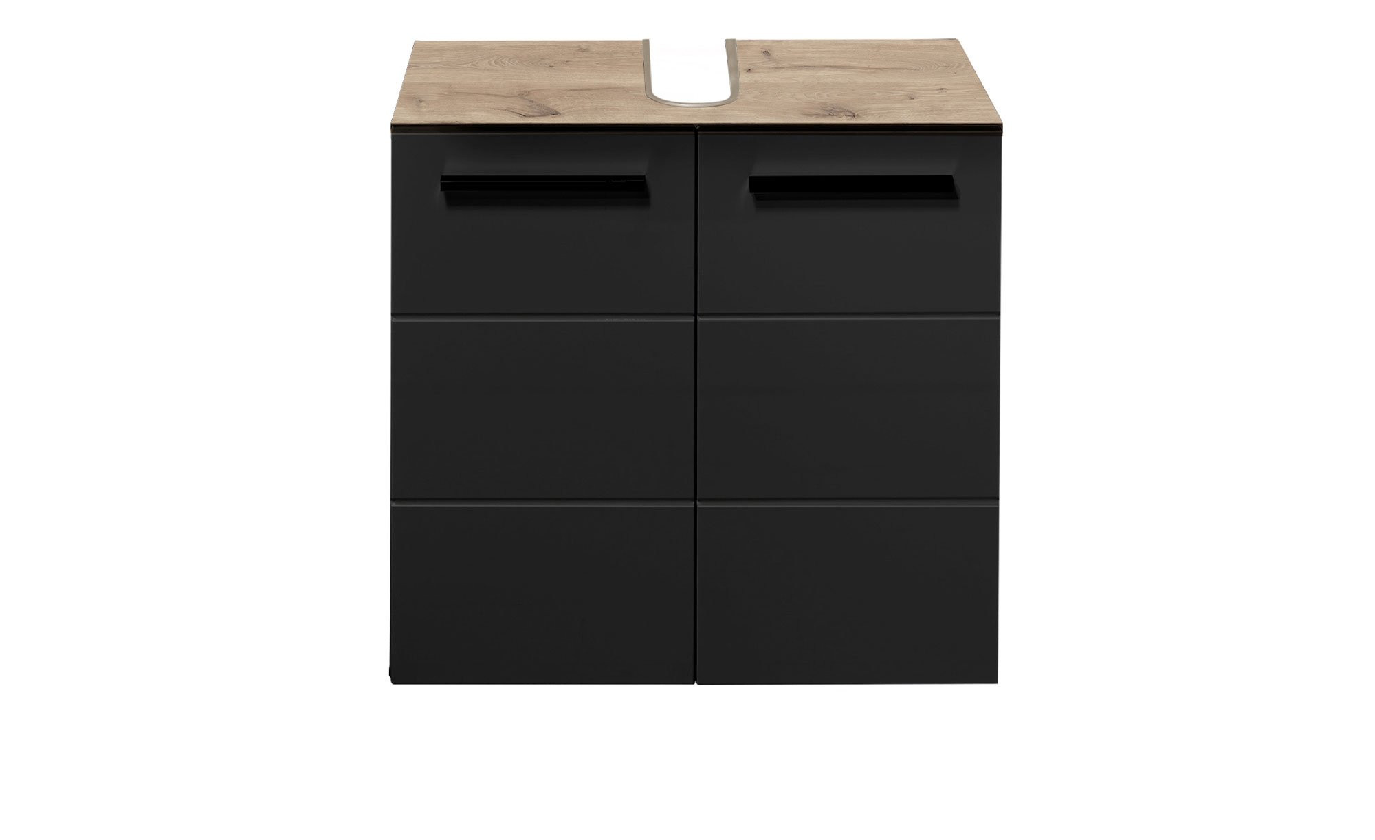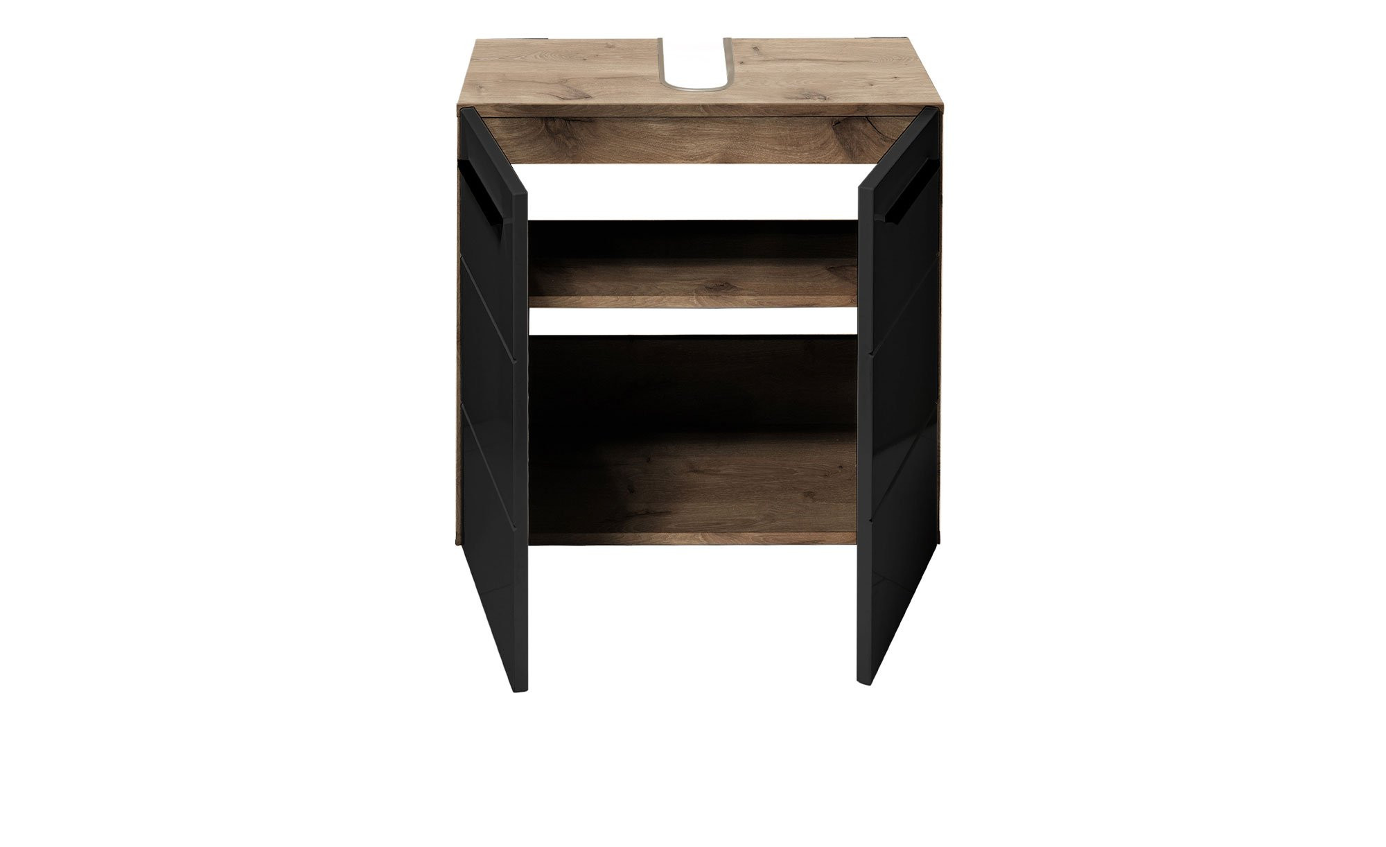 Das Möbelstück misst ca. 60 x 62 x 31 cm und verfügt über einen ca. 10 x 24 cm großen Siphonausschnitt. Es erwarten Sie außerdem zwei Türen und im Innern ein Einlegeboden zum Verstauen unterschiedlicher Bad-Utensilien.