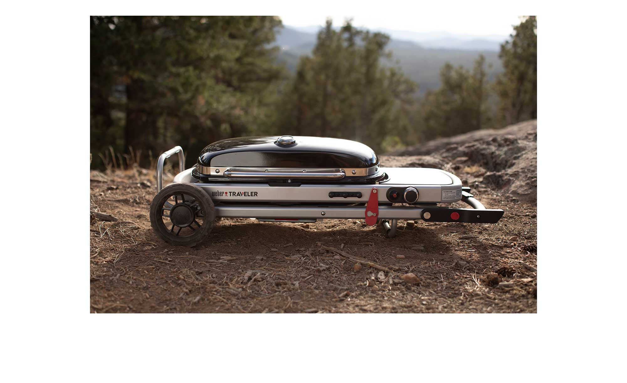 Sie möchten auch unterwegs nicht auf einen Qualitätsgrill verzichten? Dann ist der Gasgrill Weber Traveler genau nach Ihrem Geschmack. Der Grill mit der großen Grillfläche ist fest verbunden mit einem robusten Fahrgestell und lässt sich mit wenigen Handgriffen auf ein kompaktes Format zusammenklappen. In zusammengeklappten Zustand können Sie den Grill über zwei Allwetter-Räder mühelos transportieren. Somit ist er ideal für das Grillvergnügen im Park oder beim nächsten Picknick geeignet.