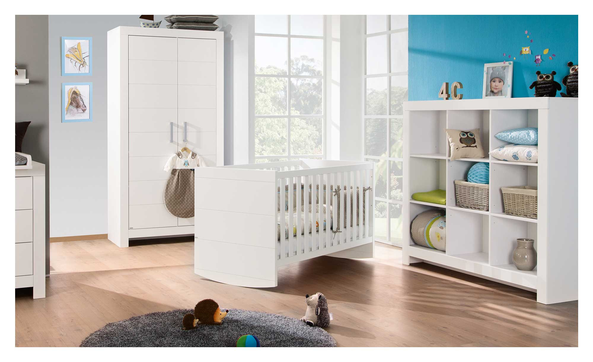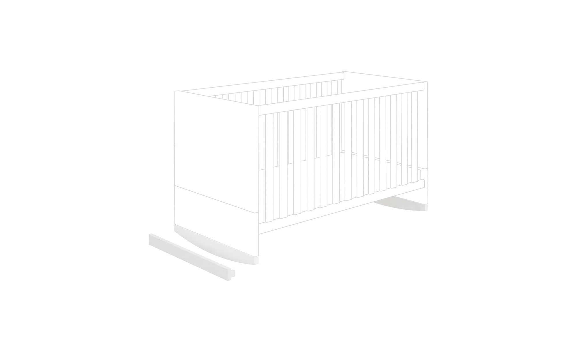 Das Set beinhaltet zwei Wiegeelemente und einen Wiegestopp. Wie auch das Bett aus der gleichnamigen Serie, sind die Bestandteile im Dekor Kreideweiß gestaltet. Bei der Verwendung der ca. 76 x 8 x 3 cm großen Teile entsteht eine Gesamthöhe von ca. 88 cm.