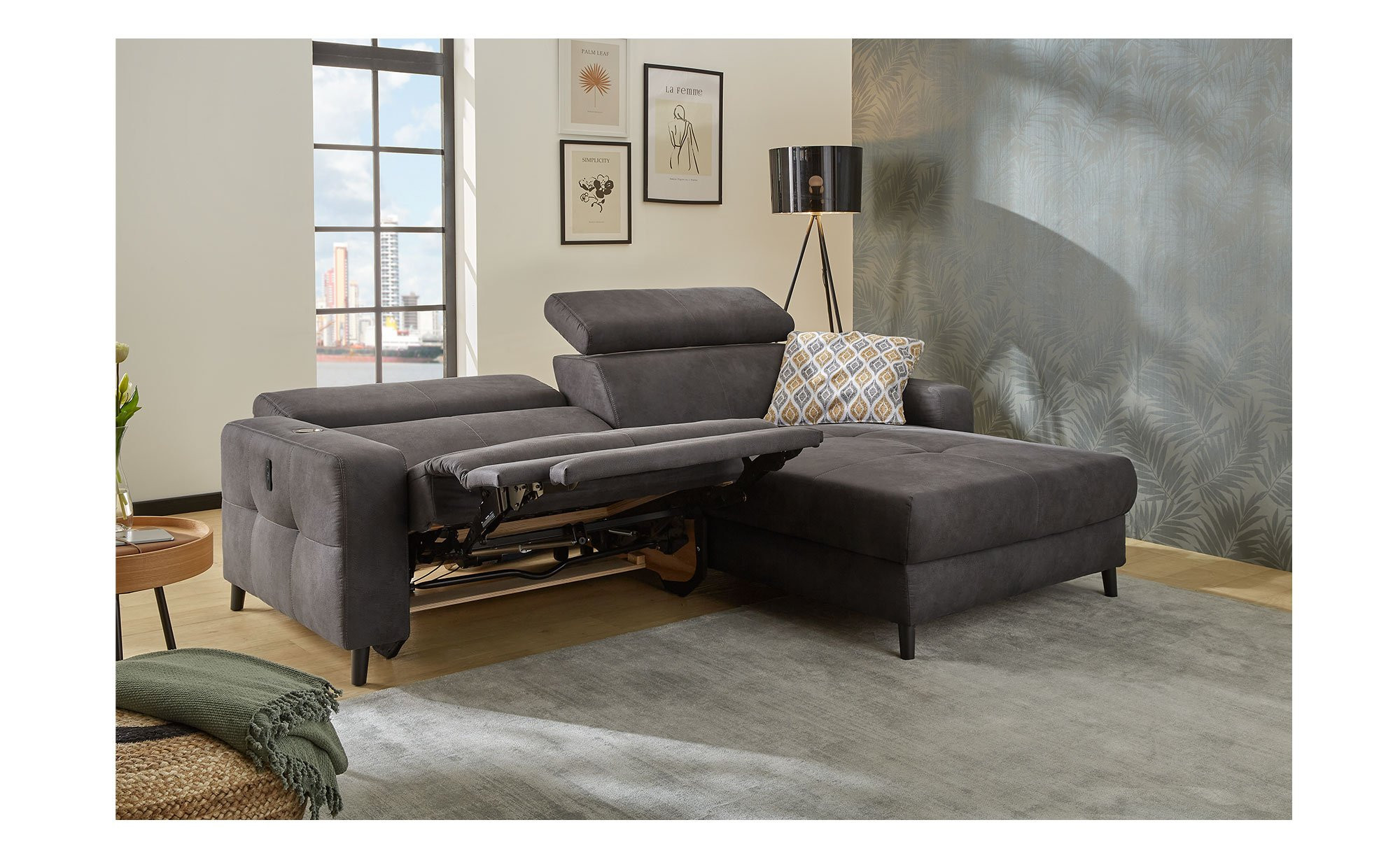 Die Wohnlandschaft Dana ist mit USB-A und USB-C Ladeports ausgestattet, sodass Smartphones und Tablets bequem geladen werden können. Optional ist zudem induktives Laden möglich, um Ihr Zuhause noch smarter und komfortabler zu gestalten. So vereint die Dana Design, Funktionalität und modernen Lifestyle in einem Möbelstück.