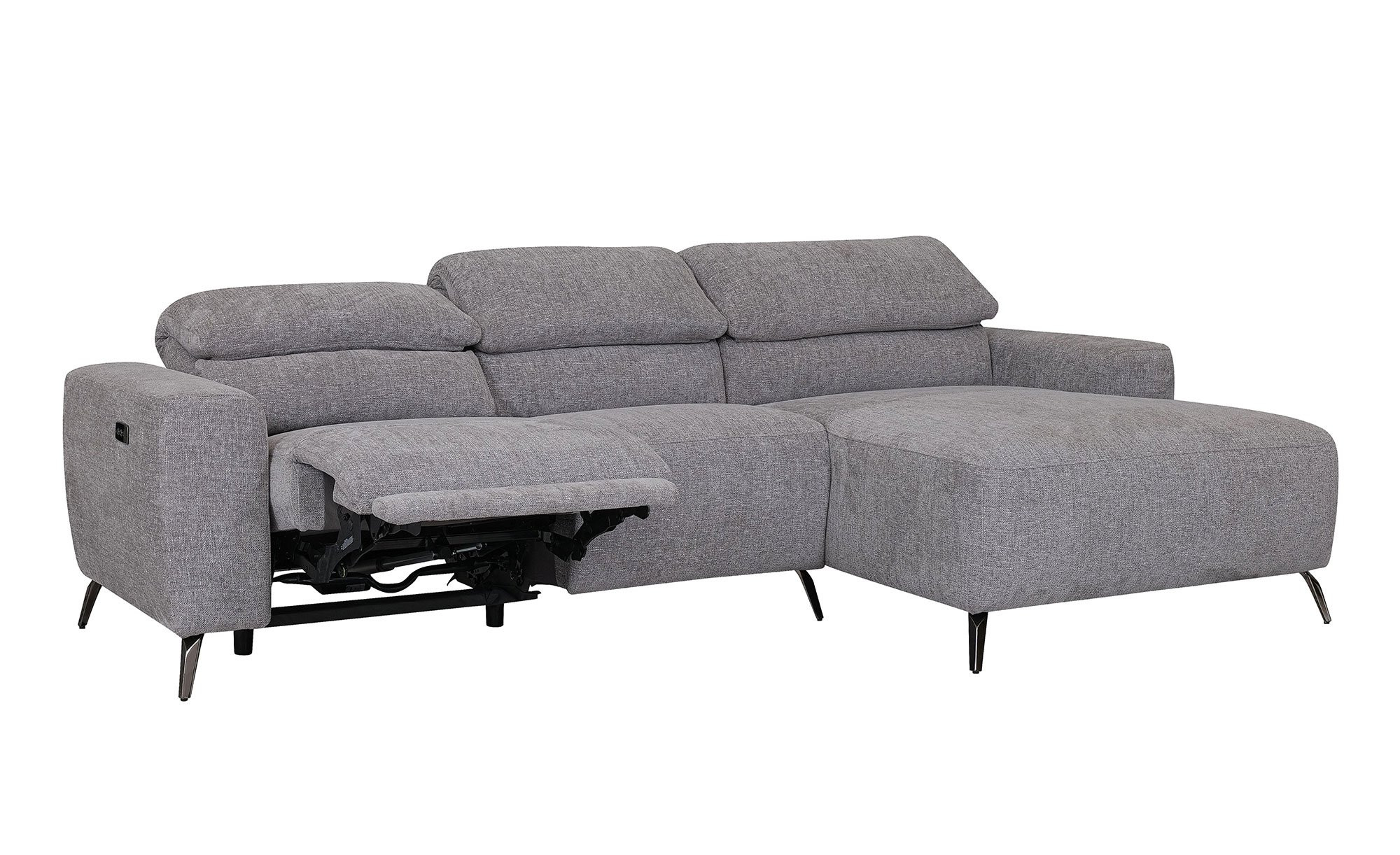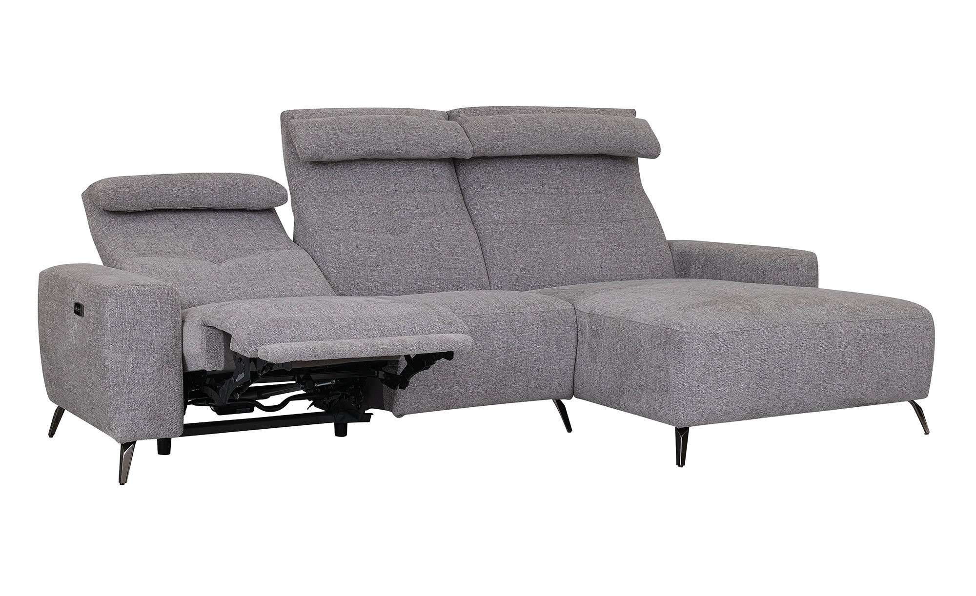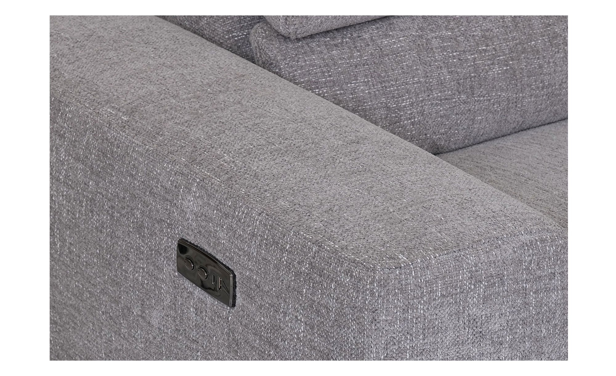 Neben verstellbaren Kopfteilen gibt es auch drei manuell klappbare Rückenlehnen. Zudem ist eines der Sitzelemente mit einer elektrischen Relaxfunktion ausgestattet. Damit entsteht eine optionale Tiefe von ca. 160 cm. Besonders praktisch ist darüber hinaus eine Steuertaste mit USB.