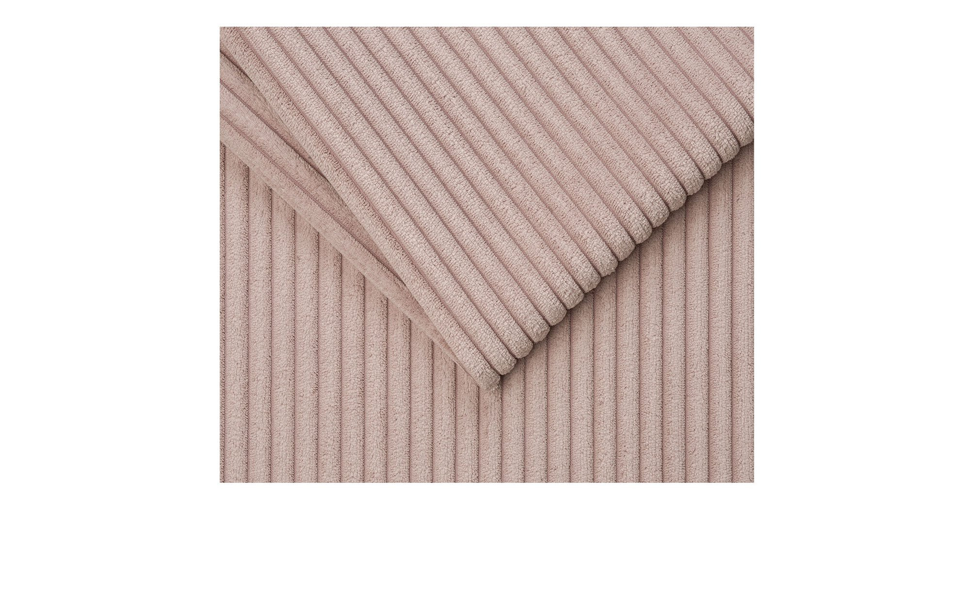 Freuen Sie sich auf einen strapazierfähigen Cord-Bezug in flamingo, der das ca. 239 x 90 x 158 cm große Möbelstück inklusive Rücken umspannt. Seine Füße bestehen aus schwarzem Kunststoff und sind ca. 7 cm hoch.